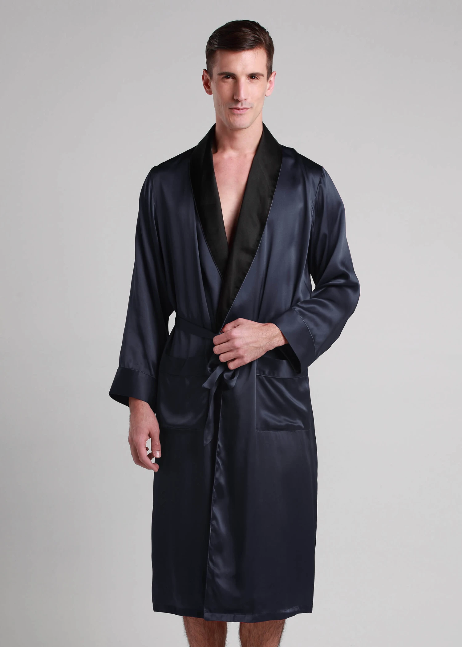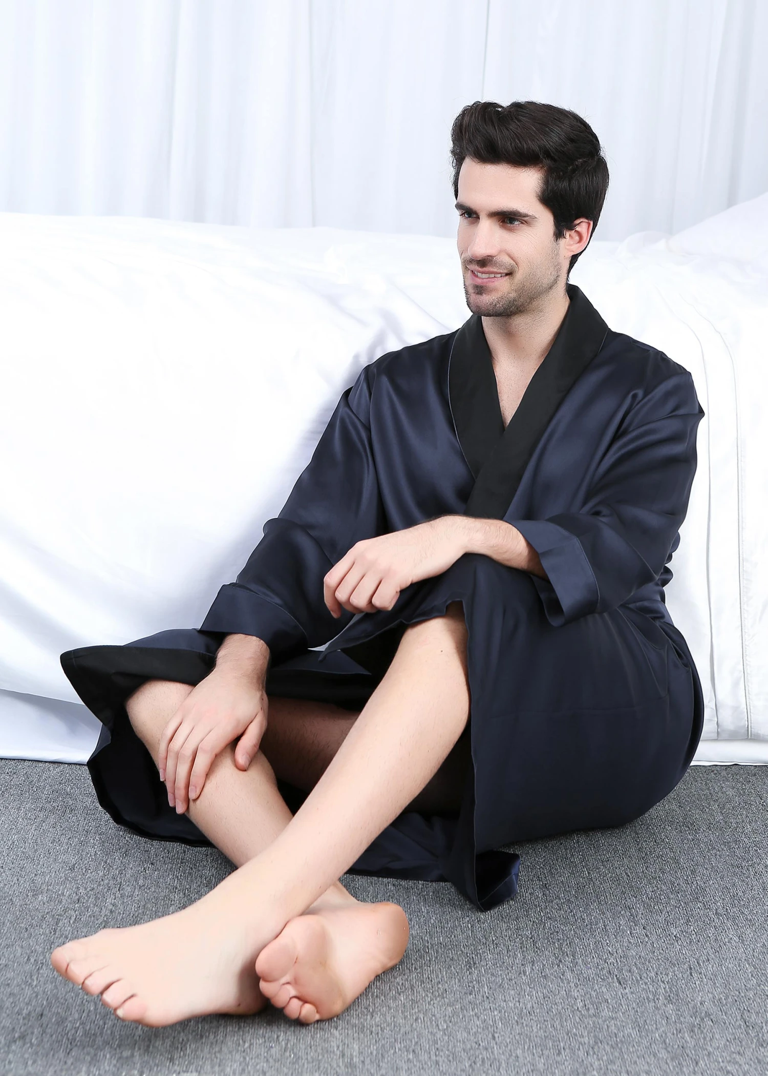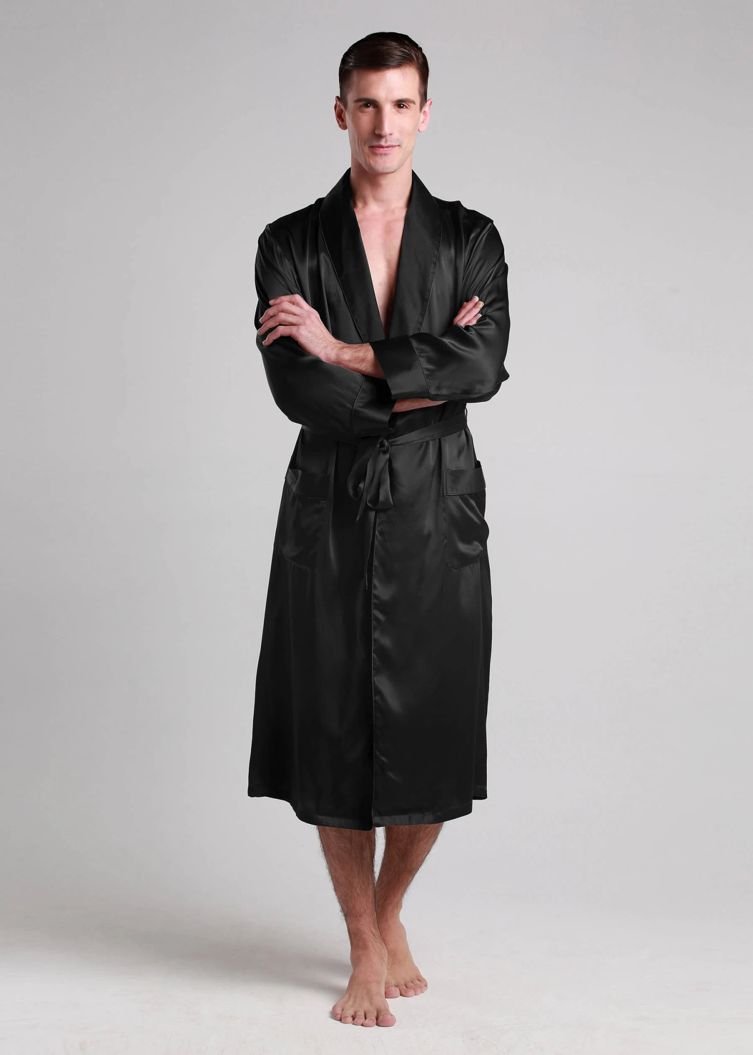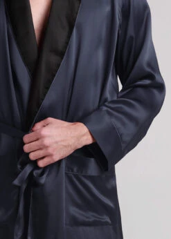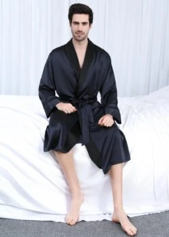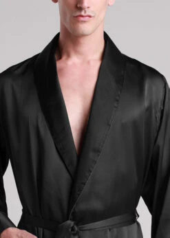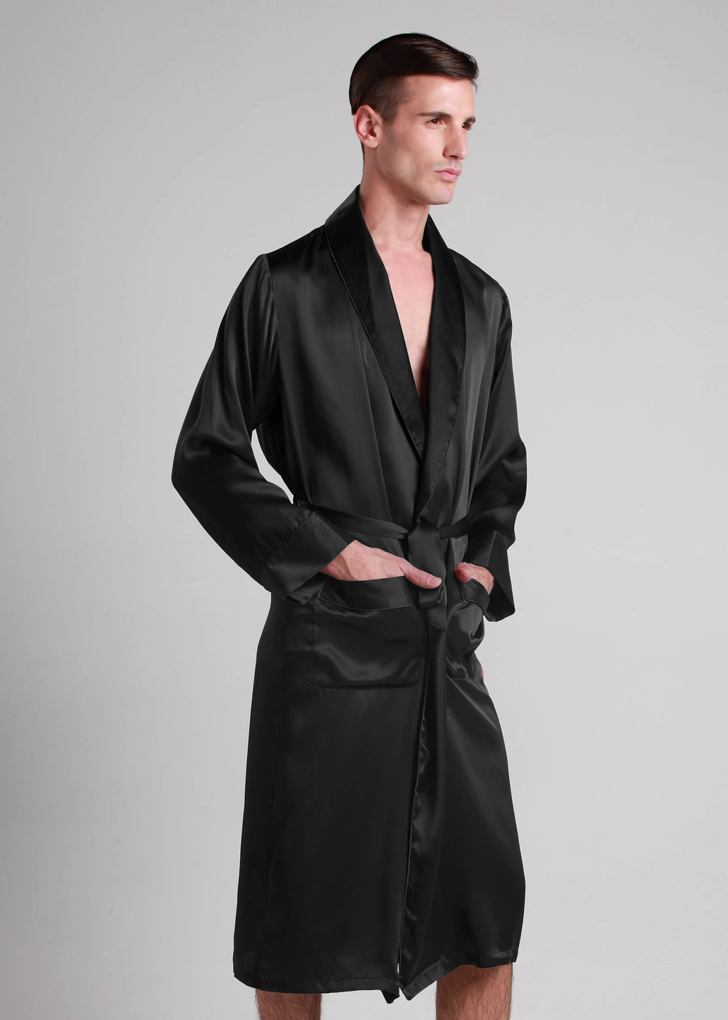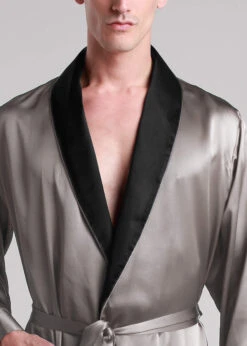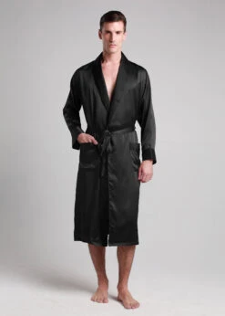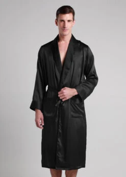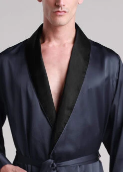 Wrap yourself in luxury in the Men’s Silk Robe with Black Shawl Collar. This silk robe will caress and care for your skin effortlessly. Think of this as a premium update on your favorite robe. Easy to wear around the house to make you feel smart and put together even in your downtime.