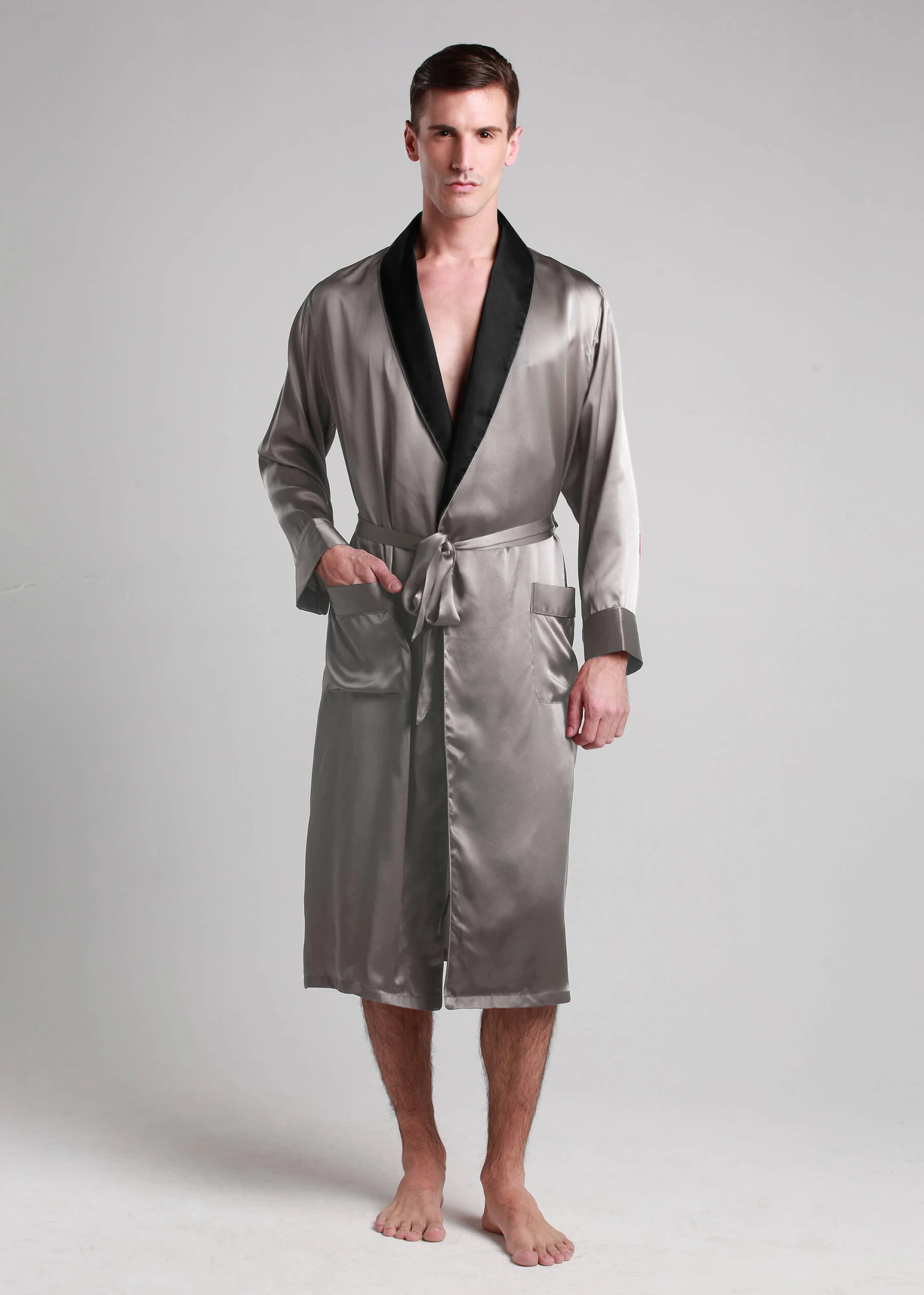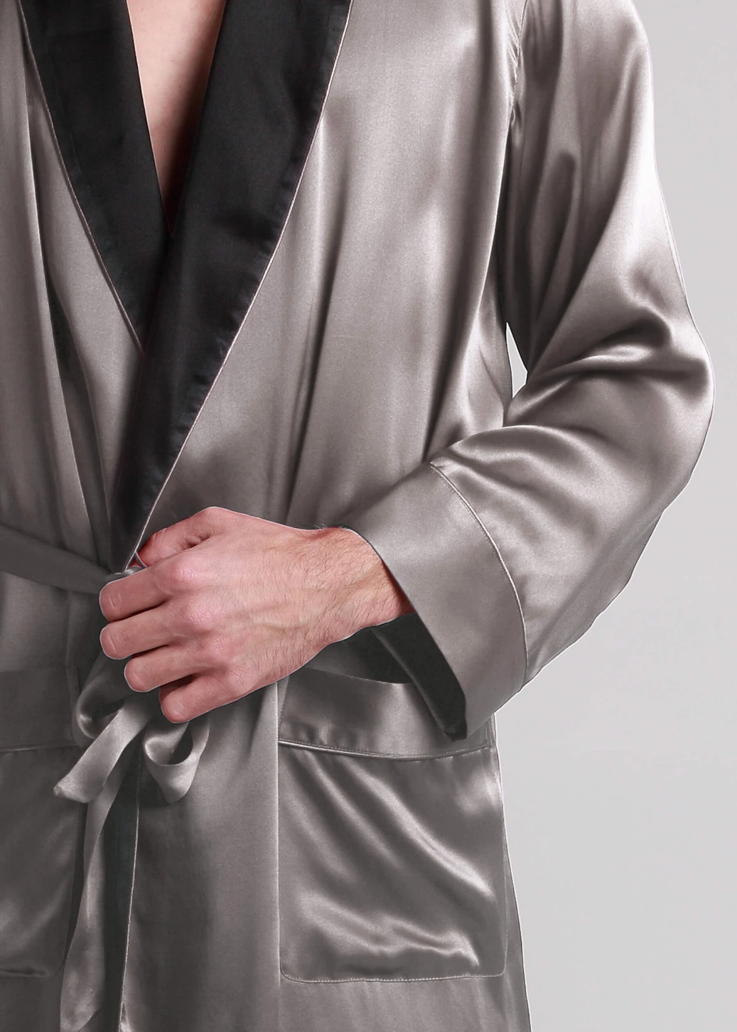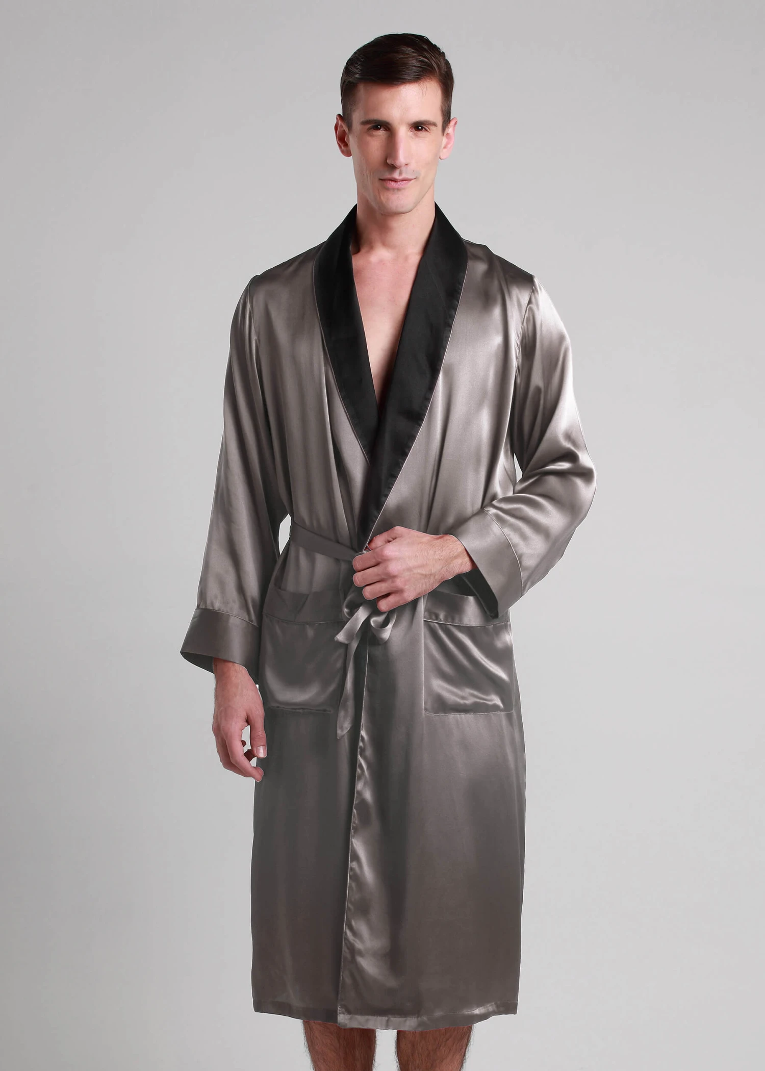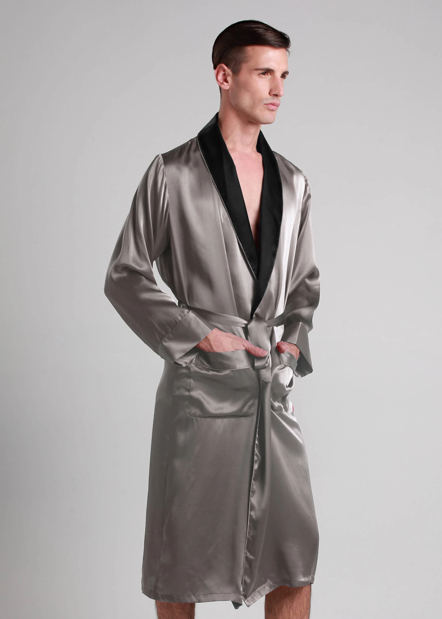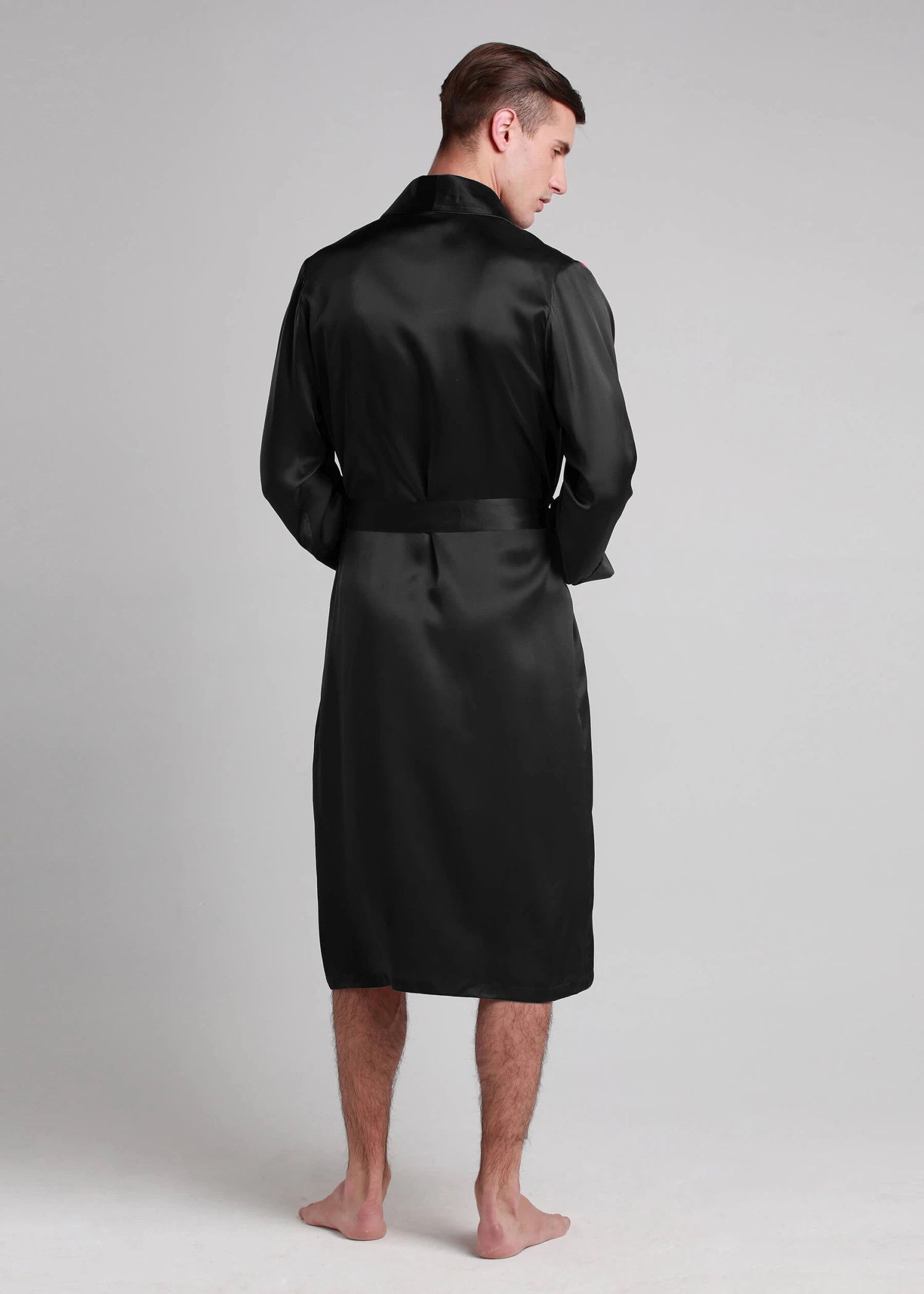 Wrap yourself in luxury in the Men’s Silk Robe with Black Shawl Collar. This silk robe will caress and care for your skin effortlessly. Think of this as a premium update on your favorite robe. Easy to wear around the house to make you feel smart and put together even in your downtime.
