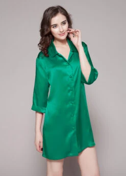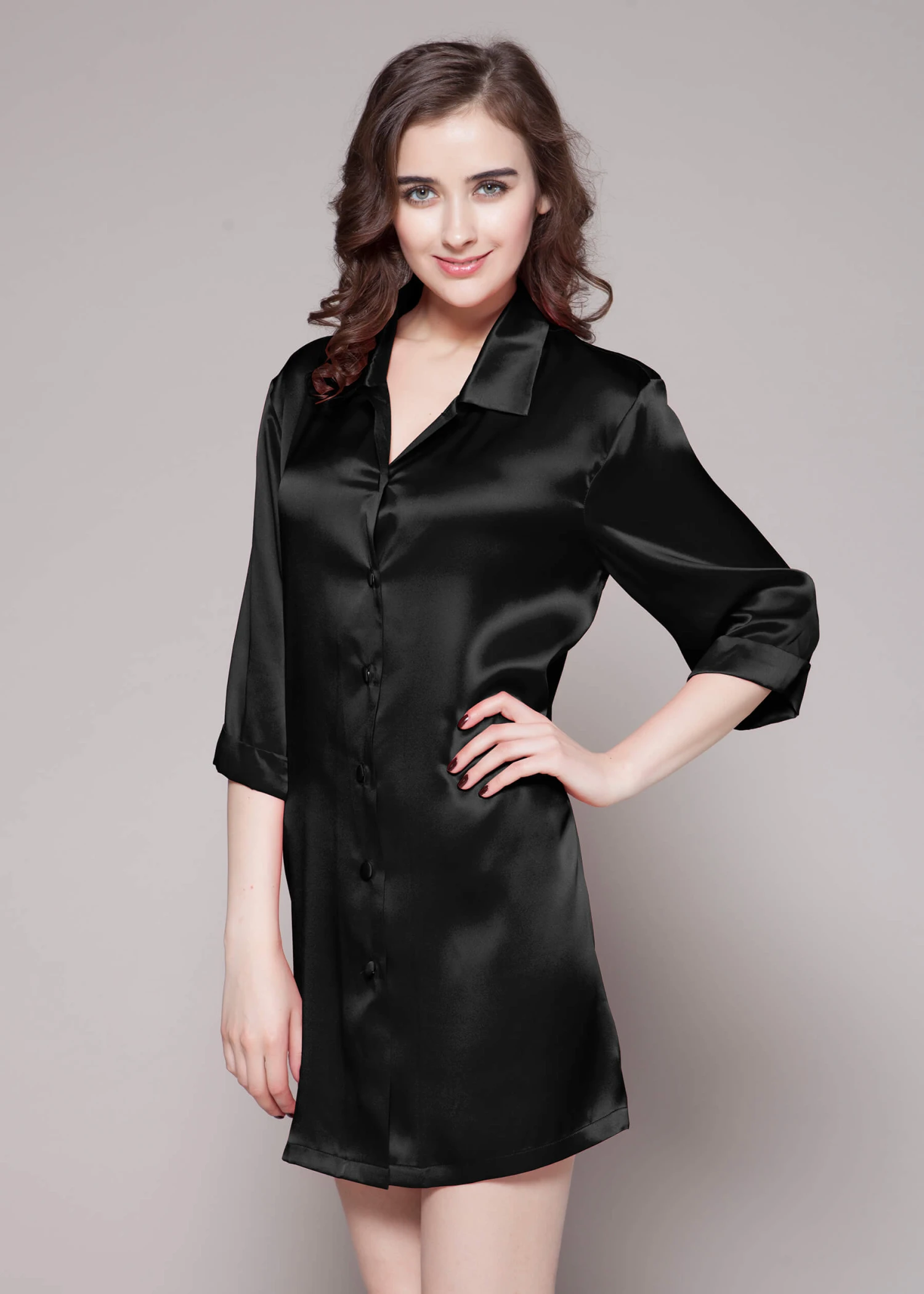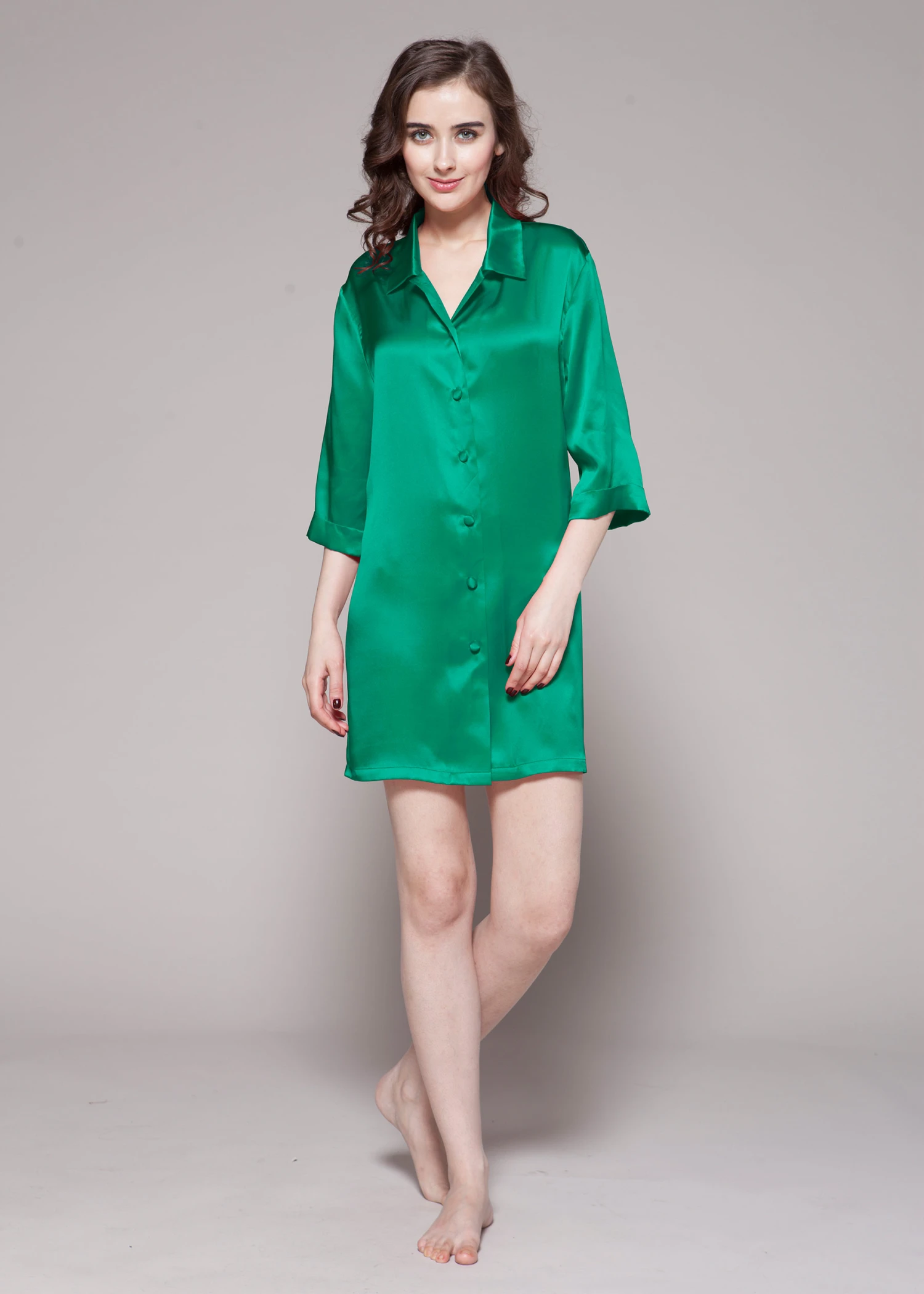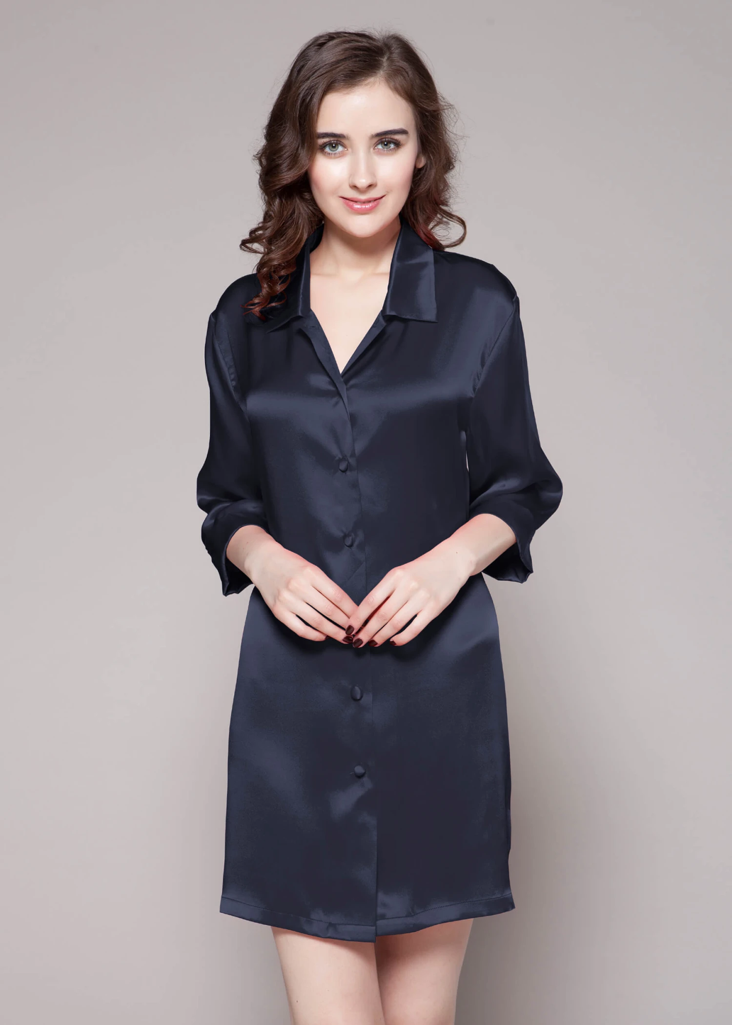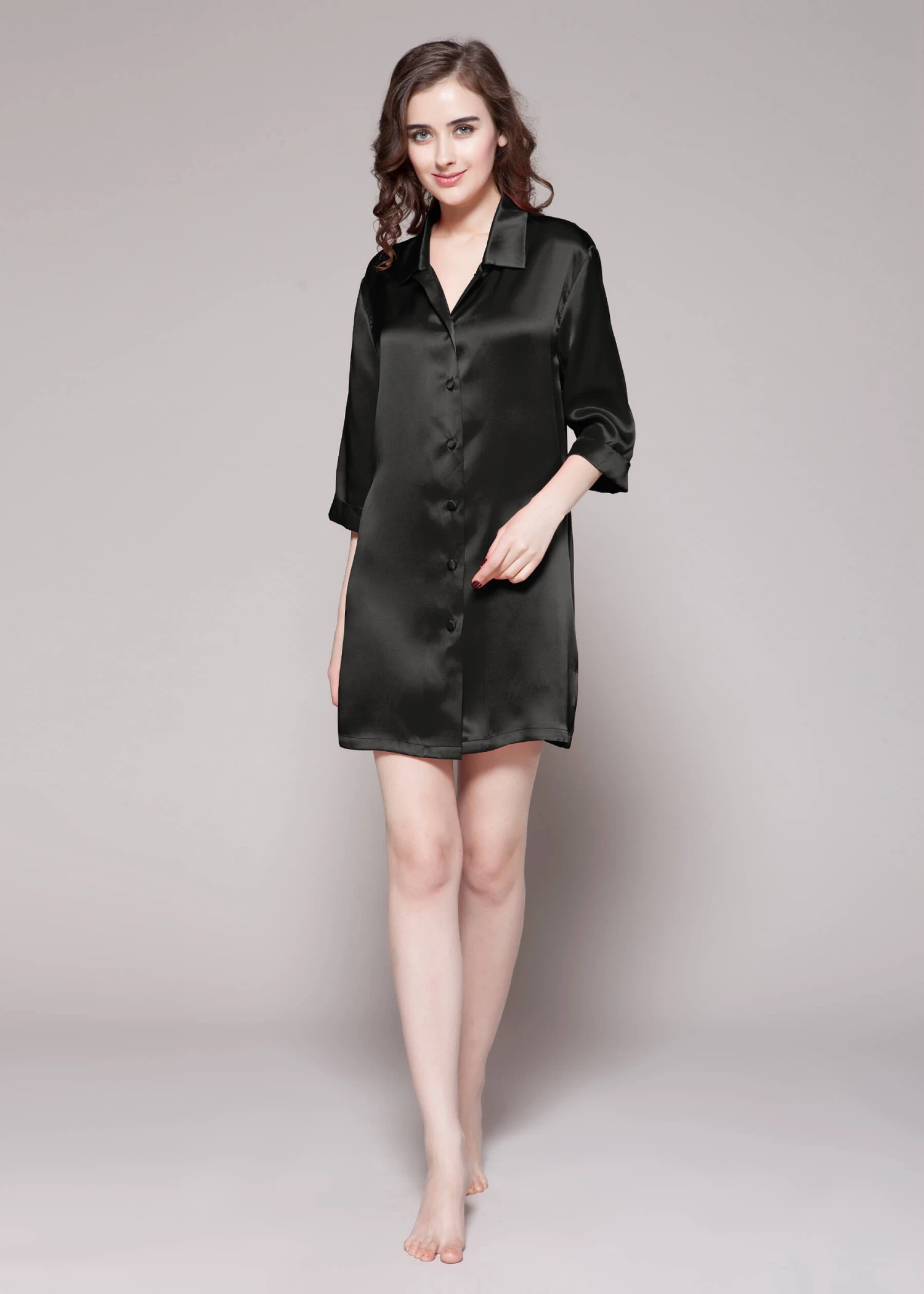 Wear the 3/4 Length Sleeve Classic Silk Nightshirt to bed for a good night’s sleep. An item you never knew you needed until now. This gorgeously soft, smooth silk nightshirt has 3/4 length sleeves and a relaxed fit for the ultimate in comfort. This versatile nightshirt can easily be styled with a belt and jewelry for a night out on the town.