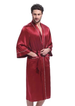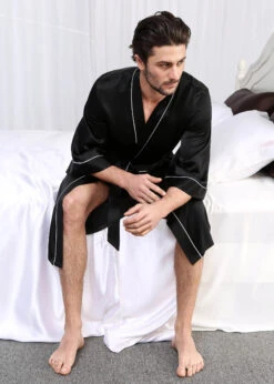 Comfort meets style in this luxurious men’s silk robe. Enjoy luxury sleeping experience.