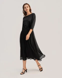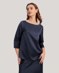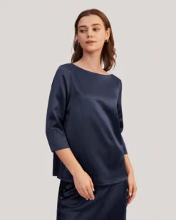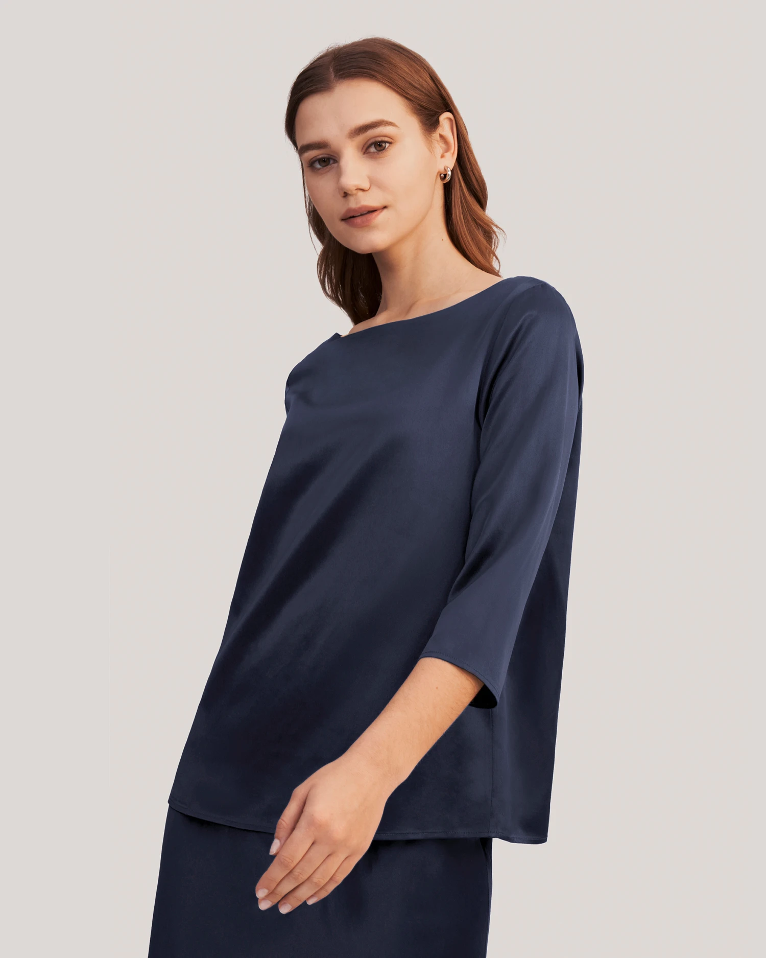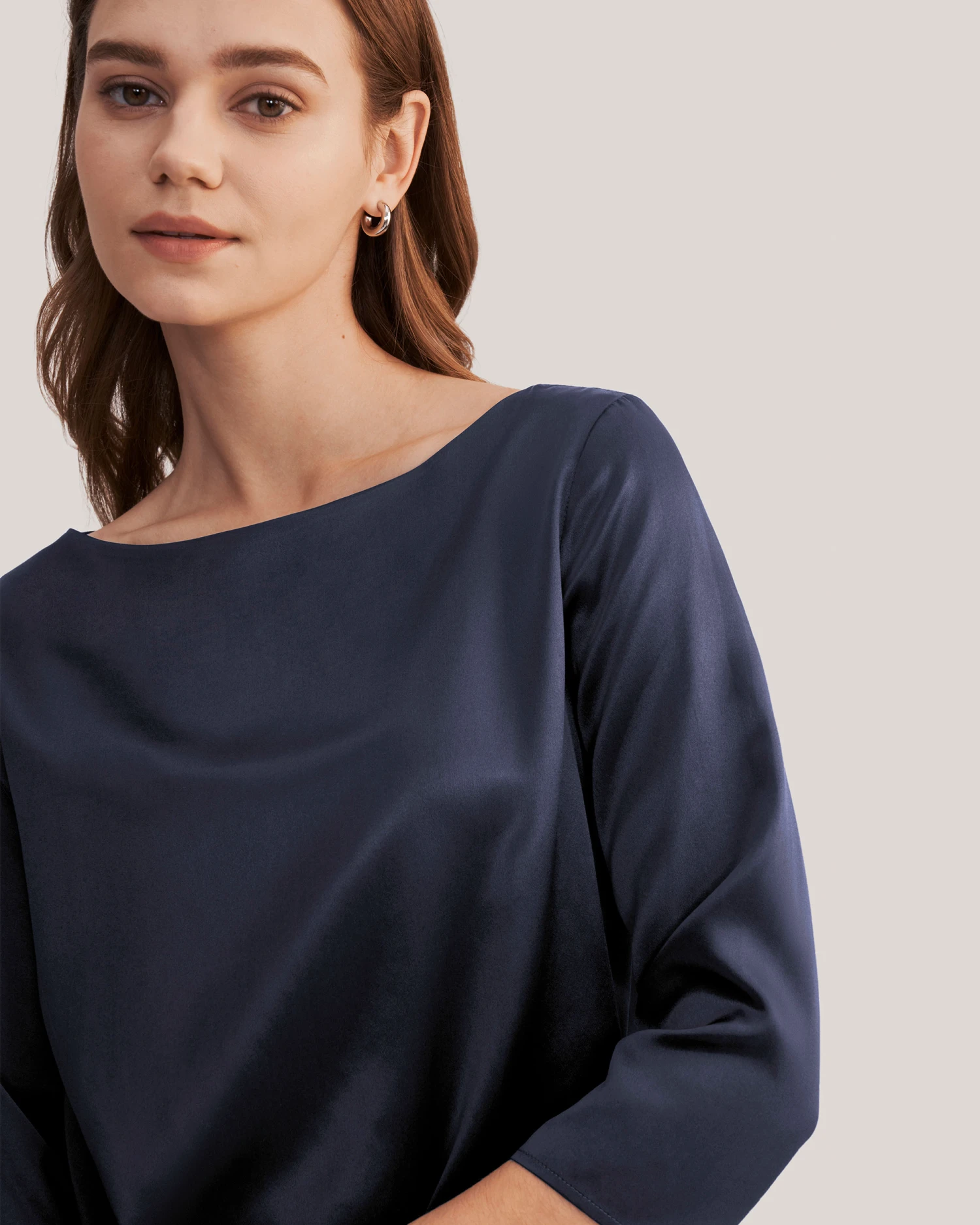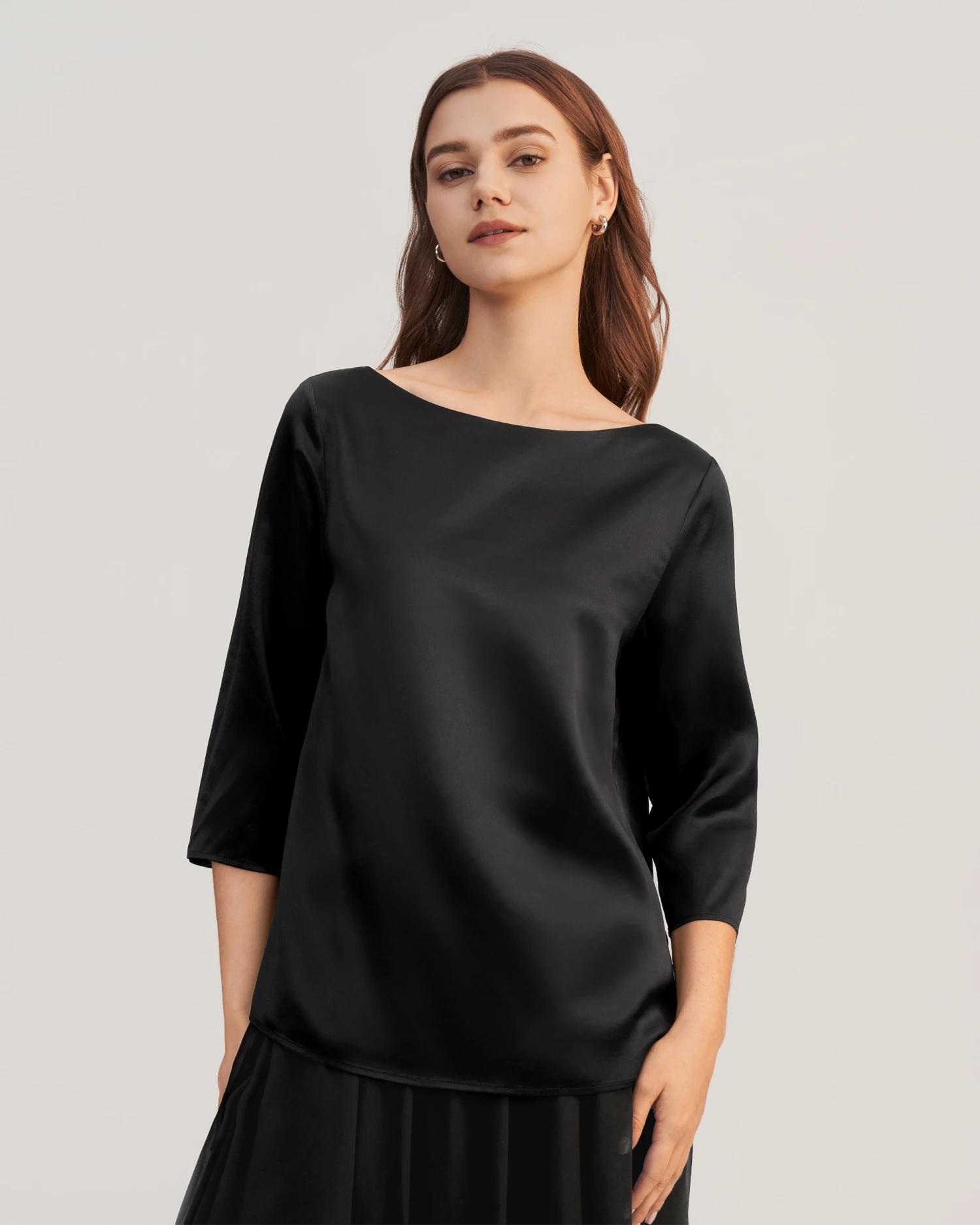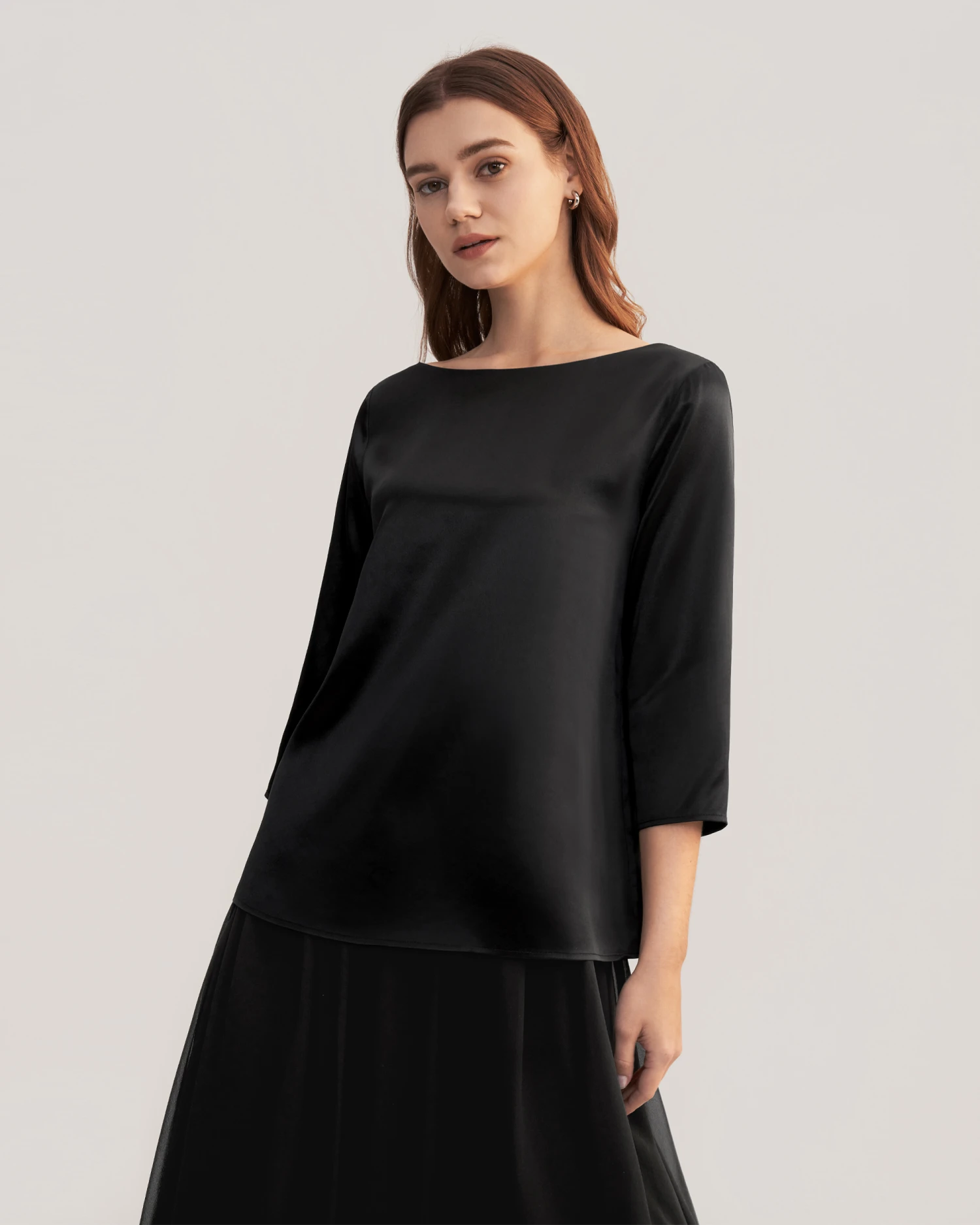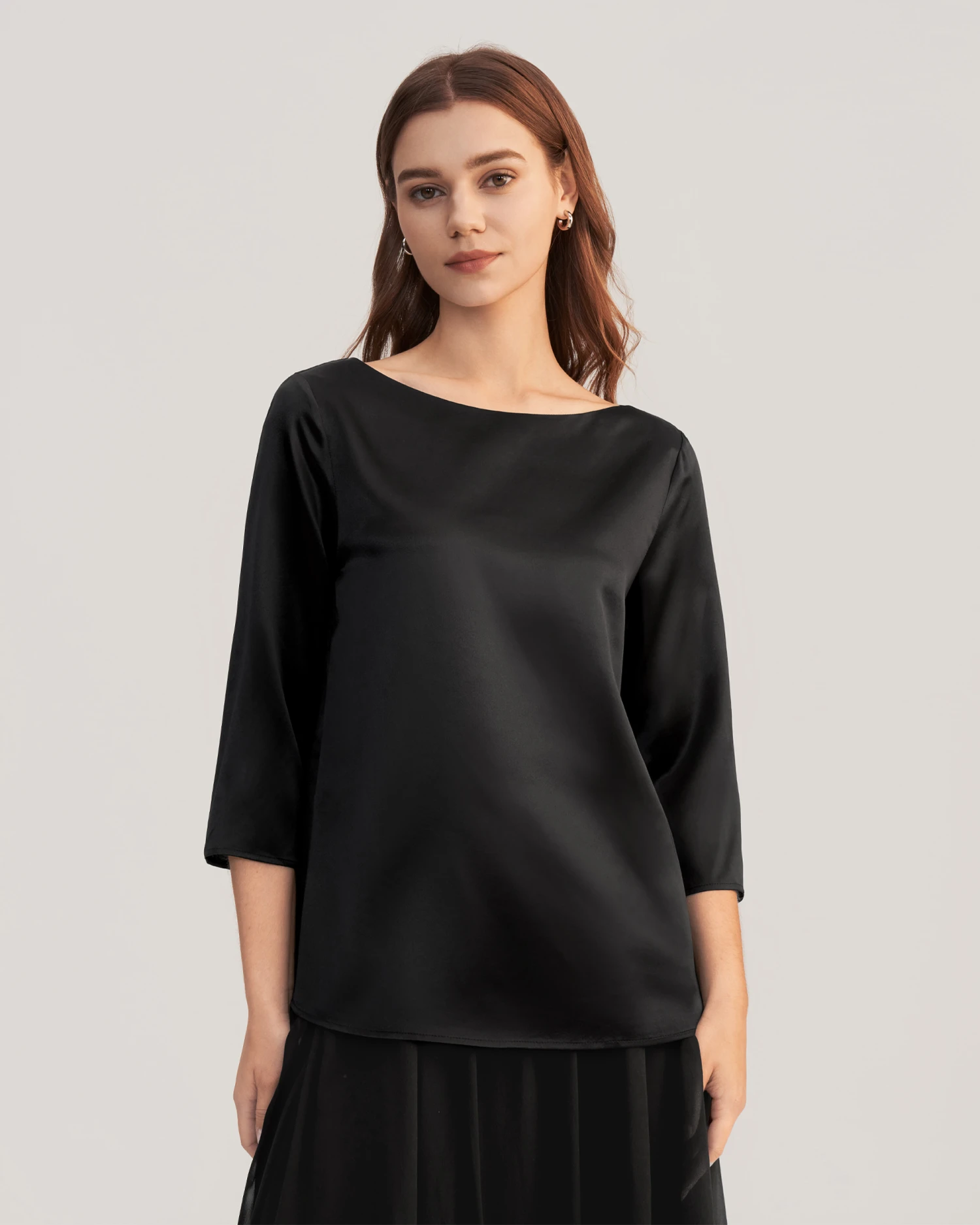 Simple yet elegant, the 3/4 Sleeve Boat Neck Silk Top is made from soft, skin-friendly silk with a hint of stretch to ensure you feel comfortable at all times. When you need to look good quickly with minimal effort, look to this top to solve your problem. The chic boat neck is the epitome of class and will be sure to flatter you.