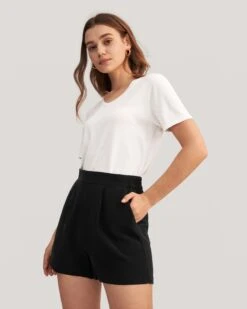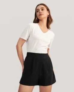 This pair of basic silk shorts are featured with a comfy elastic waist and two roomy side pockets. Made of 100% silk, you can beat the heat while styling a fashionable look when you add them to your warm weather wardrobe. Whether you finish them off with simple sneaks or dainty flats, these silk shorts will absolutely elevate your summer looks.