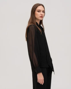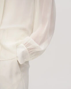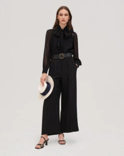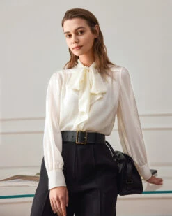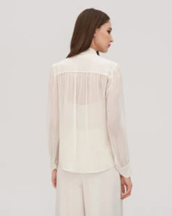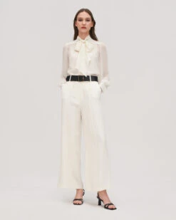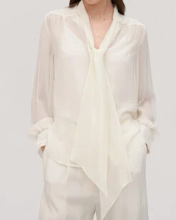 A contemporary rendition of a delectable classic, we reimagined the timeless pussycat bow blouse in a sheer silk georgette. The pinnacle of sultry and chic, the bow is fastened neatly at the neck for added sophistication. Style with a camisole underneath for a business casual look, or wear under a structured blazer and let the feminine bow peek from underneath.
