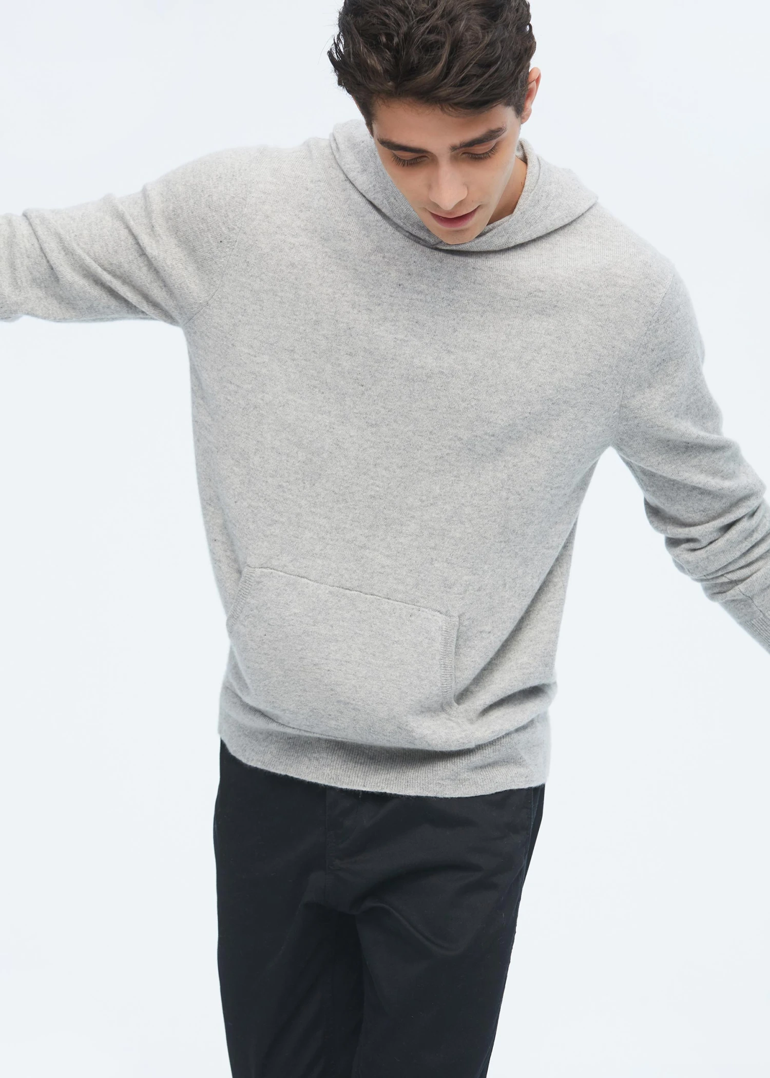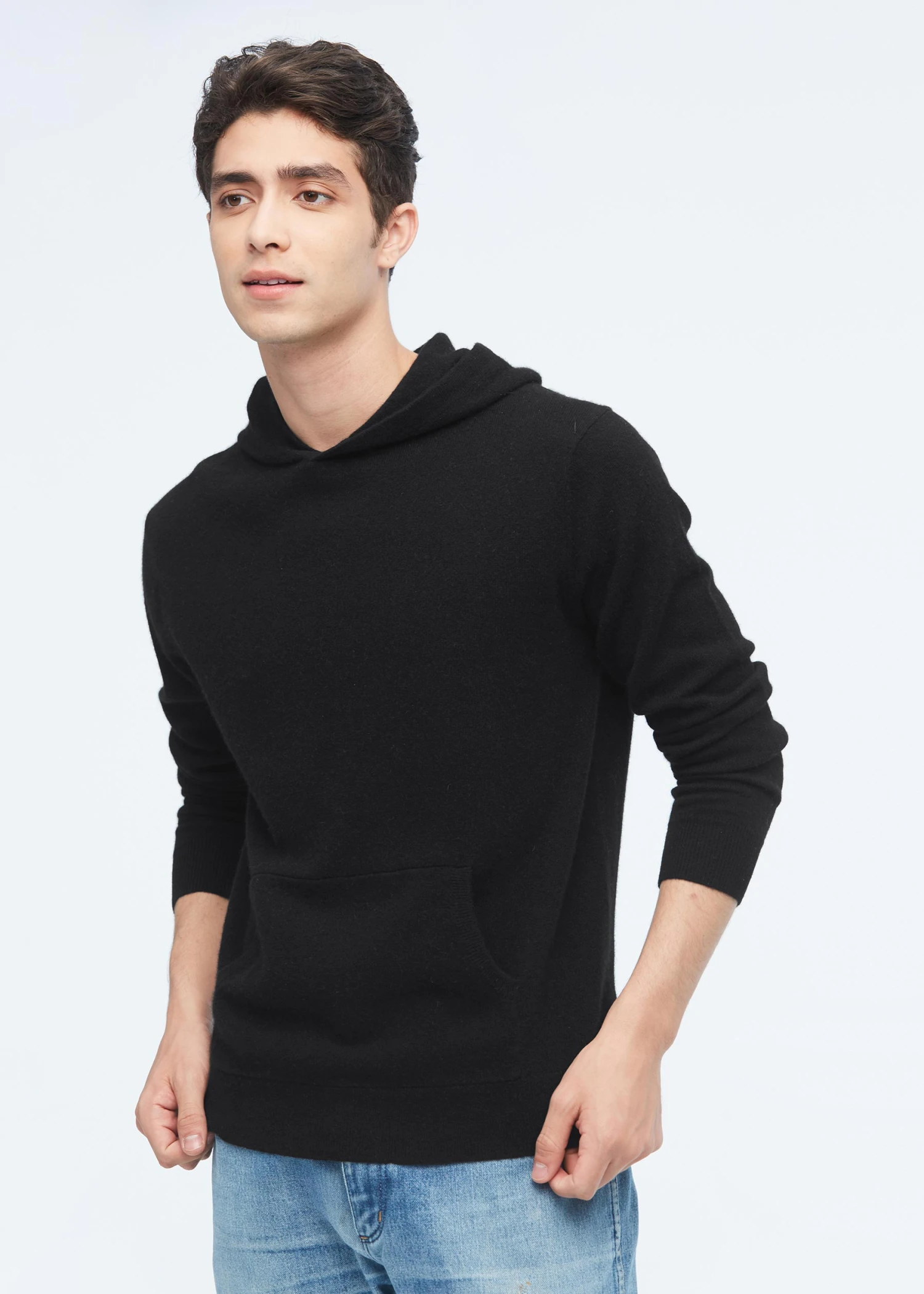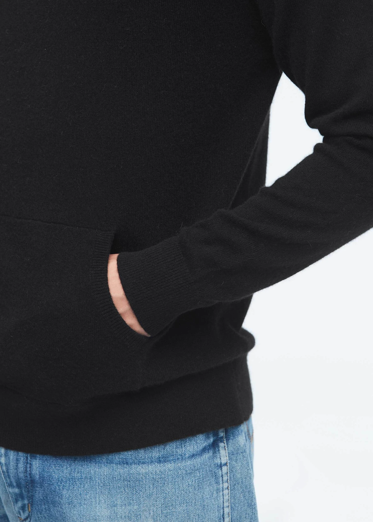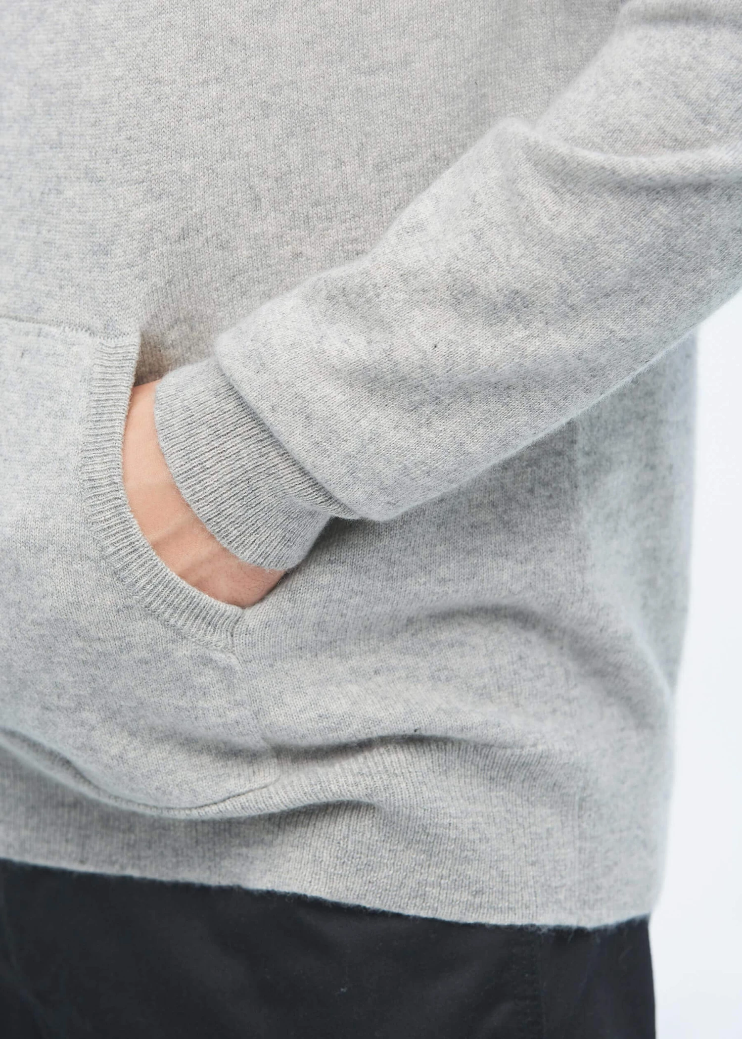 Our men’s hoodie sweatshirt is an essential classic. Made using the finest pure cashmere, it features a no-drawstring design, a cozy kangaroo pocket, and long sleeves to keep you warm. Both practical and elegant, this item is the perfect go-to for your free time.