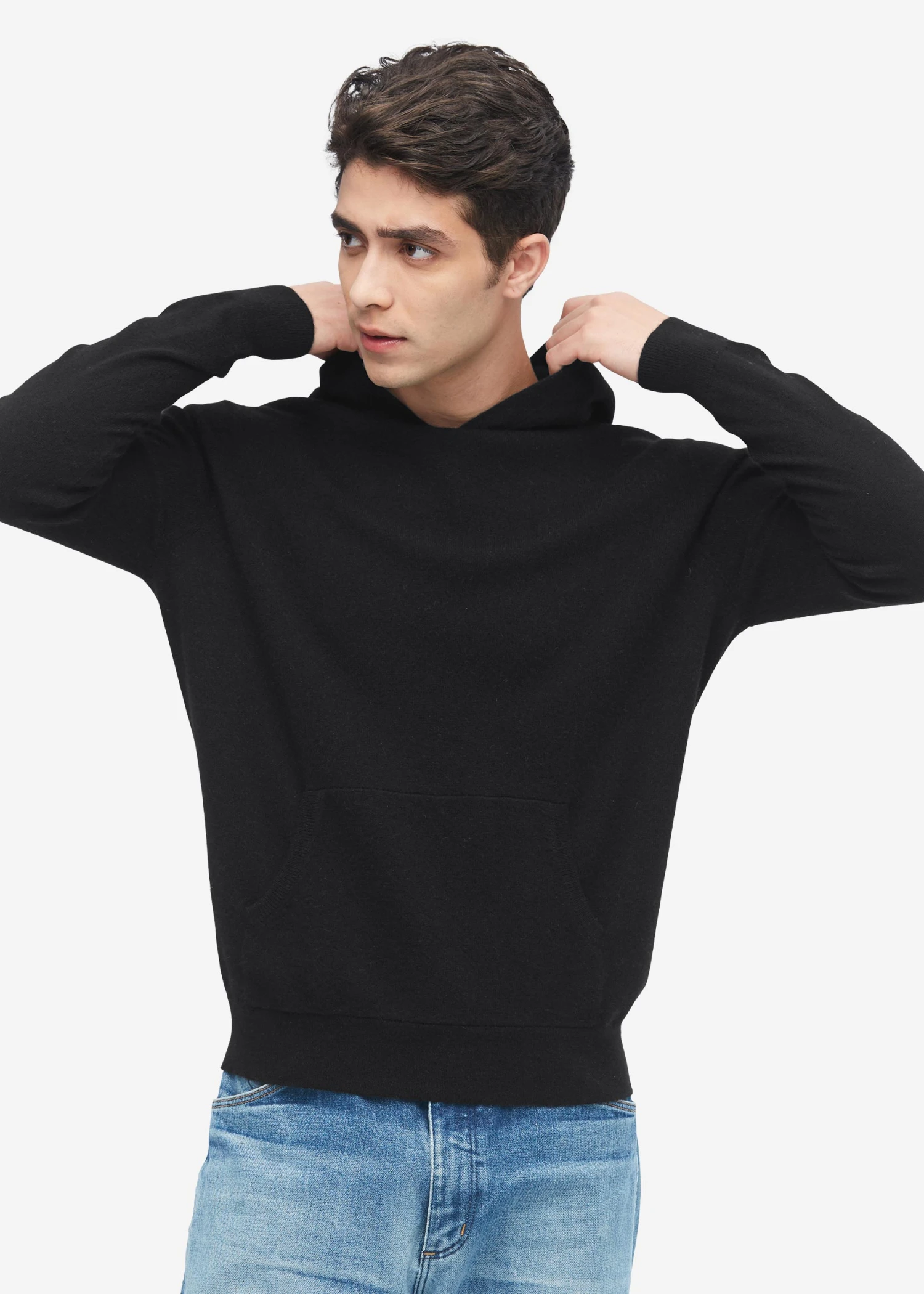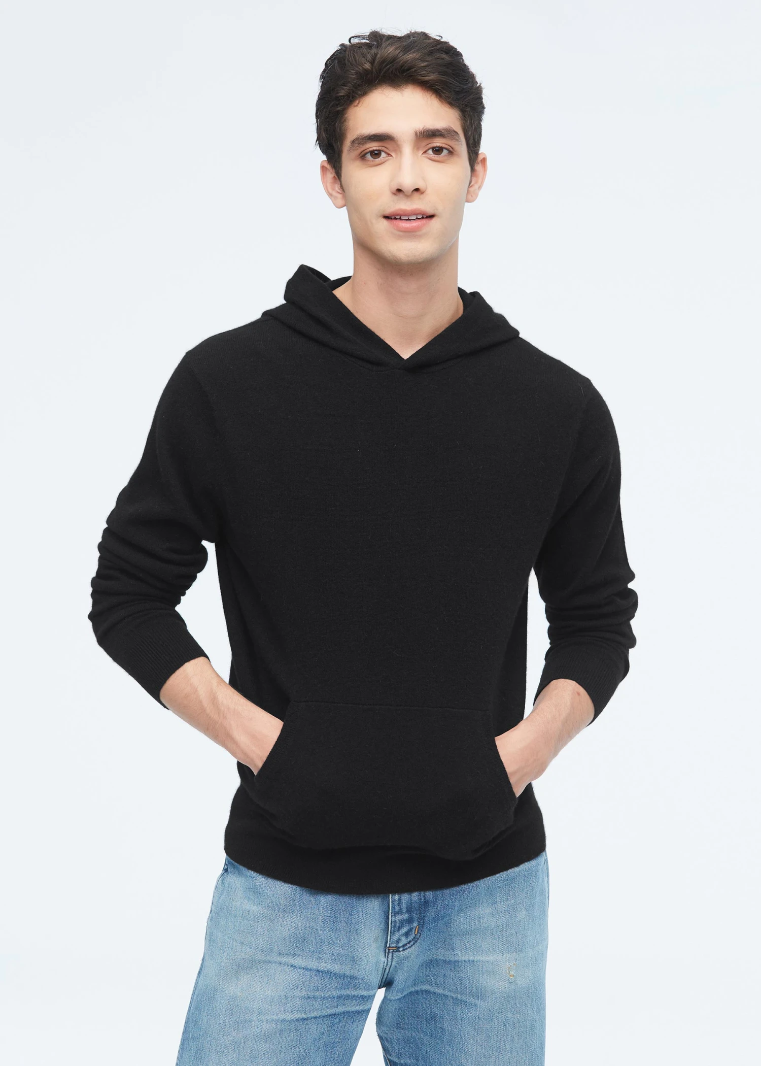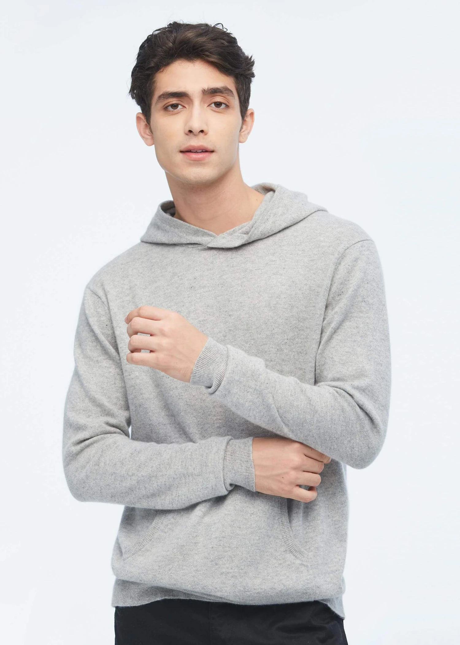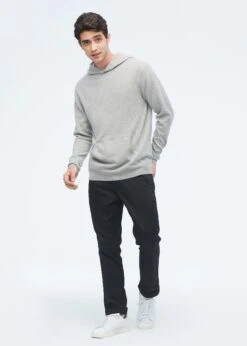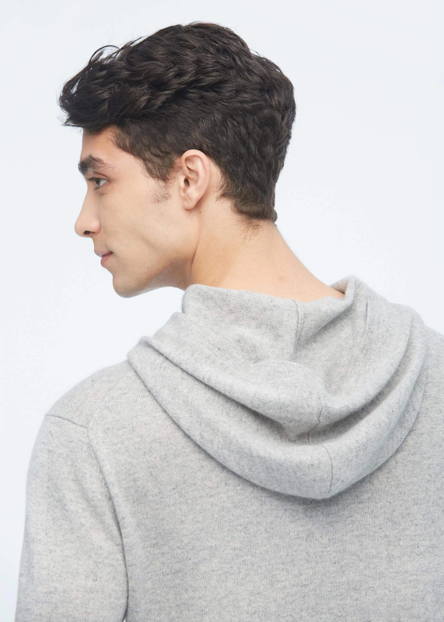 Our men’s hoodie sweatshirt is an essential classic. Made using the finest pure cashmere, it features a no-drawstring design, a cozy kangaroo pocket, and long sleeves to keep you warm. Both practical and elegant, this item is the perfect go-to for your free time.