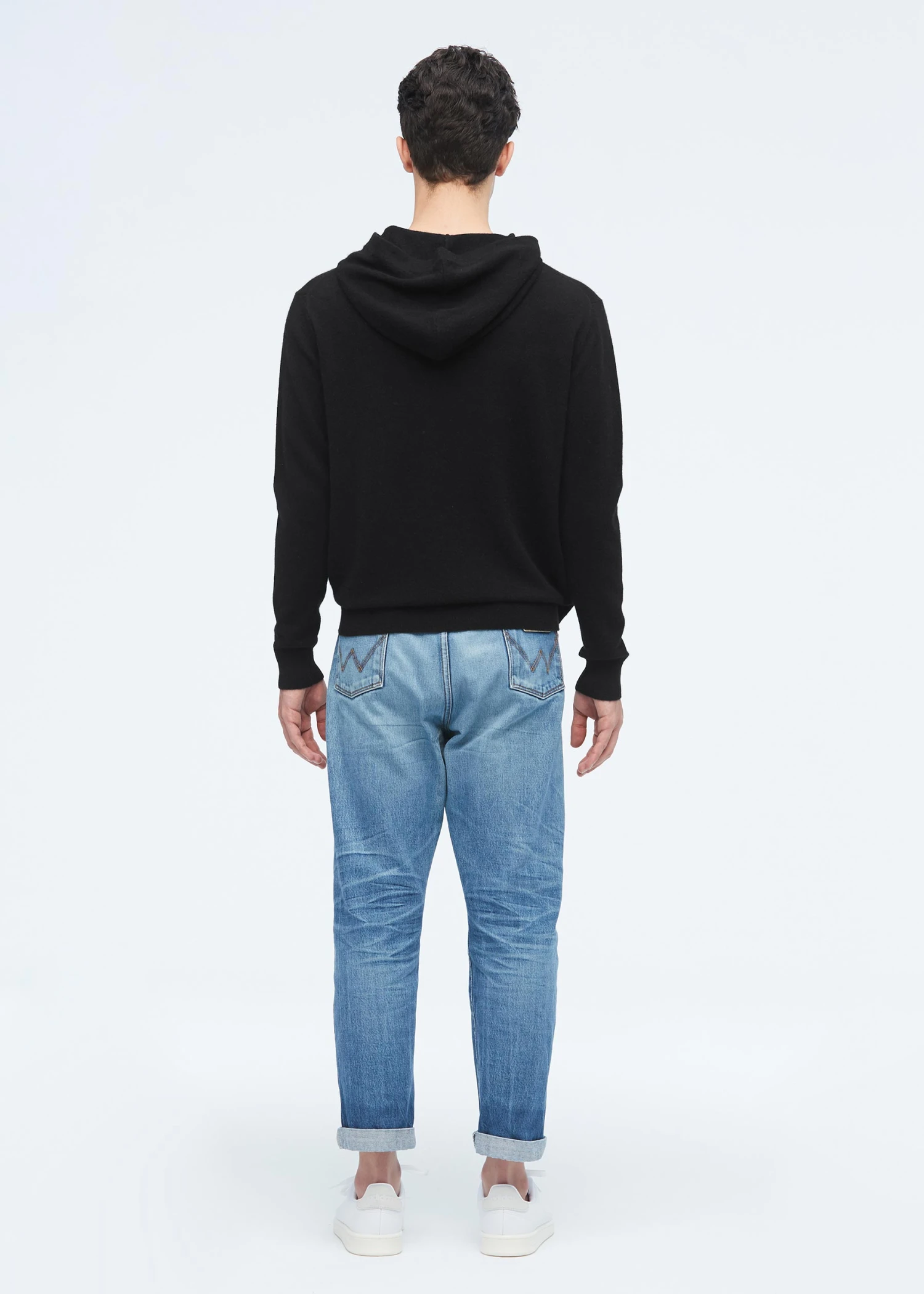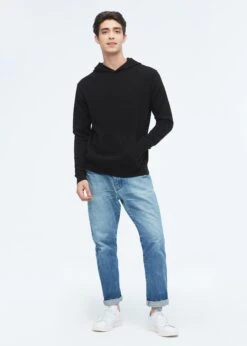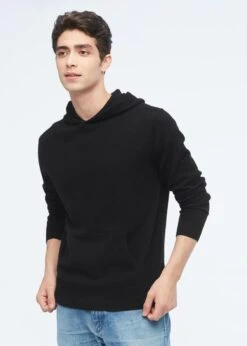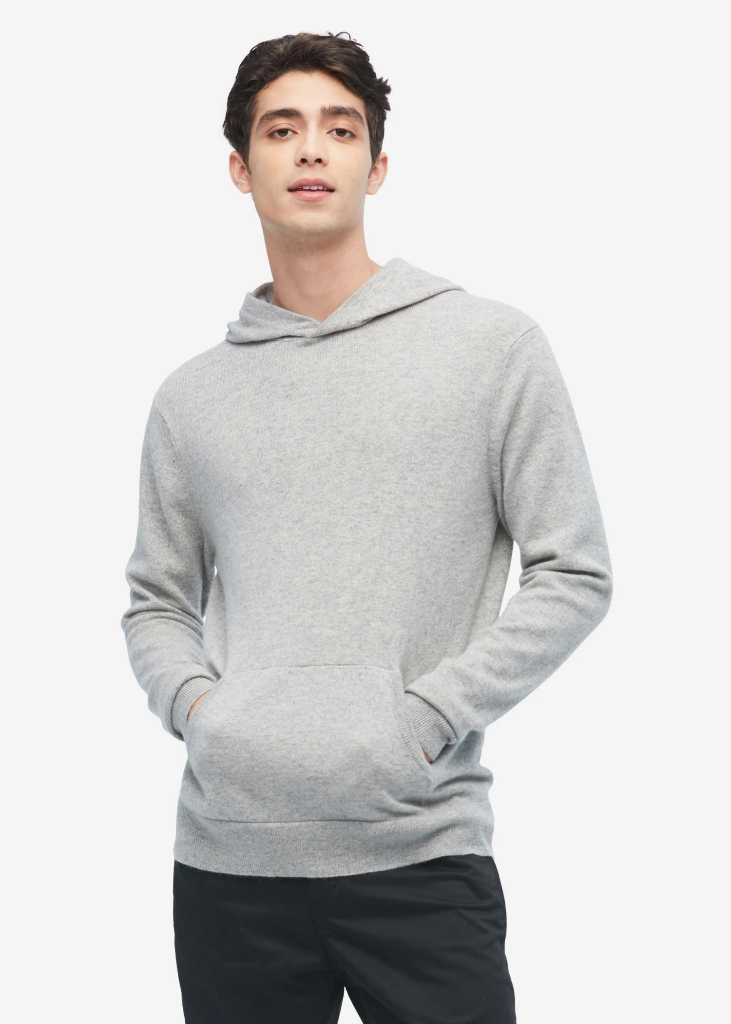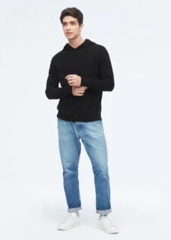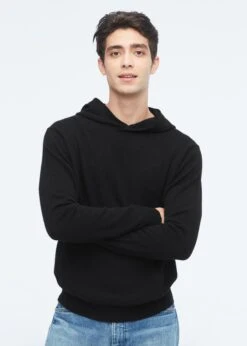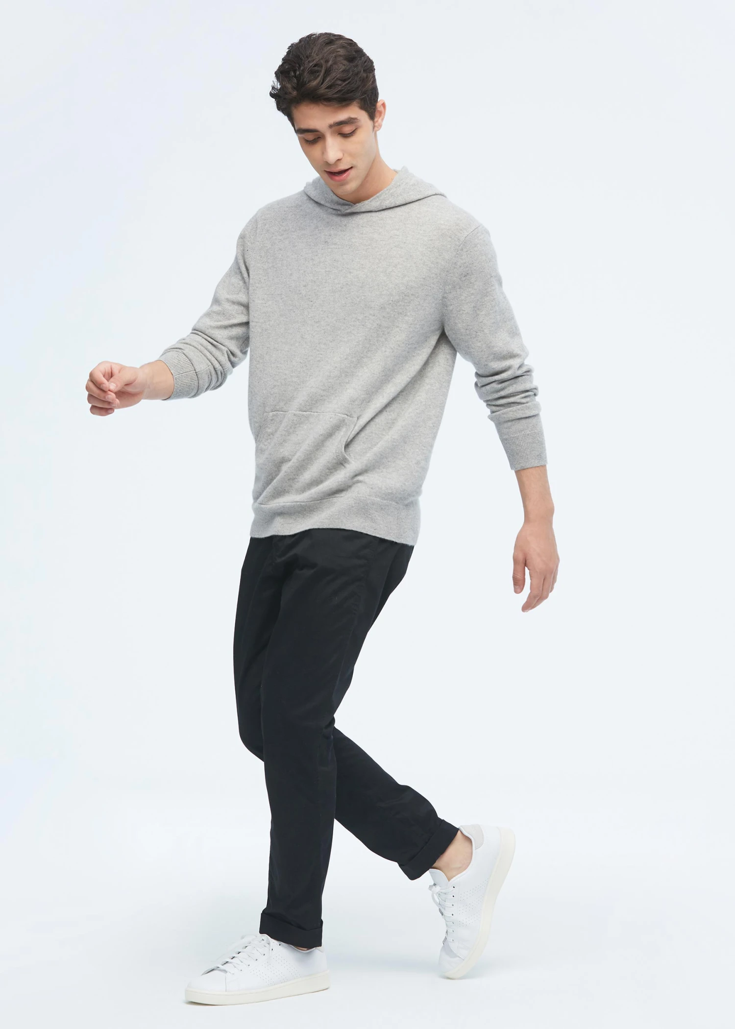 Our men’s hoodie sweatshirt is an essential classic. Made using the finest pure cashmere, it features a no-drawstring design, a cozy kangaroo pocket, and long sleeves to keep you warm. Both practical and elegant, this item is the perfect go-to for your free time.
