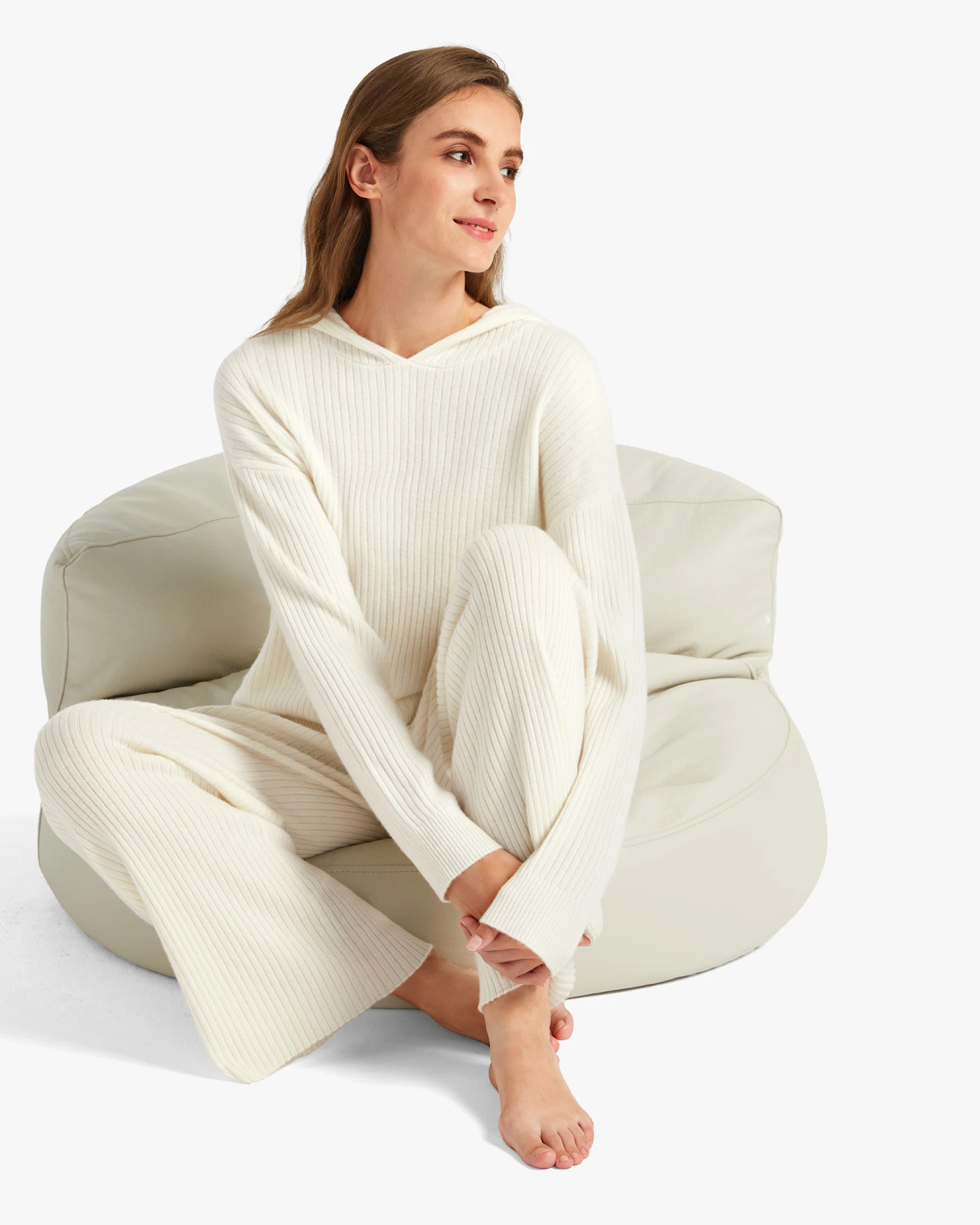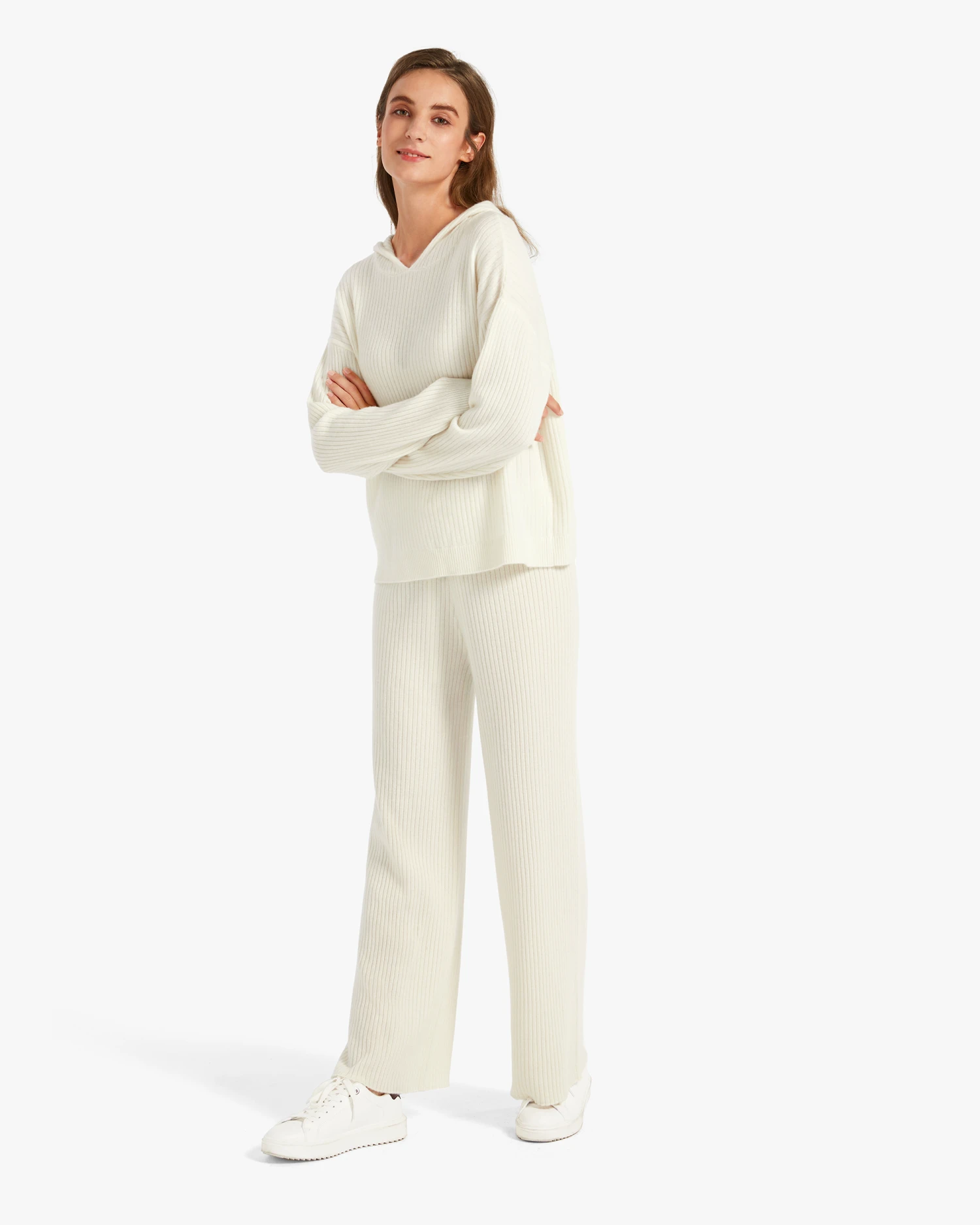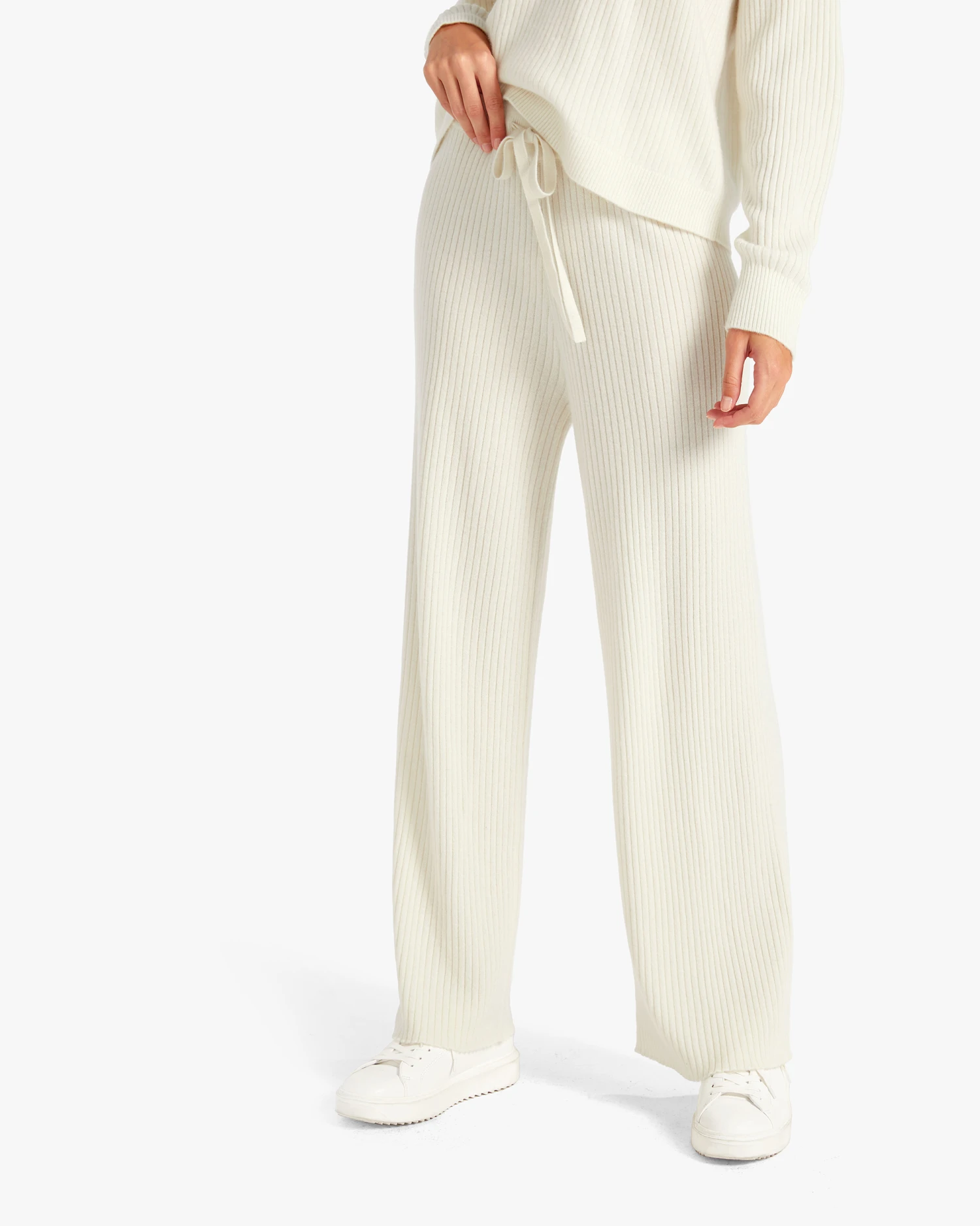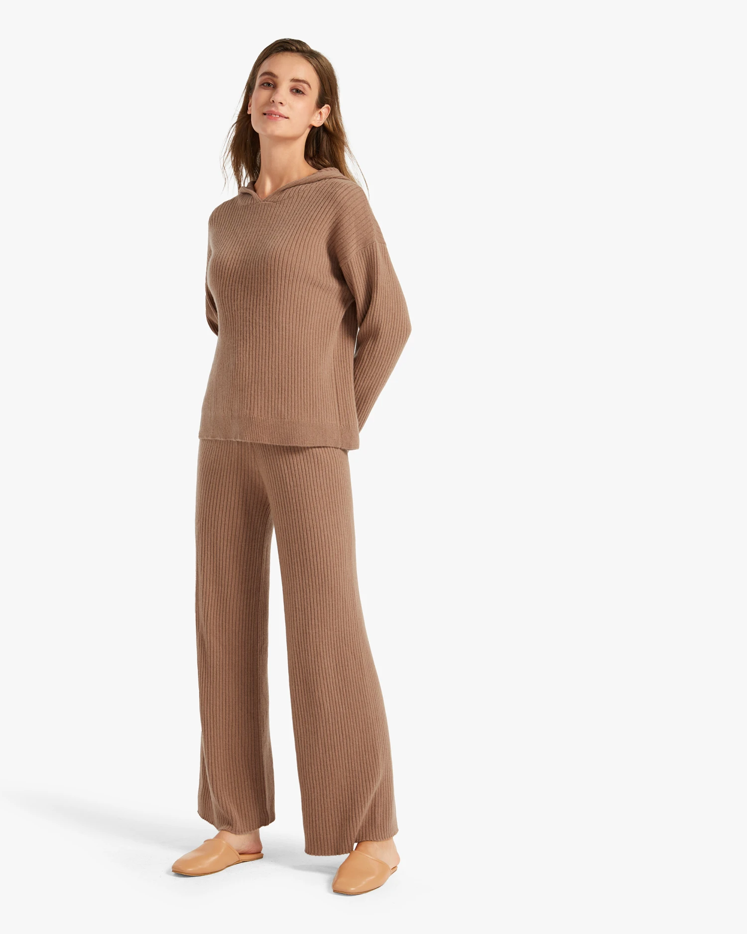 Cashmere is a rare natural fiber sourced from cashmere mountain goats making it as precious as silk fibers. This pair of cashmere wide-legged pants are thinner, smoother, warmer, and more breathable than regular wool trousers. You can either wear them as casual pants or pajama trousers.