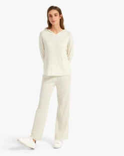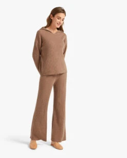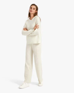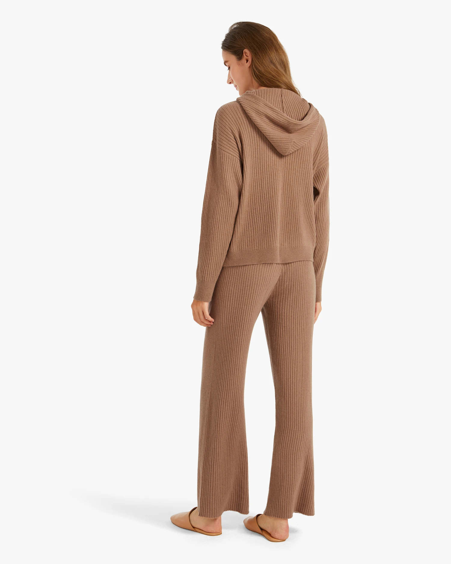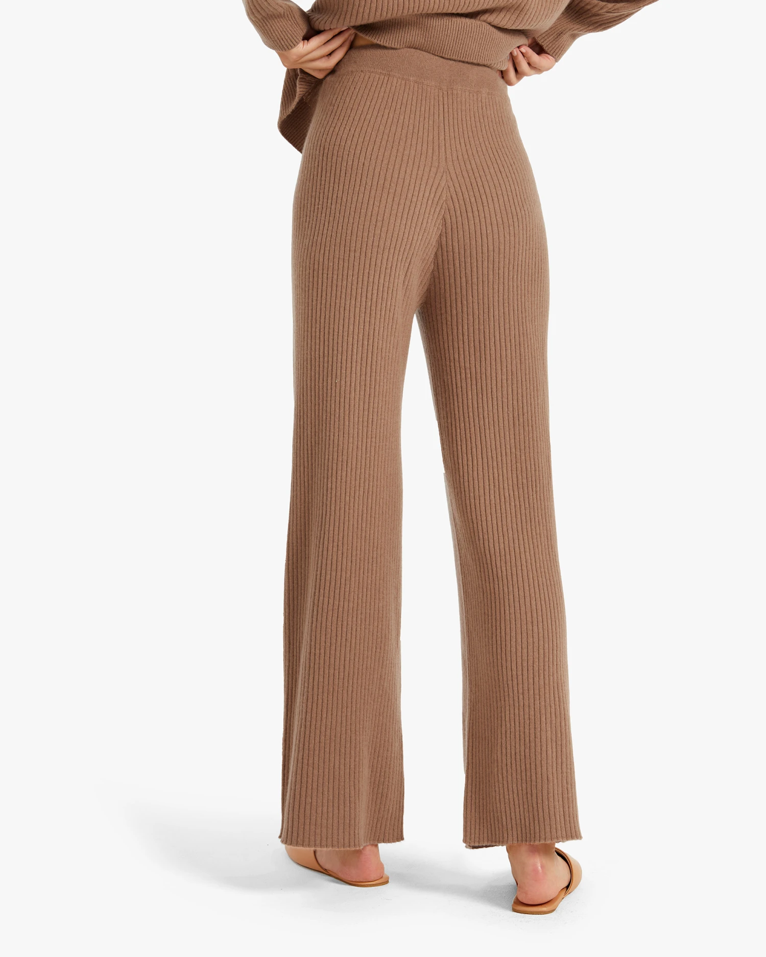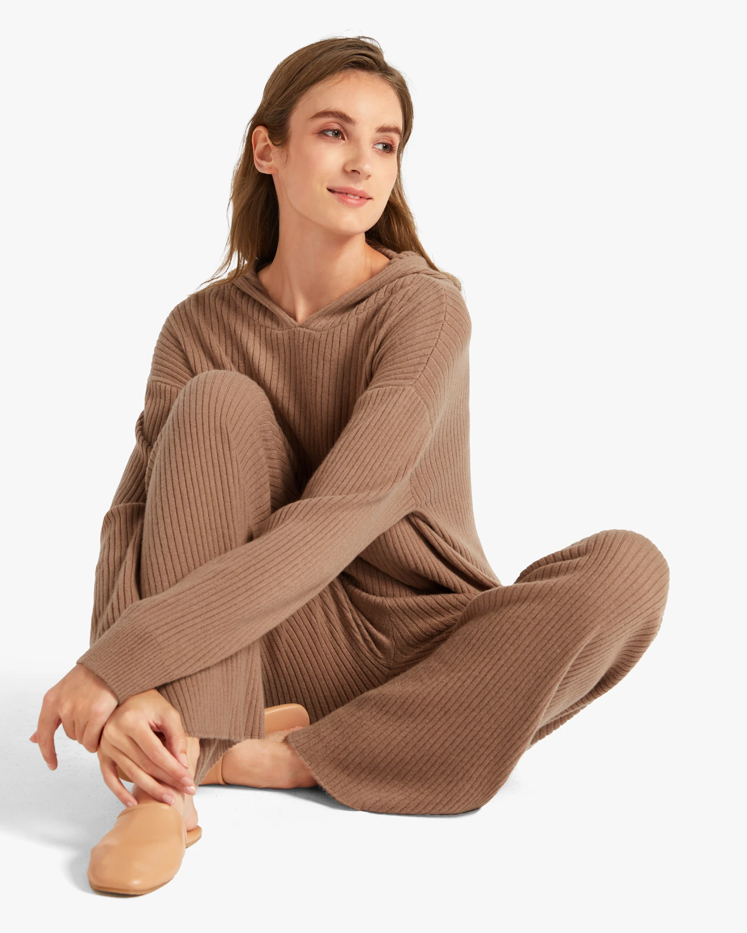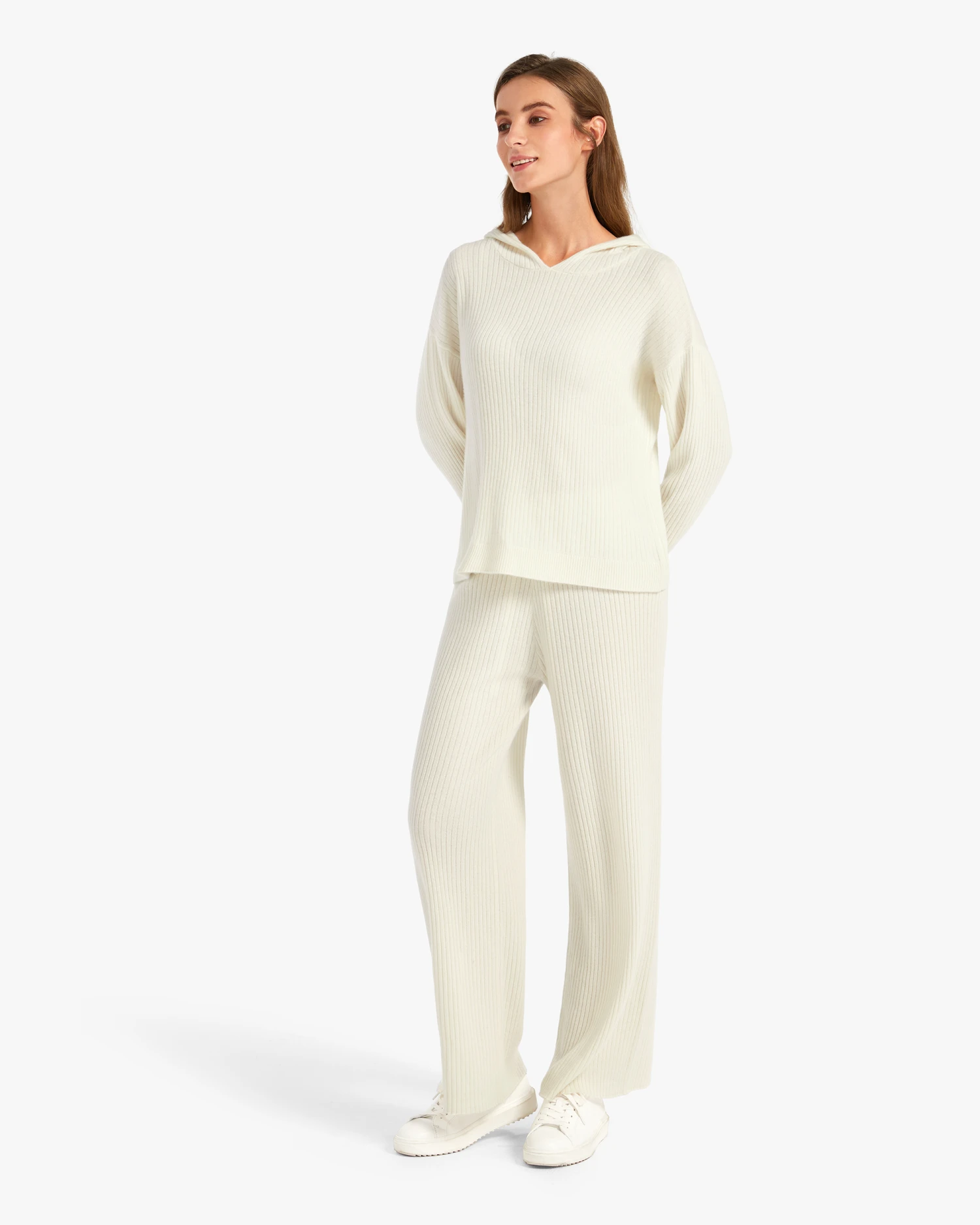 Cashmere is a rare natural fiber sourced from cashmere mountain goats making it as precious as silk fibers. This pair of cashmere wide-legged pants are thinner, smoother, warmer, and more breathable than regular wool trousers. You can either wear them as casual pants or pajama trousers.