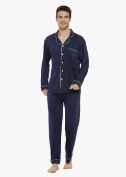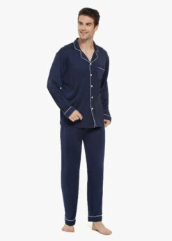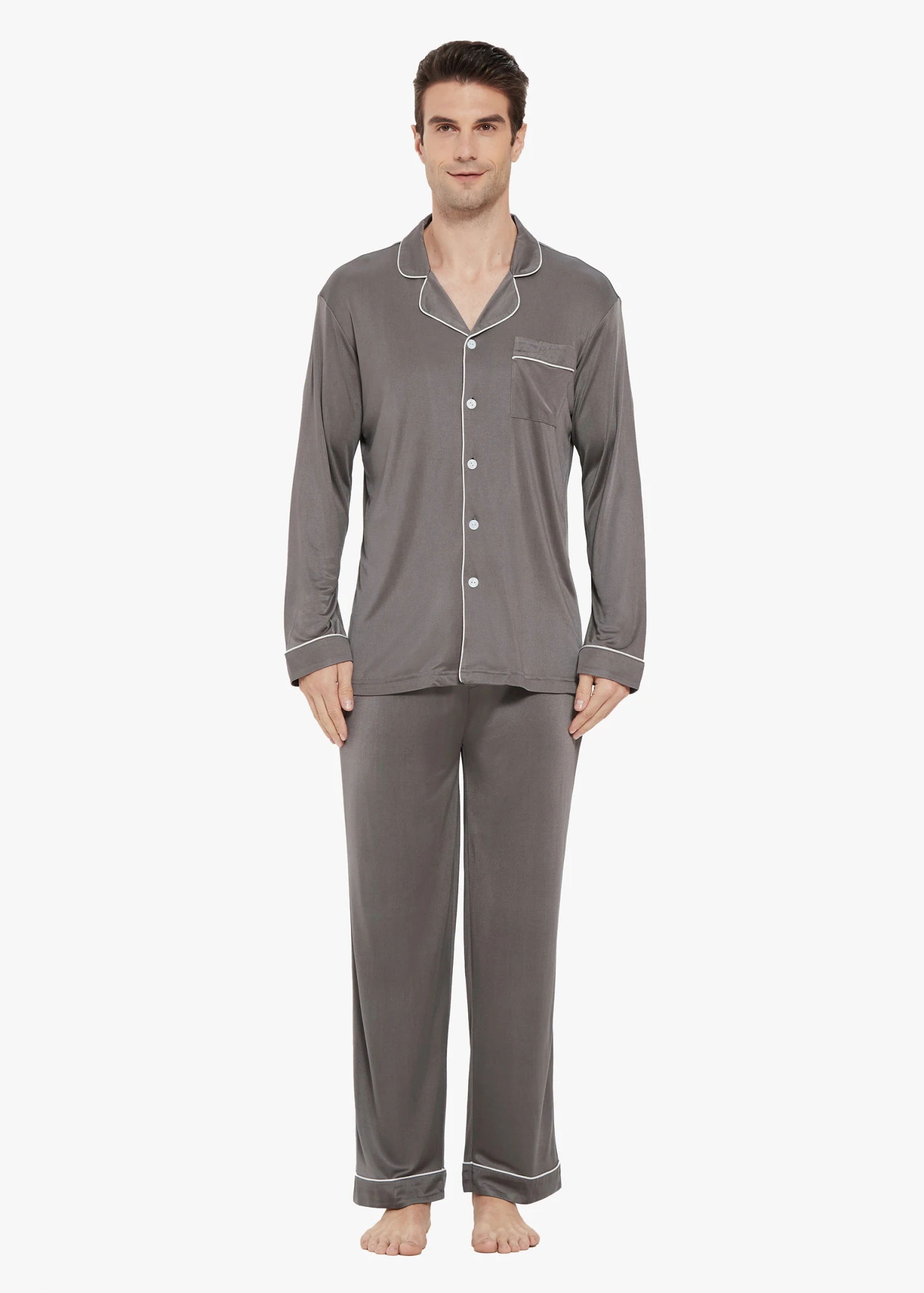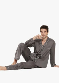 To wear at home or to take traveling, the Men’s Casual Lapel Collar Silk Pajamas are the perfect fit. These pajamas are made using the circular knit method to help prevent the silk from wrinkling and to provide the ultimate warmth and comfort. The traditional pajama-style shirt with contrast piping and elasticated drawstring pants makes them an easy choice to wear around the house too.