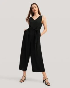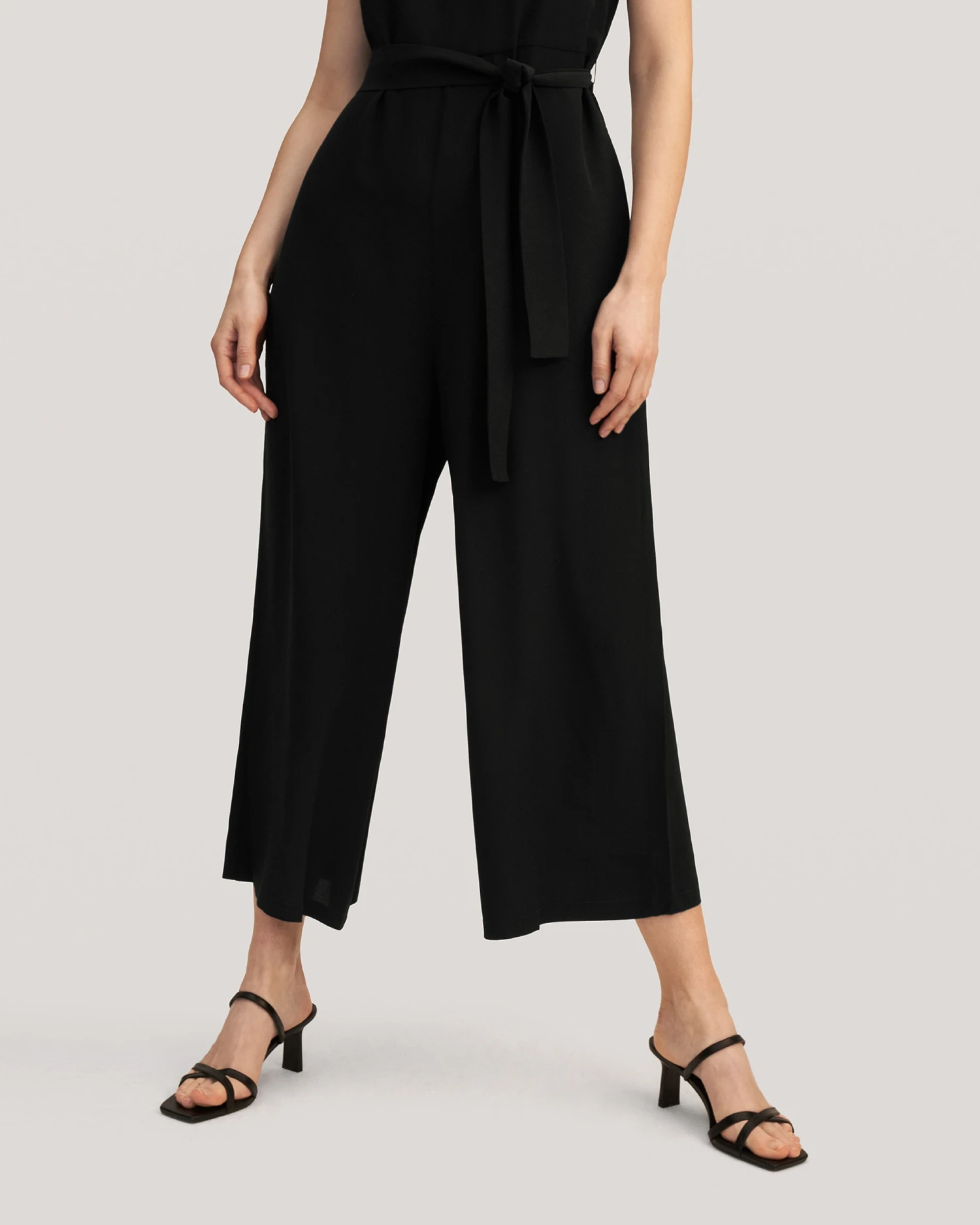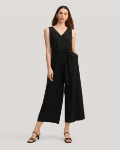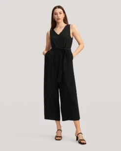 For laid back-style, the Wide Leg Cropped Jumpsuit is perfect for days when you want to be comfortable and stylish. Let dressing be one less thing to worry about, just put this jumpsuit on, and you’re ready to go. With a deep v neckline, a tie belt waist, and wide-legged, this jumpsuit will soon become your favorite to wear with slides or sneakers or even with heels for dinner. A perfect all-rounder for every occasion.