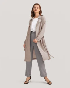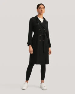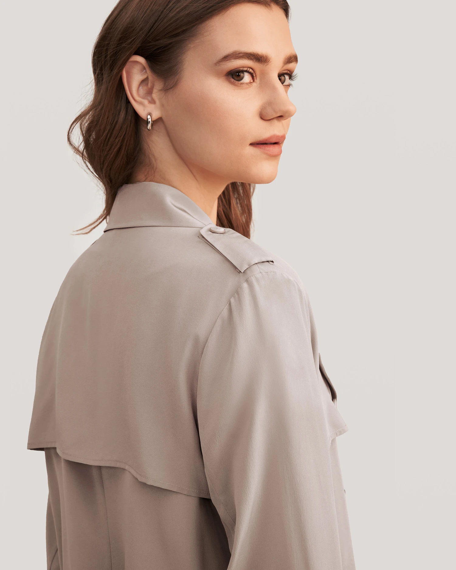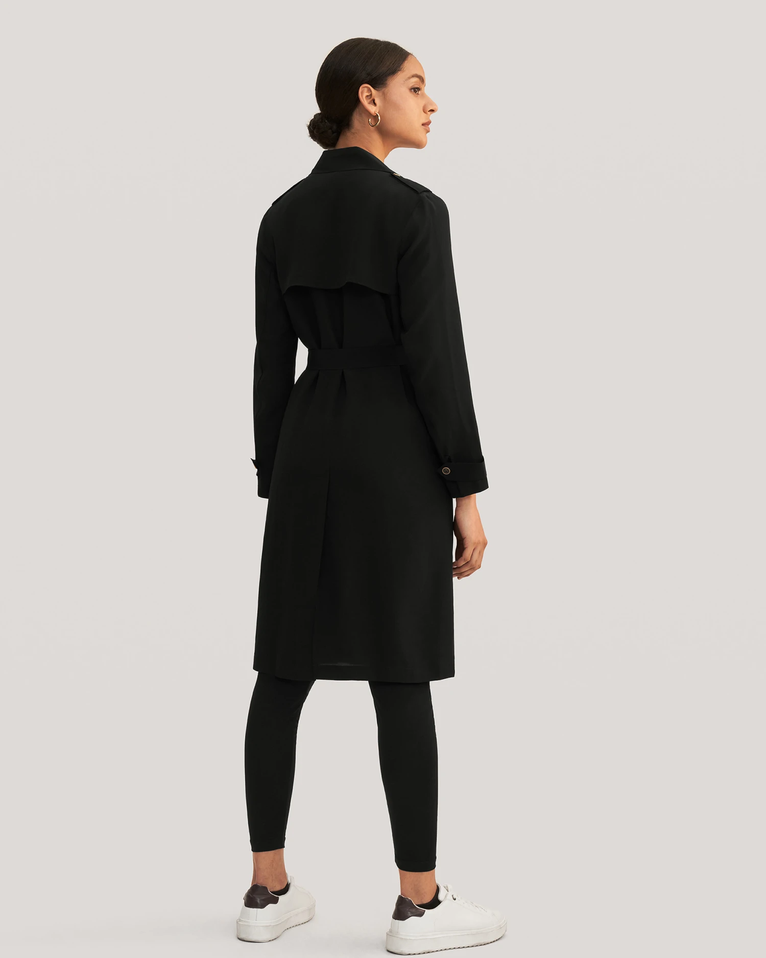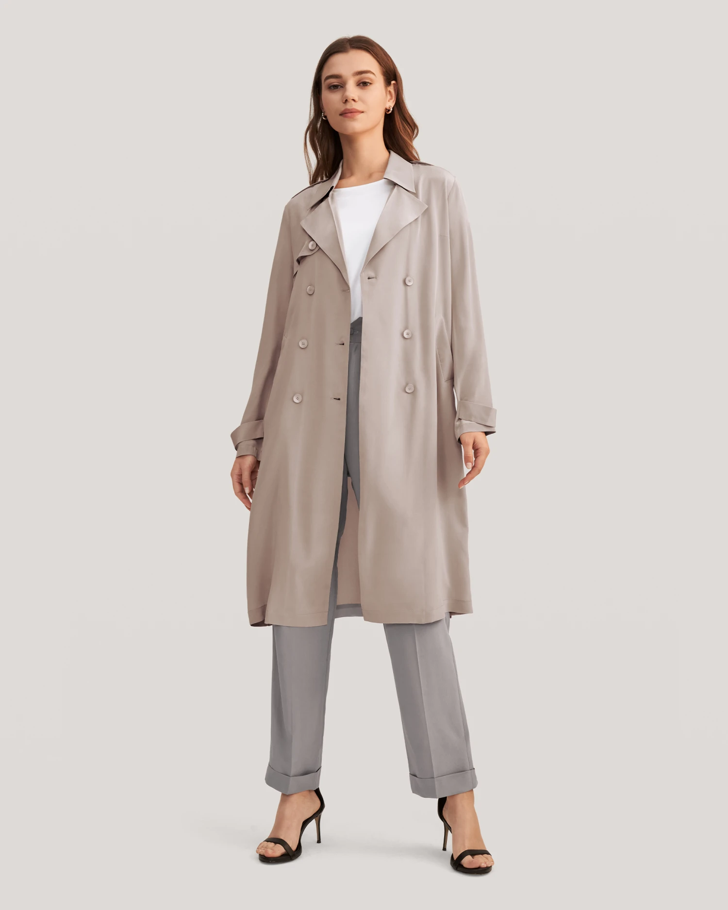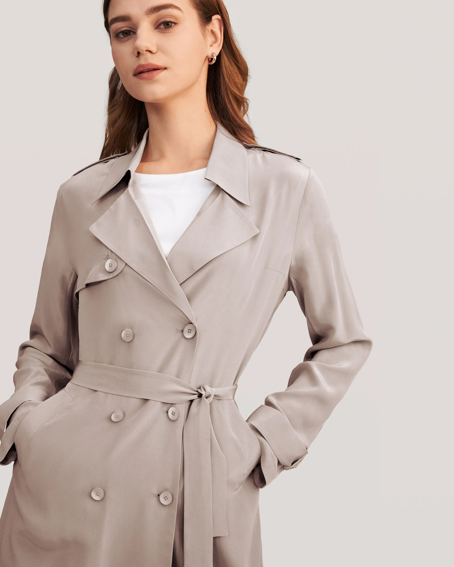 A perfect transitional piece. The Classic Double-Breasted Silk Trench Coat will see you through most seasons. Lightweight and versatile, this double-breasted trench coat makes for the perfect finishing touch to any chic ensemble. Worn over your shoulder, buttoned up, or loosely belted, you’re sure to look polished with minimal effort.
