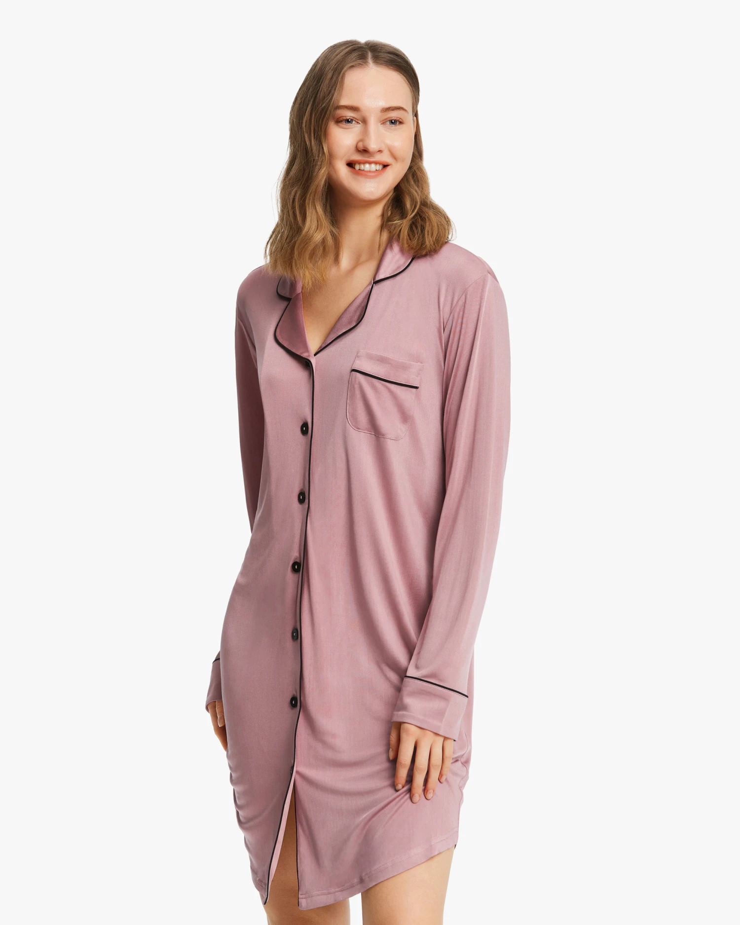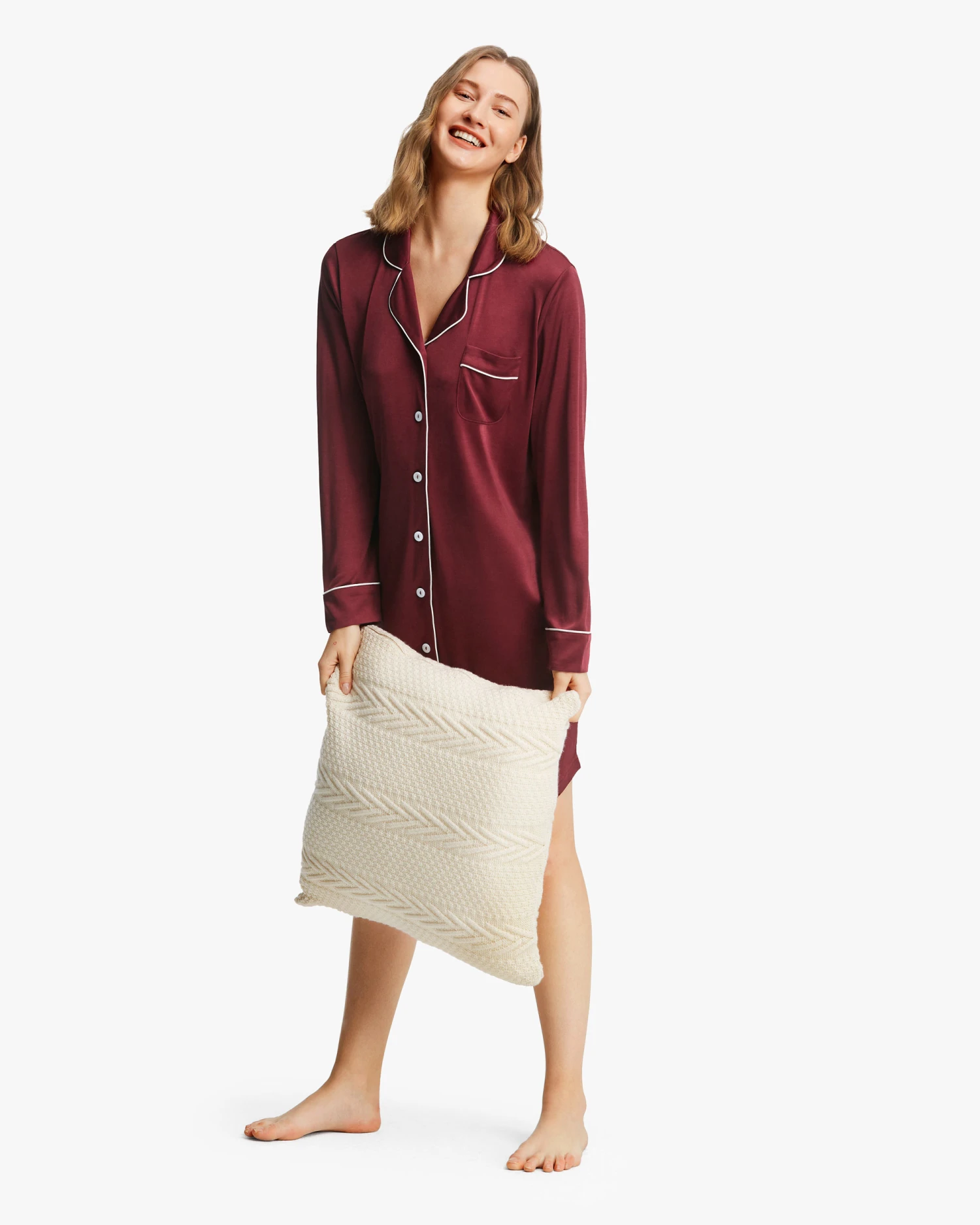 Sleepwear should be comfortable and stylish. This unique nightshirt is knitted of pure silk, making this item both ultra-soft and ultra-sustainable. Next to that, the supple jersey quality is breathable and temperature regulating with high moisture absorption – pure luxury during the night.