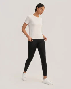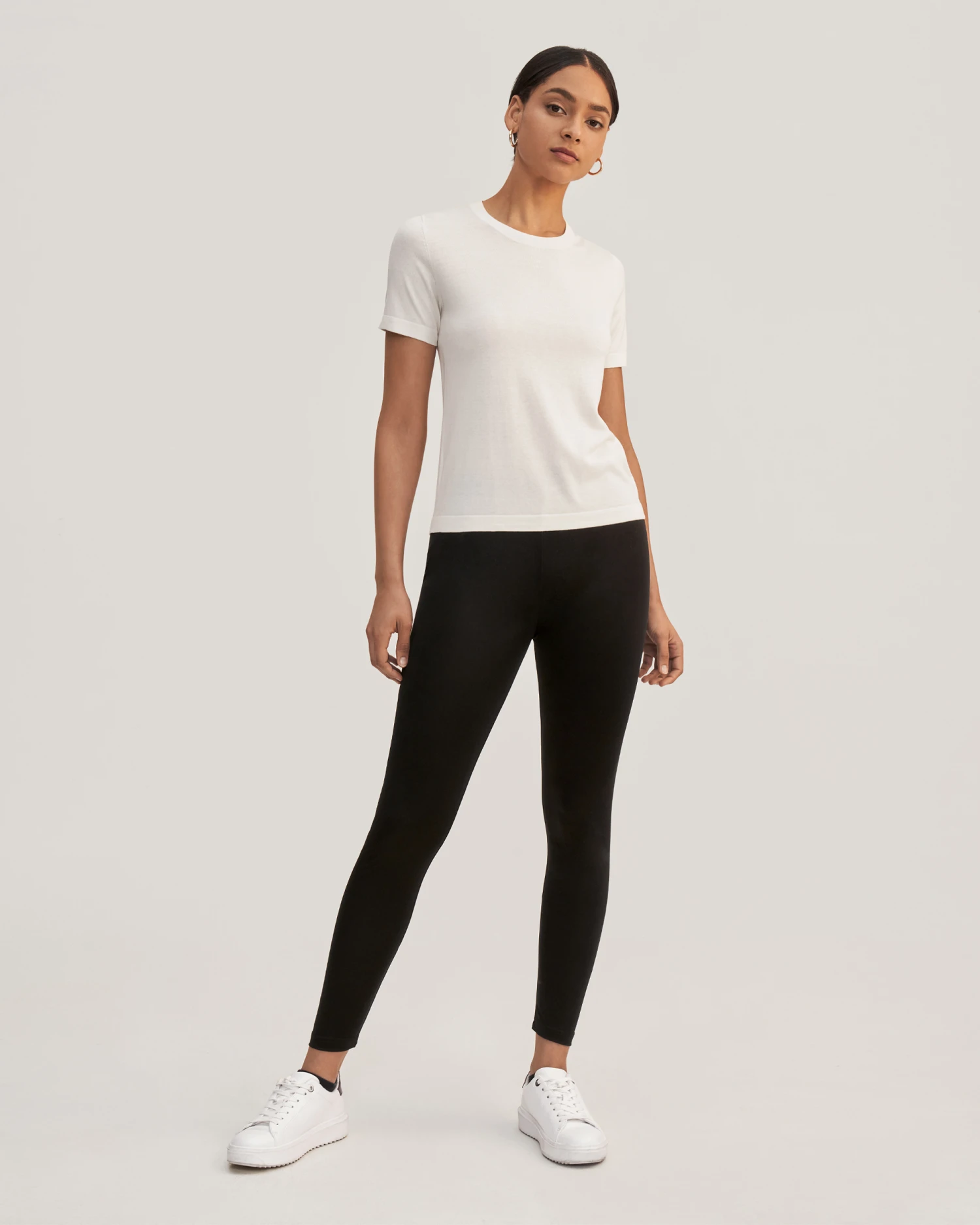 These leggings are knitted with 100% mulberry silk that feels really soft and lightweight. They’re designed for a close fit and have an elasticated waistband that sits comfortably above the hips. Wear them with oversized t-shirts for hanging out or a sports bra for fitness.