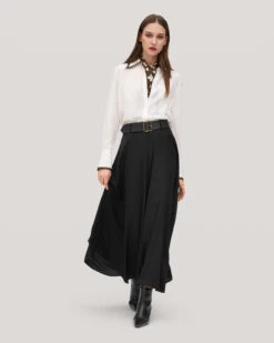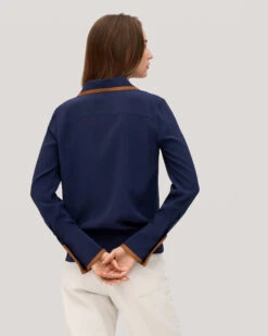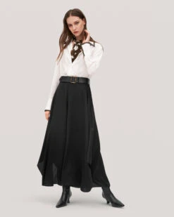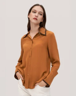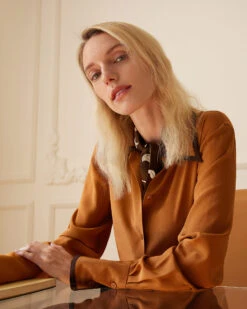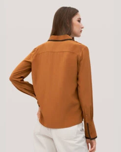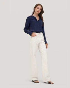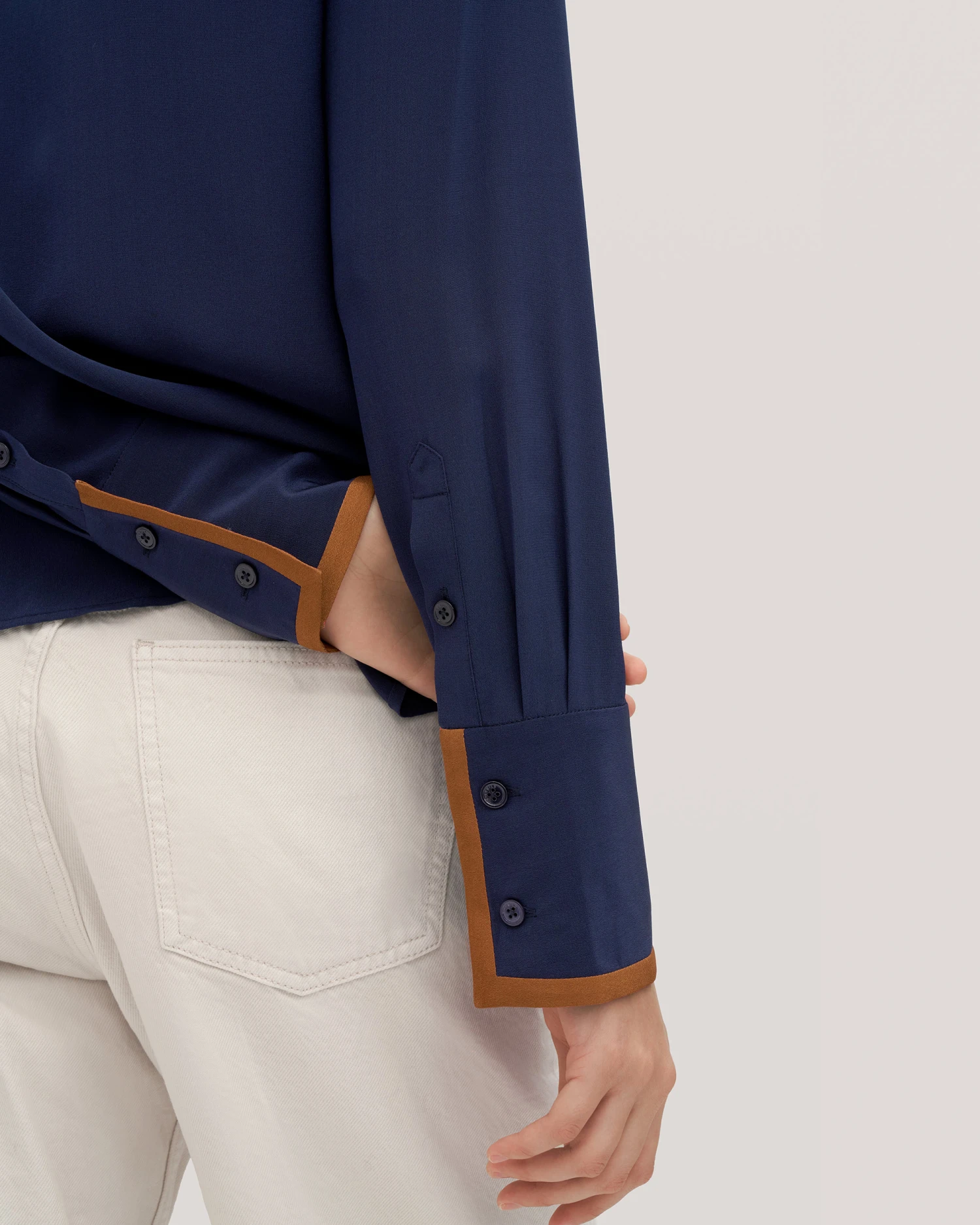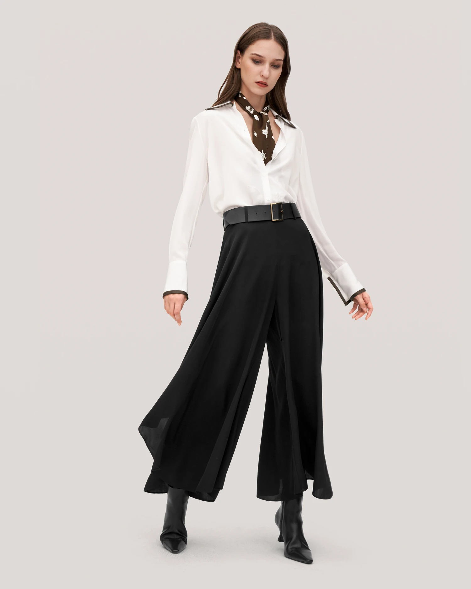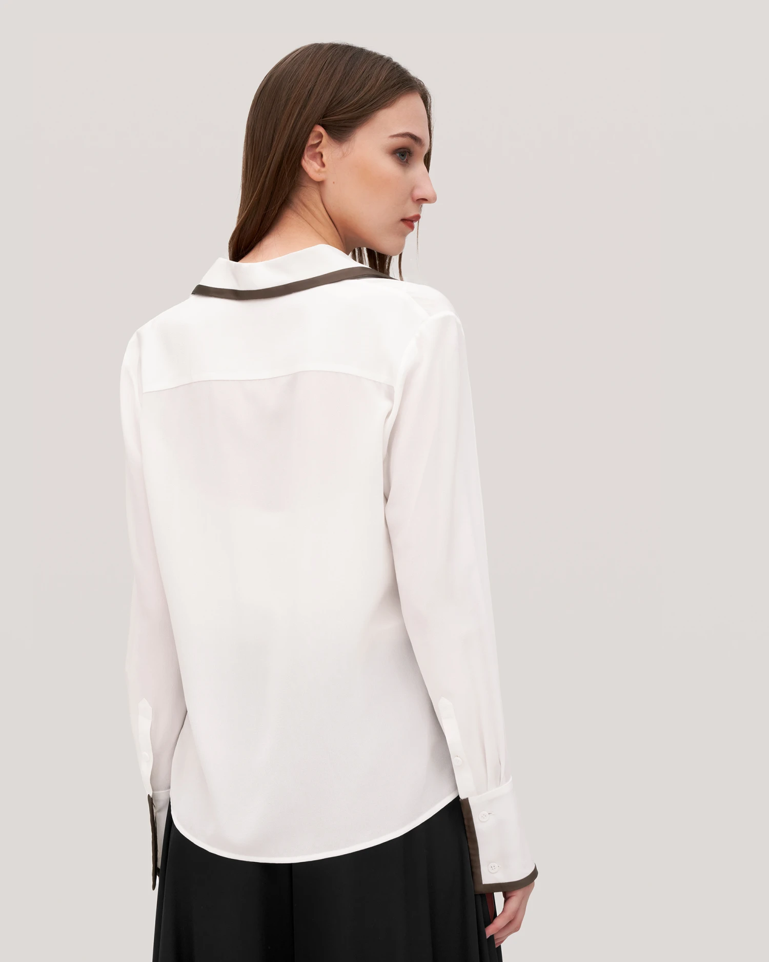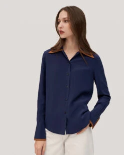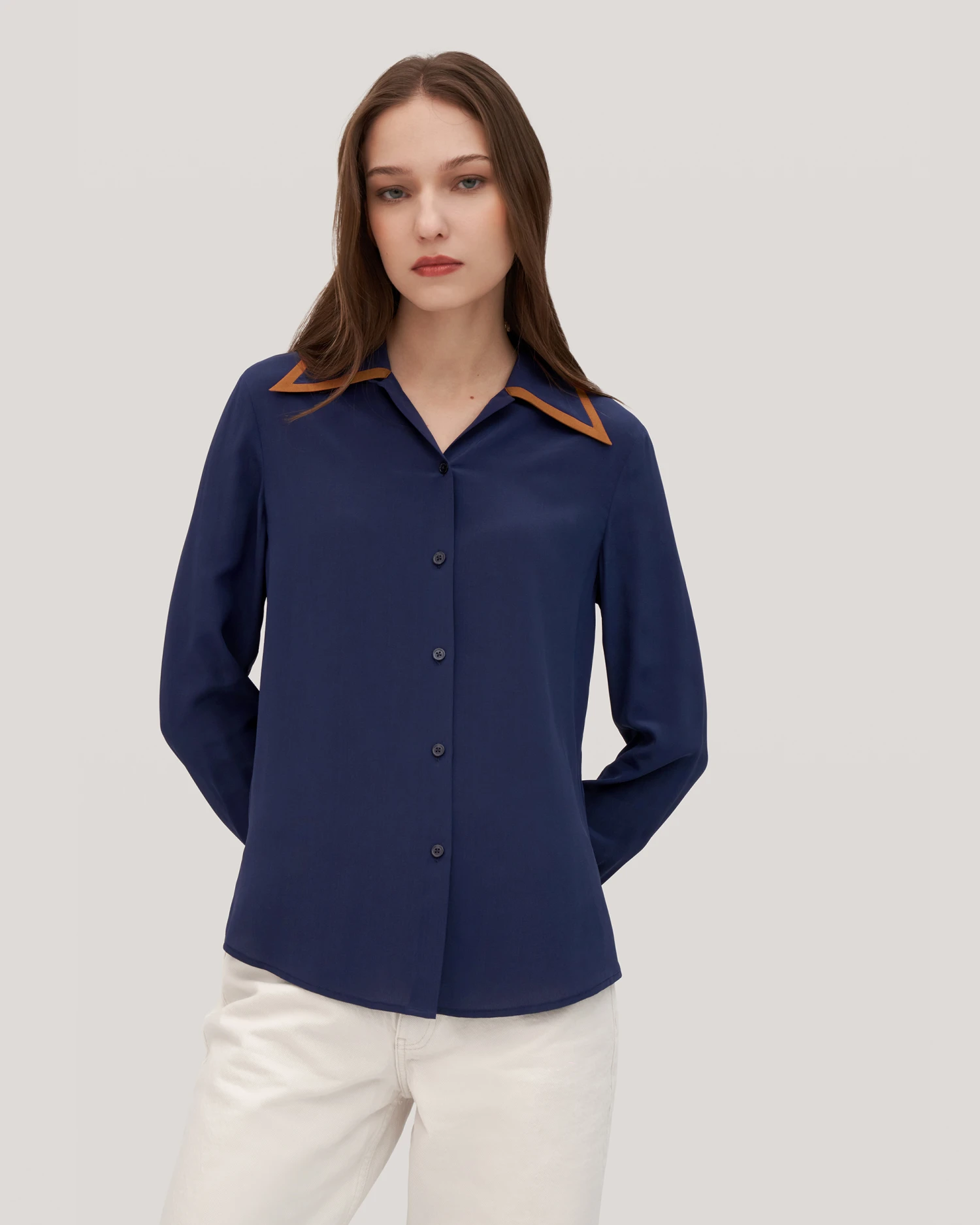 Treat your daily wardrobe to a little something special (you deserve it!) with this art deco-inspired crepe de chine silk shirt, tailored for a figure-flattering fit. Beautifully balanced with a pointed collar, split hem, and French cuff, this effortlessly chic piece transitions perfectly from desk to dinner. Pair with denim for business casual elegance, or with culottes and a statement heel for fashion-forward flair.