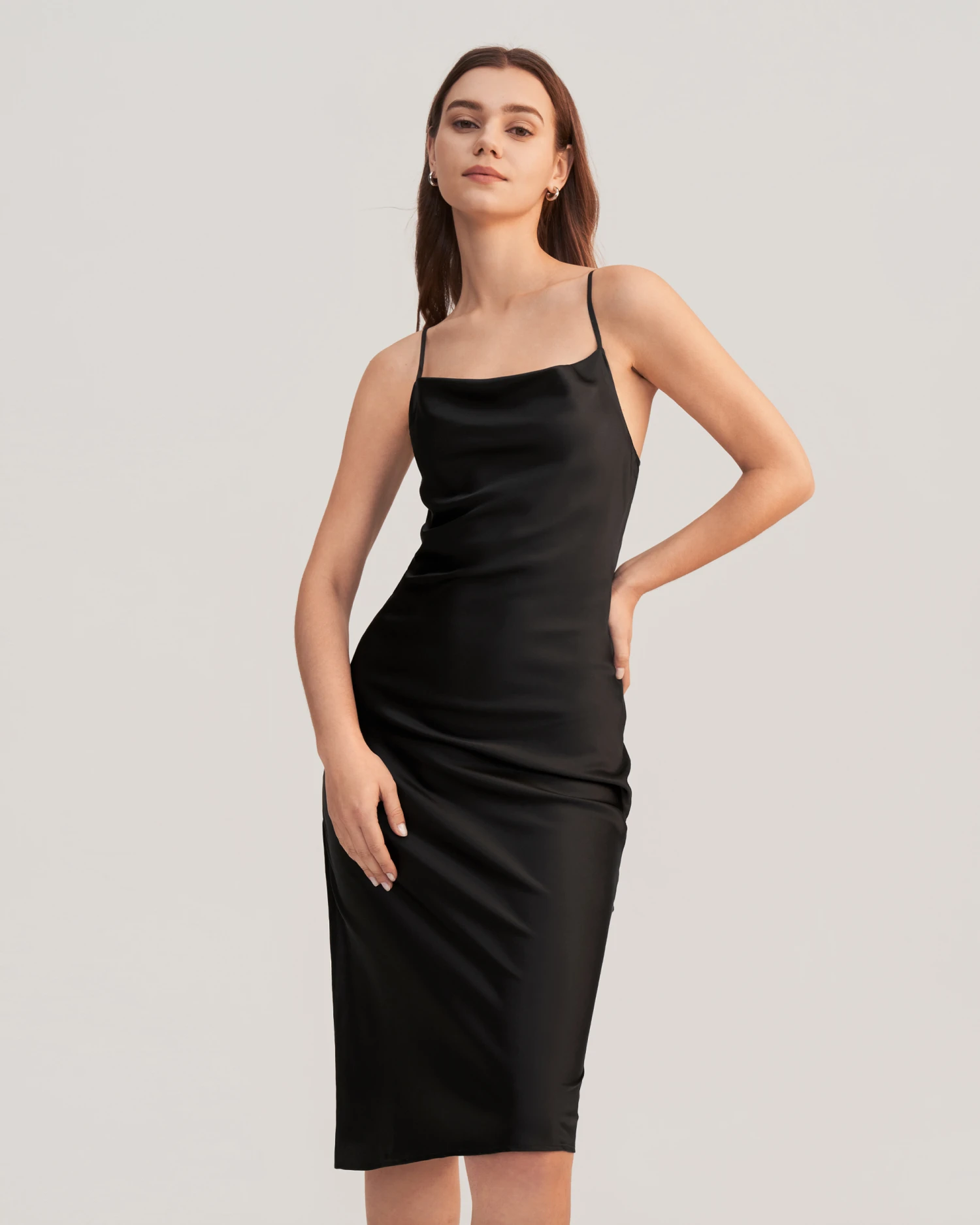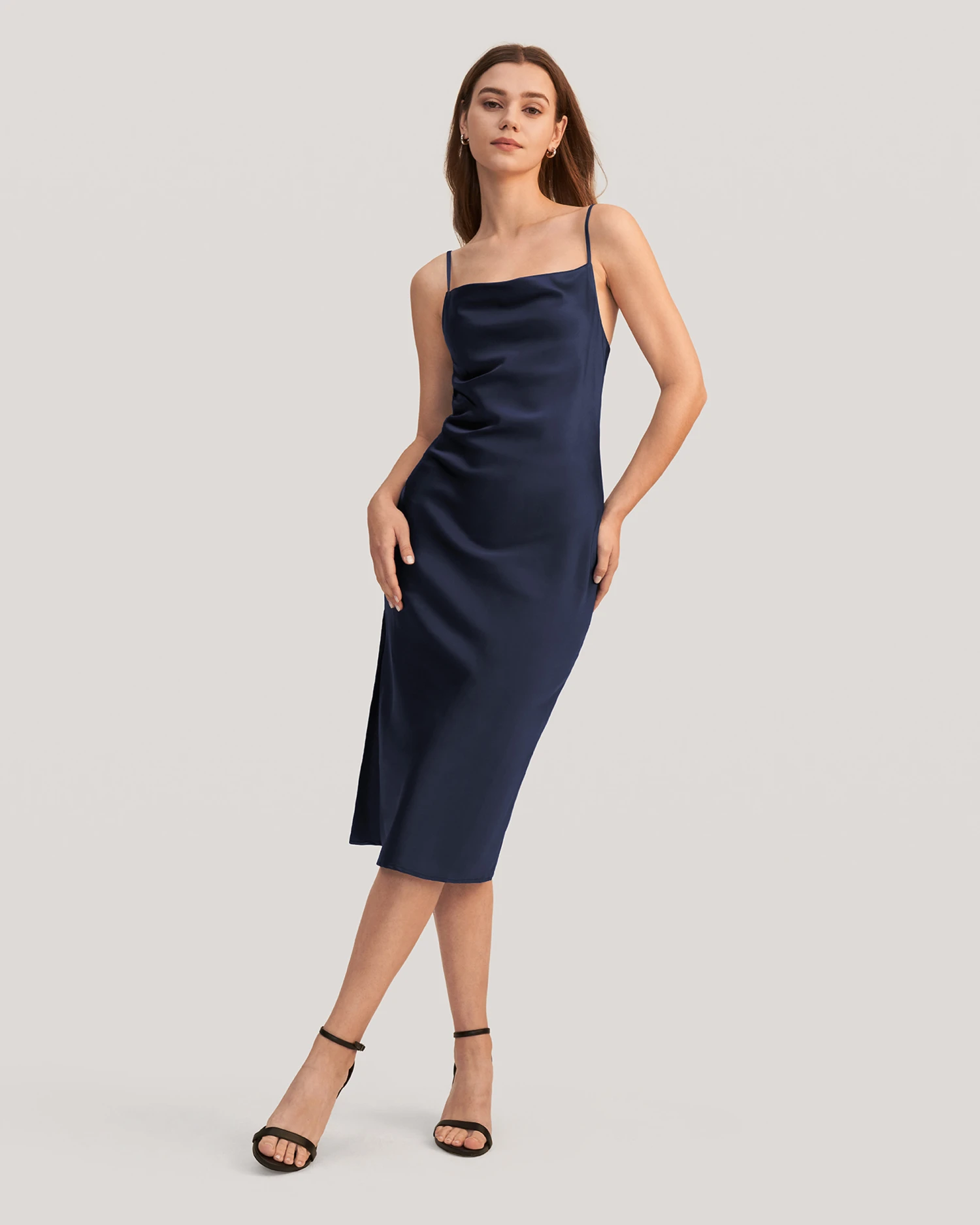 Crafted in luxurious silk, the Cowl Neck Silk Slip Dress will not only fit you like a glove but ensure you are the epitome of elegance. Perfect worn for a date or a party, the flattering cowl neck and side split will ensure you feel and look good, the ideal addition to your timeless wardrobe.