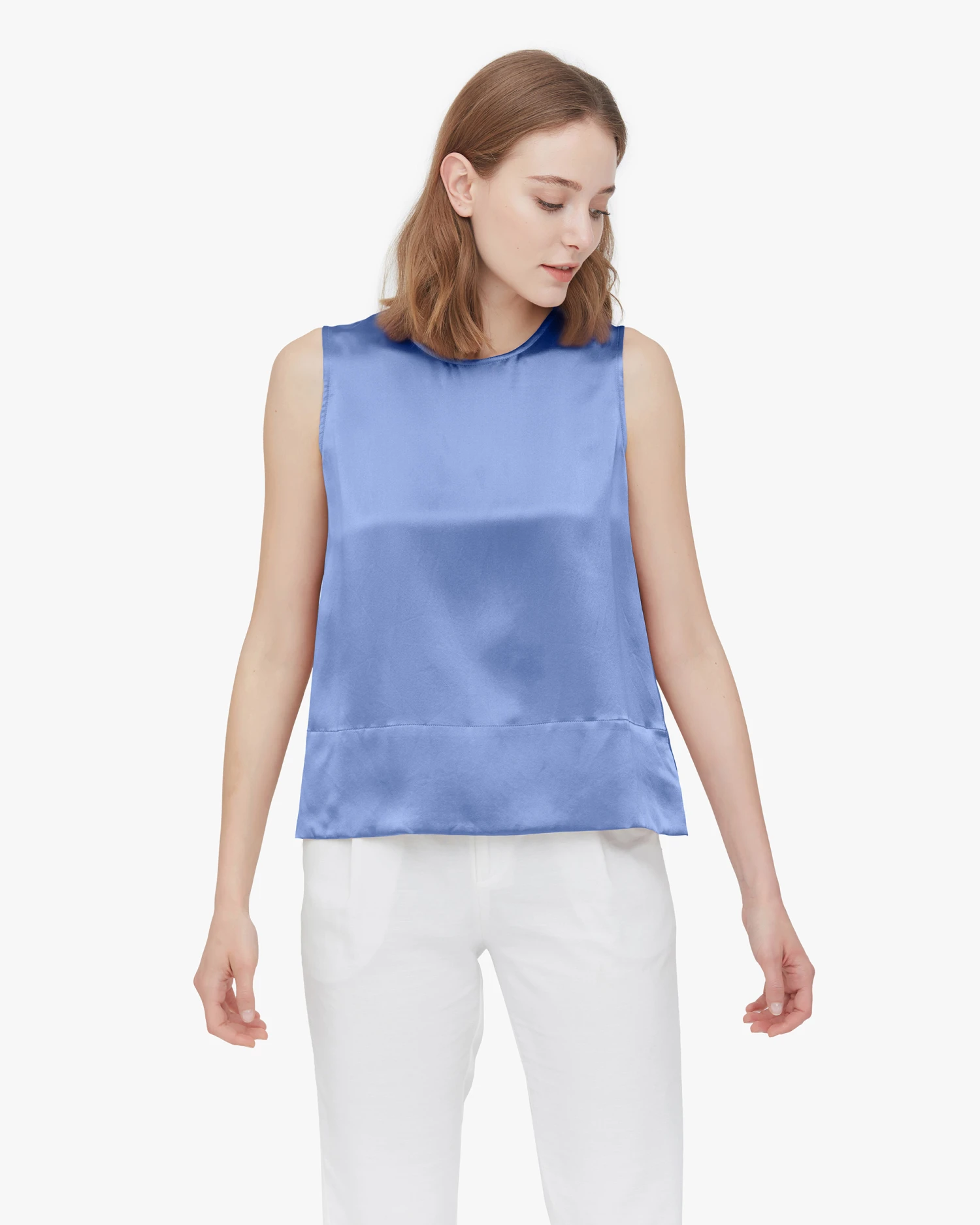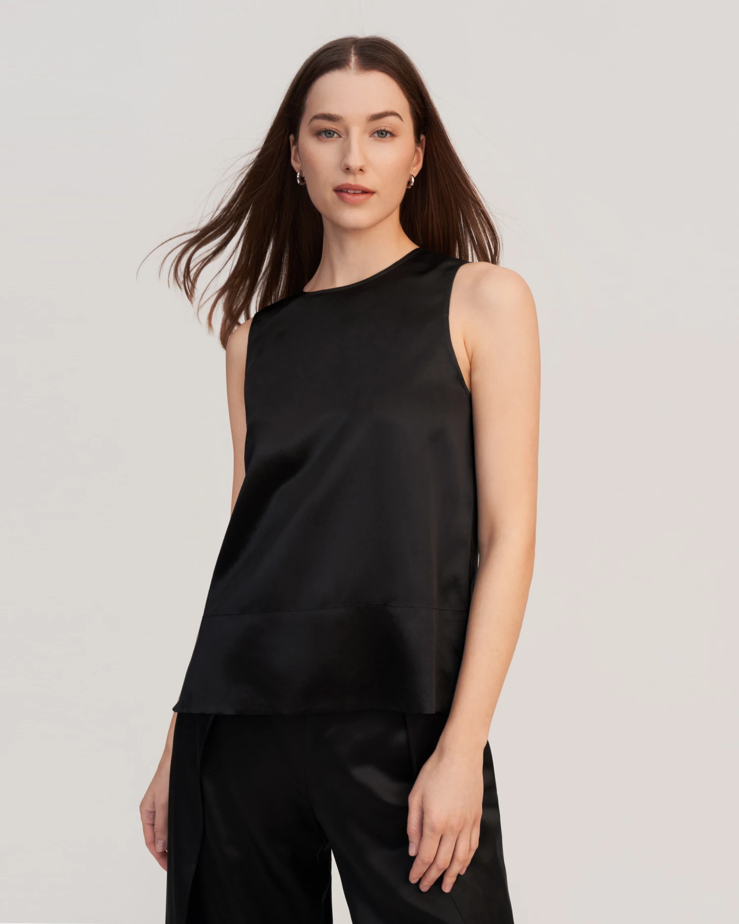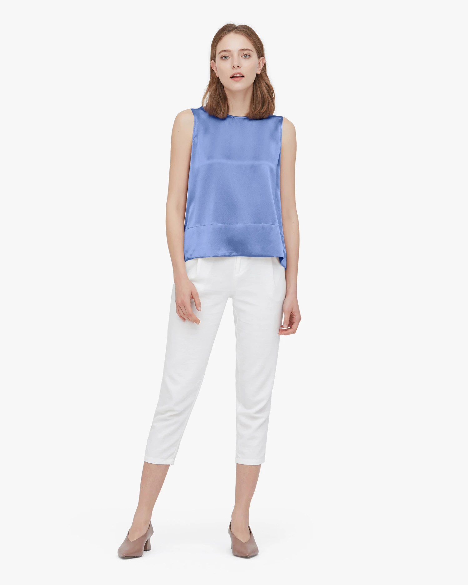 Finally, a top that does it all. The Round Neck Silk Tank Top is the perfect addition to your wardrobe. It features a sleek round neck and splits at either side of the hem, making this the perfect tank top to tuck in or leave out for an effortless look. Your all occasions top available in multiple colors to see you through all seasons.