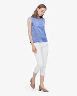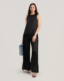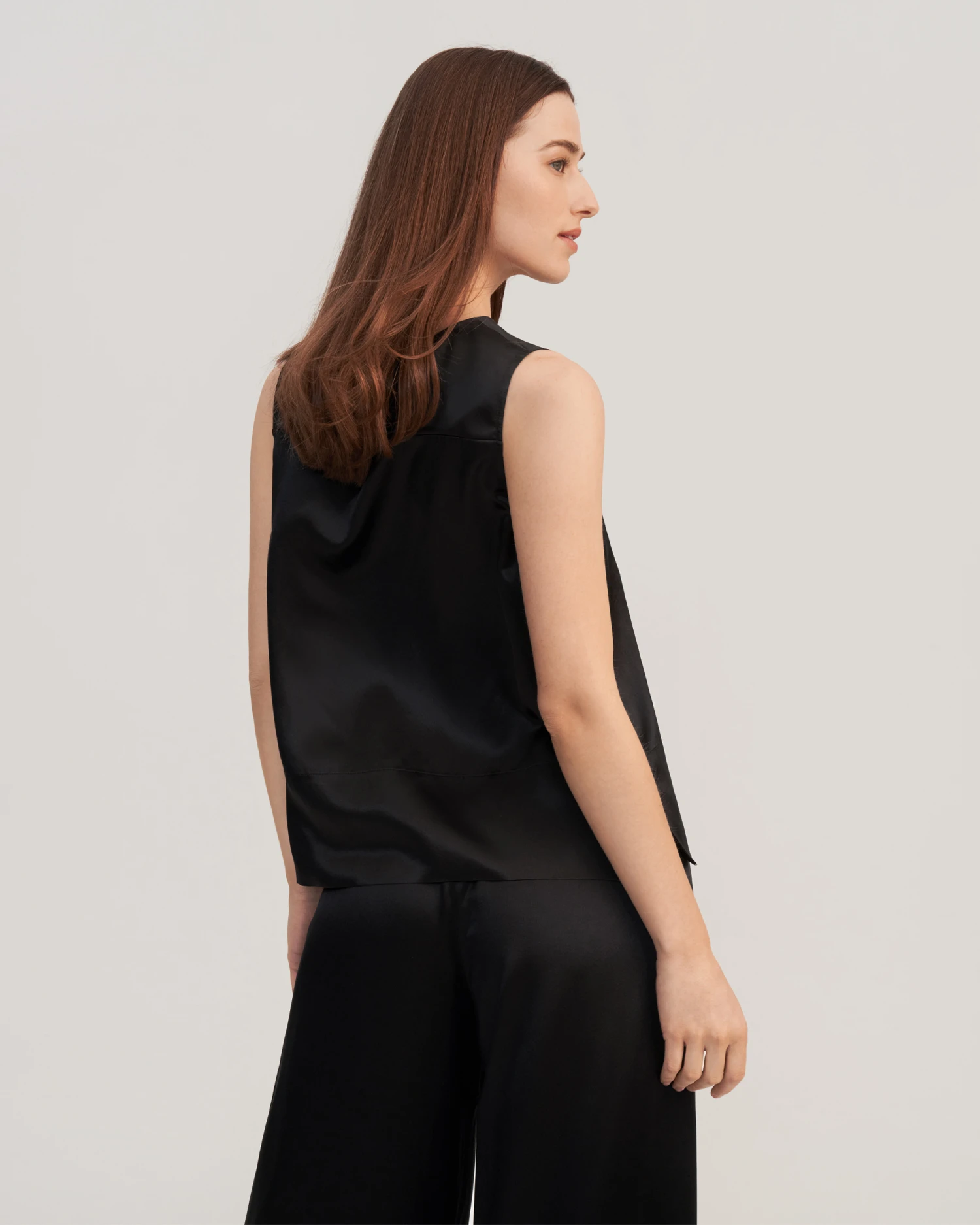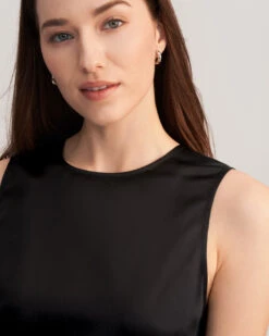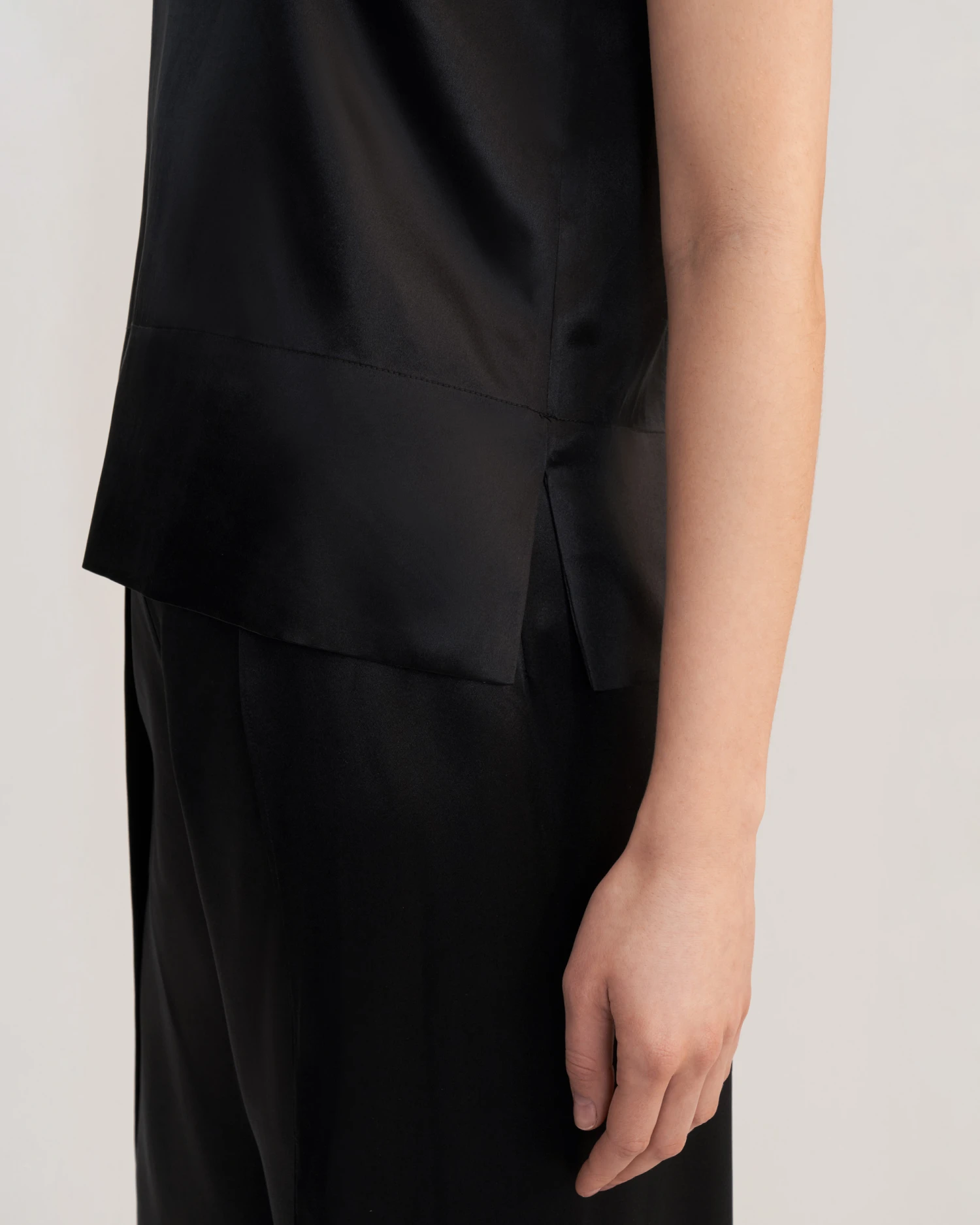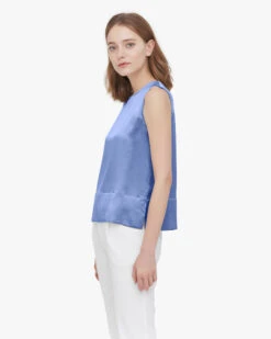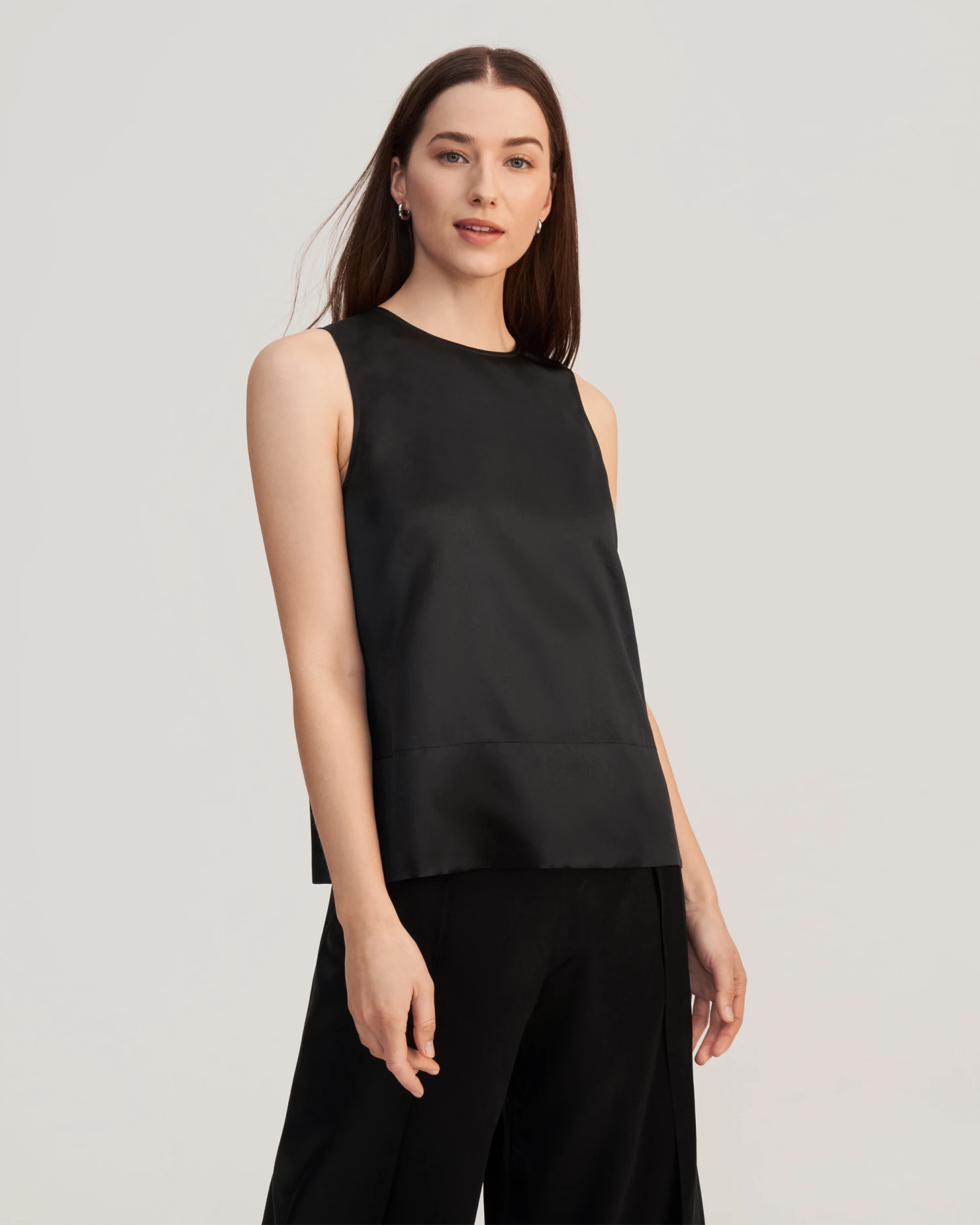 Finally, a top that does it all. The Round Neck Silk Tank Top is the perfect addition to your wardrobe. It features a sleek round neck and splits at either side of the hem, making this the perfect tank top to tuck in or leave out for an effortless look. Your all occasions top available in multiple colors to see you through all seasons.