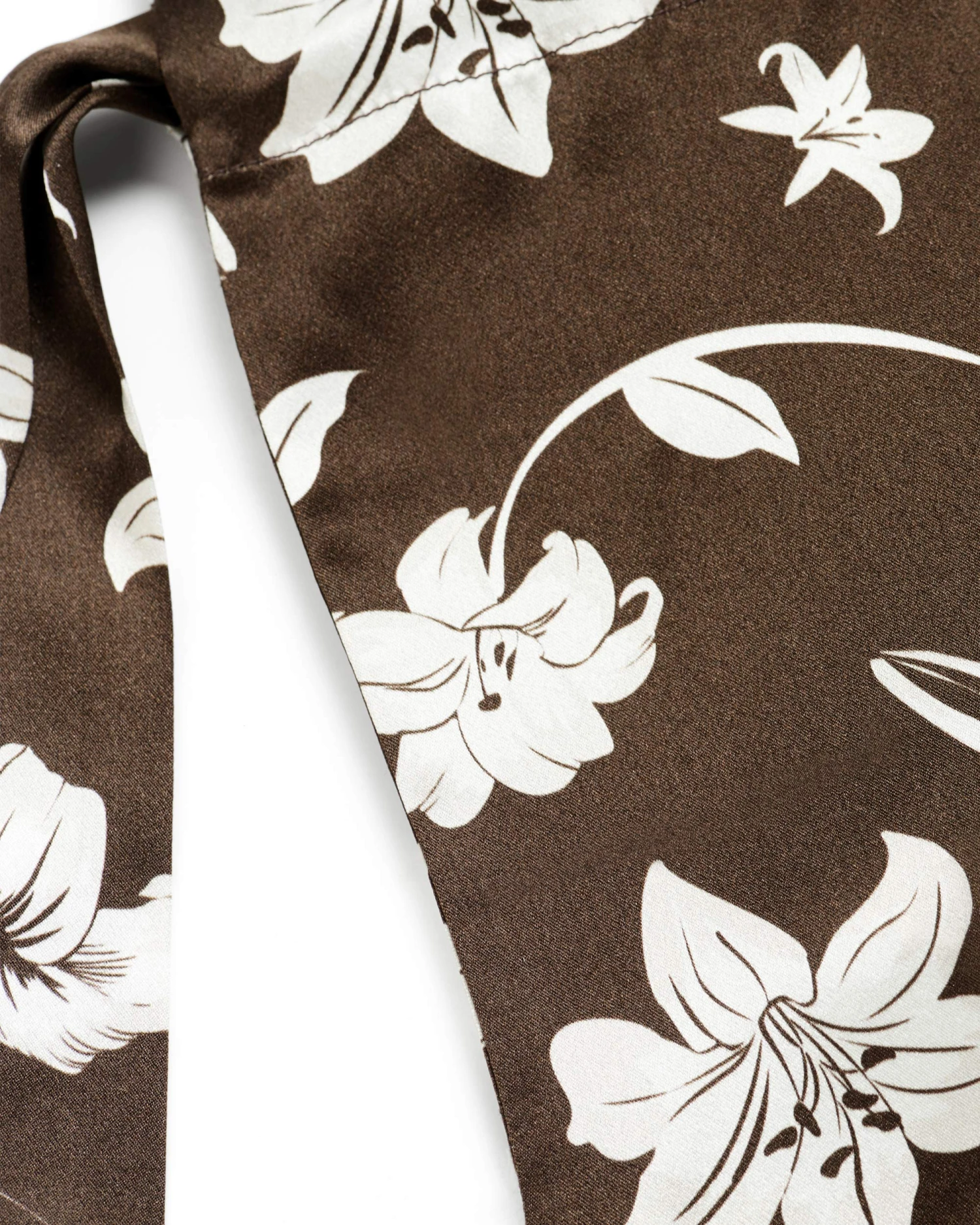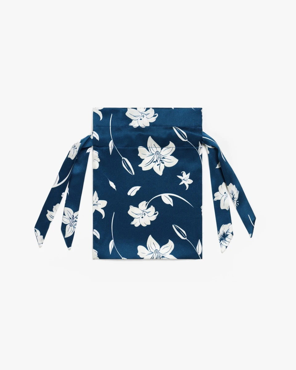 Add a touch of luxury to your on-the-go essentials with this limited-edition vintage lily print pouch. Made from 100% silk and available in navy or chocolate, this delicate pouch is perfect for safely storing your signature lipstick in your handbag, or tucking away your vintage lily print eye mask while traveling.