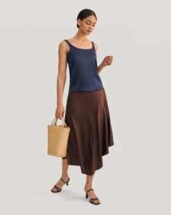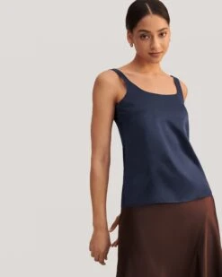 Stay comfortable and feel chic. If you are looking for chic simplicity and clean lines, look no further than this flattering U-neck camisole. This cami is cut from fluid silk fabric, which shines to a high luster. Dress yours up for dinner with a glossy silk skirt and delicate jewelry.