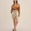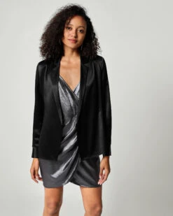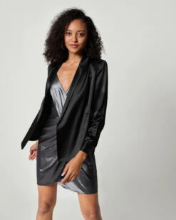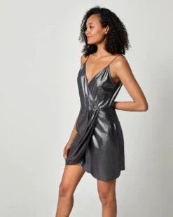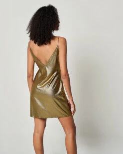 A sleek and silky cami dress transcends occasions and seasons. This dress is made of a special bronze crepe de chine silk, making it luxurious and durable, and features spaghetti straps and a deep v back. Wear it with a blazer for the office or alone for a chic party look.