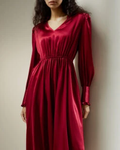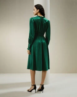 A-line skirt dress designed by LVloverCC (Charis) for the clean, discreet, and elegant style. Classy V-neckline with half ruffle corral and thick cuff with ruffle sleeves. Elasticated waistline and a-line skirt with lots of flawy movement. Perfect night out, special occasions, wedding guests, and events dress. Wear alone with flats or heels for warm seasons and pair a long coat with tall boots for cooler days.