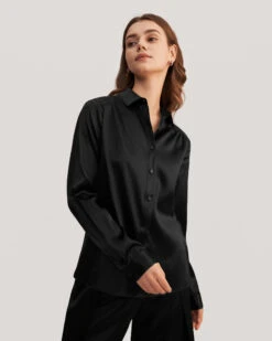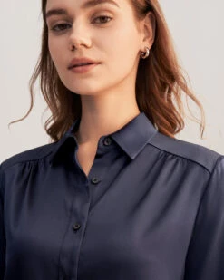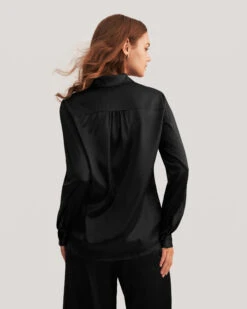 This Long Sleeve Collared Silk Blouse can be worn across all seasons. Made with 19 momme silk and spandex material, this shirt is essential for your wardrobe as it features a pleated design at the back; whether it be for workwear or weekend wear, this item is a must-have. The shirt sits below the hips, offering a curved hem which is perfect if you wish to tuck the shirt into your favorite pair of jeans.
