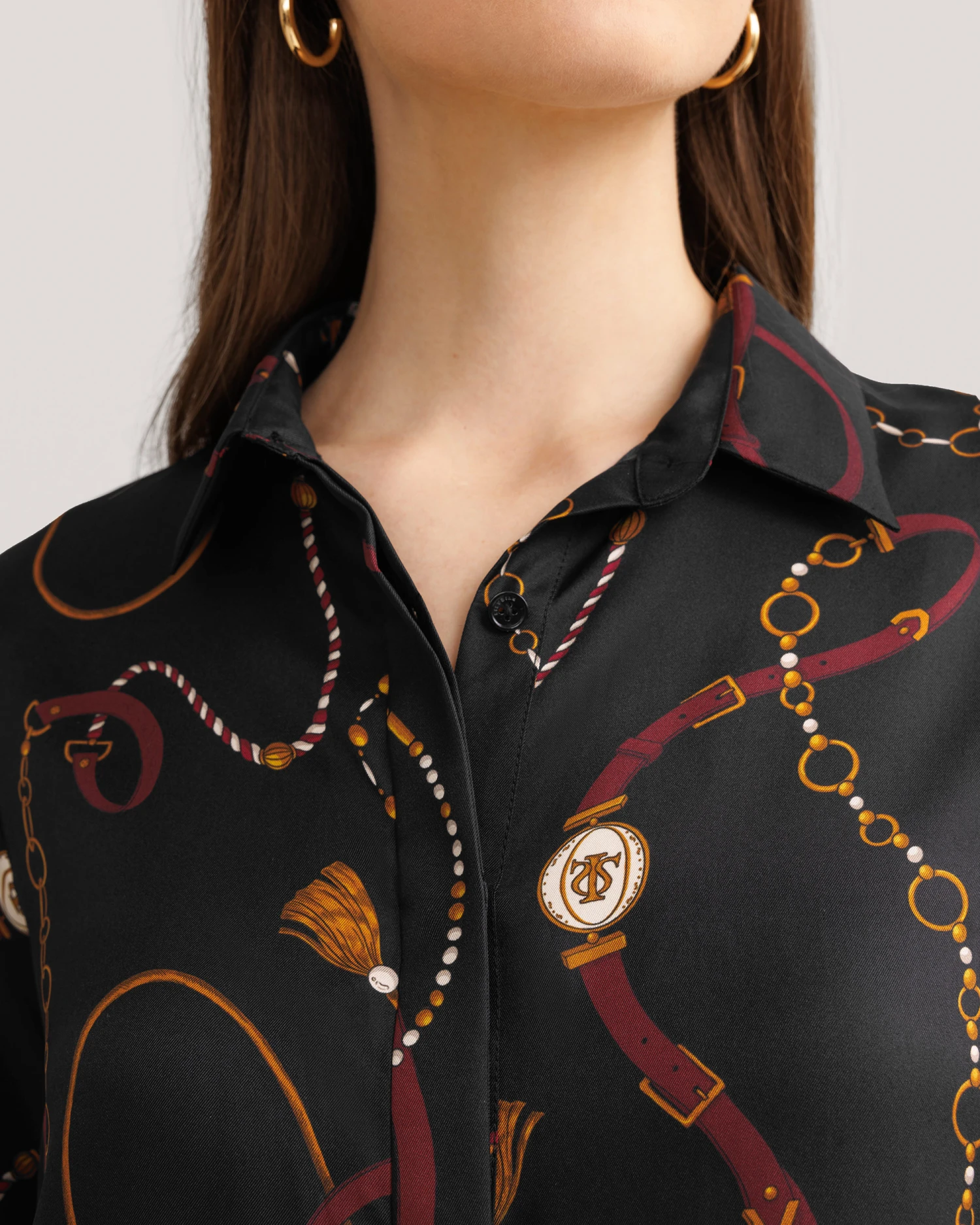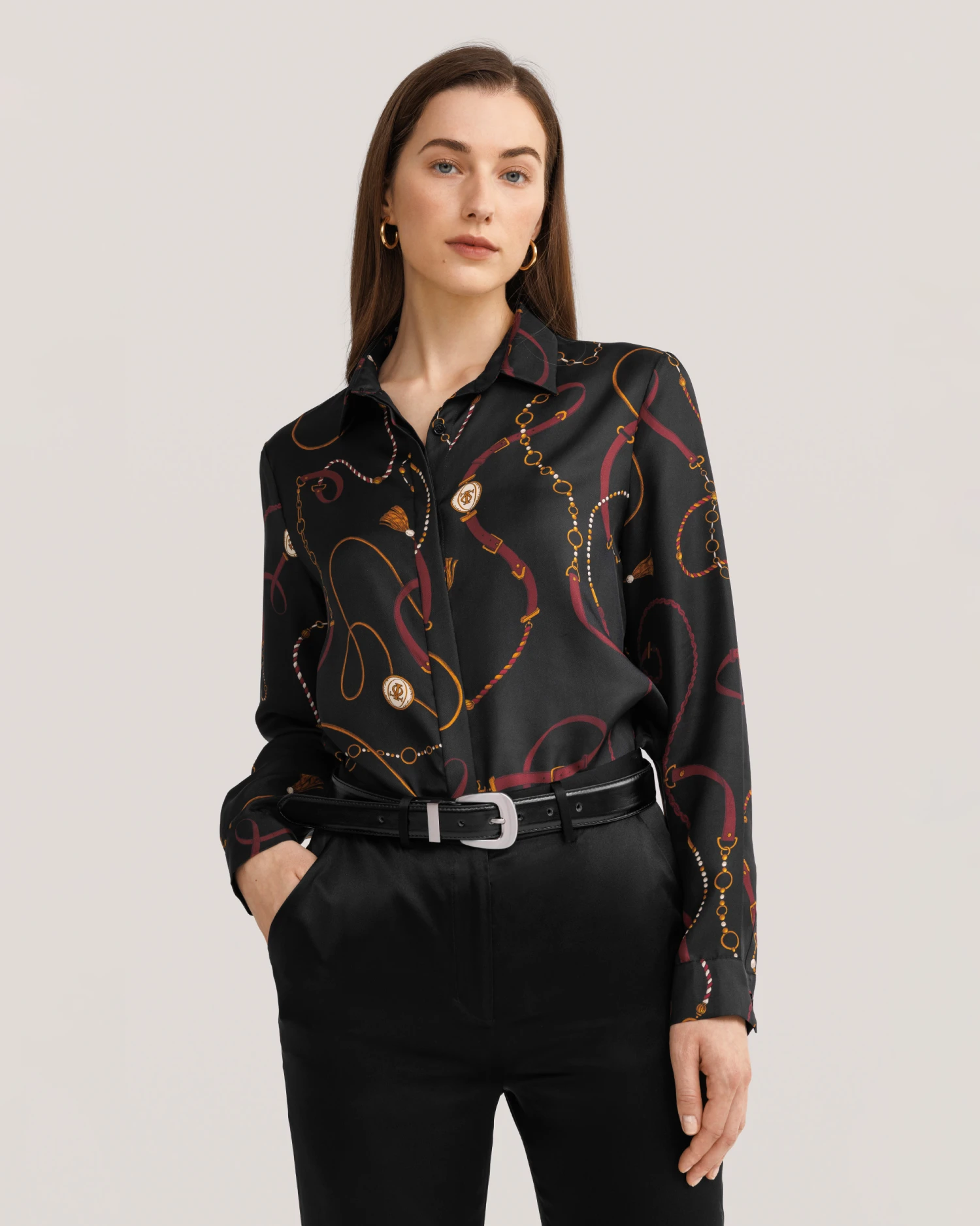 Tailored, beautiful, and perfect for tucking, the Louisville Print Silk Shirt is a fall update to our Basic Box Pleated Silk Shirt of similar style. We took the popular fit you know and love, and crafted this rendition in silk twill for a long-lasting and wrinkle-resistant design with a more subtle sheen. Poised and professional when styled as workwear by day, wear slightly unbuttoned with a skirt and heels for a sultry and sophisticated ensemble that’s perfect for date night.