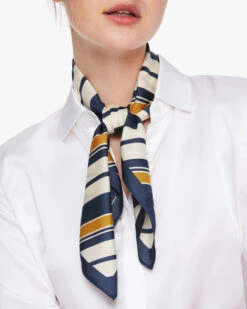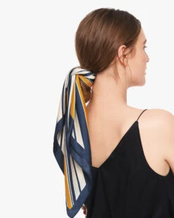 This essential scarf in chic stripes complements any outfit. Crafted from lustrous silk, it comes in a classic square shape that’s endlessly versatile. Silk helps to relieve irritation and allergies, offers you extreme comfort. This piece will add a chic pop of color to your hair, neck, or bag strap.