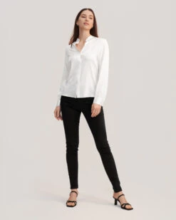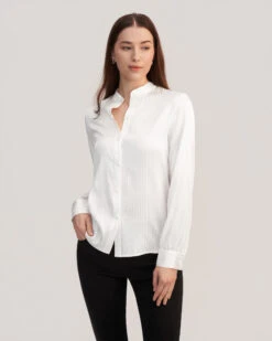A modern essential perfect for everyday wear. The Mandarin Collar Striped Silk Shirt features a luxurious pinstripe print in a relaxed silhouette that’s perfect to wear to work or casually with boyfriend jeans at the weekend. Tucked in or out, buttoned up or down, this shirt will always make you look good.