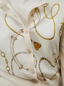 - Front – woven: 90% 14MM print stretch silk twill + 10% spandex