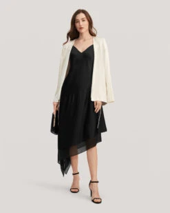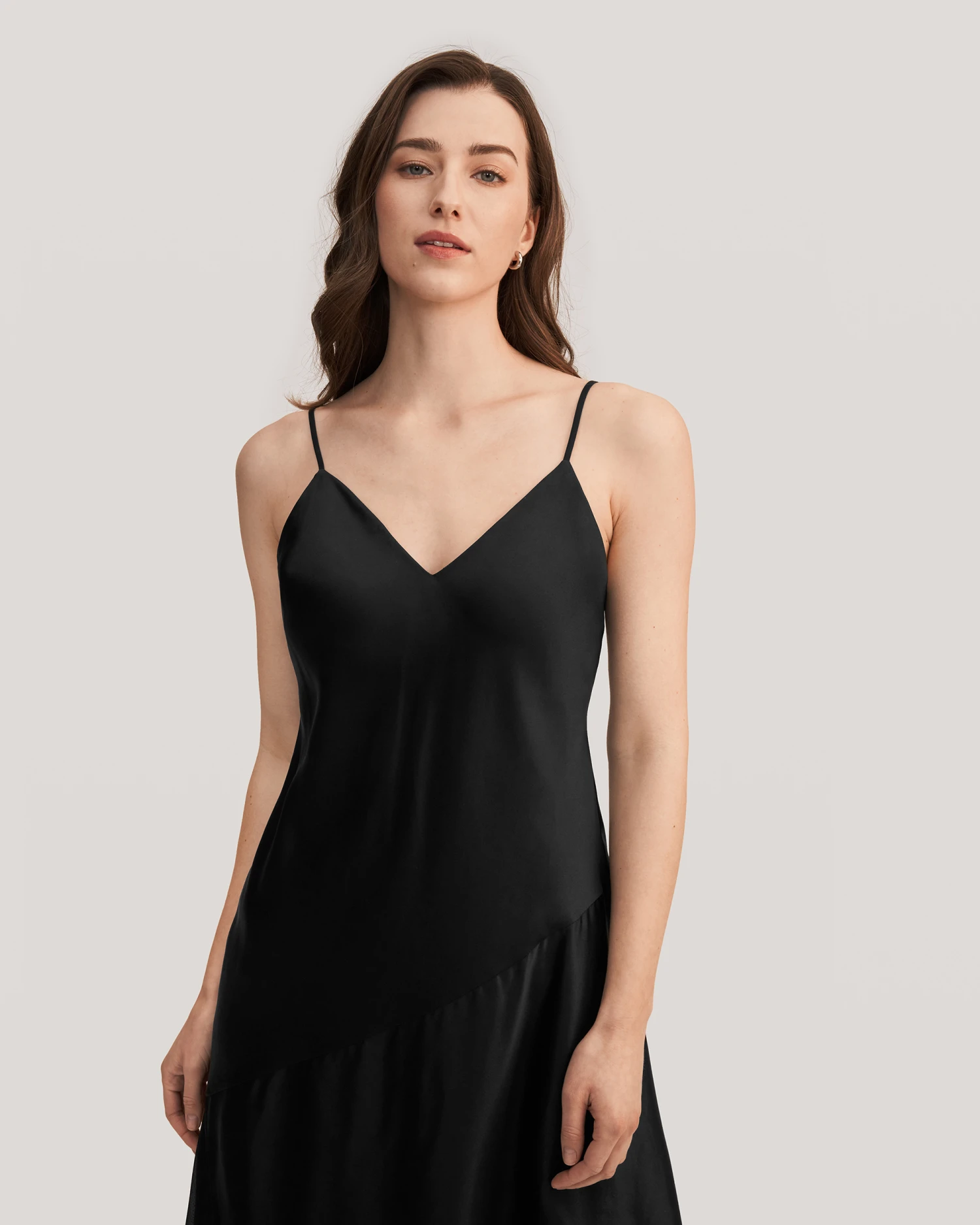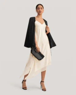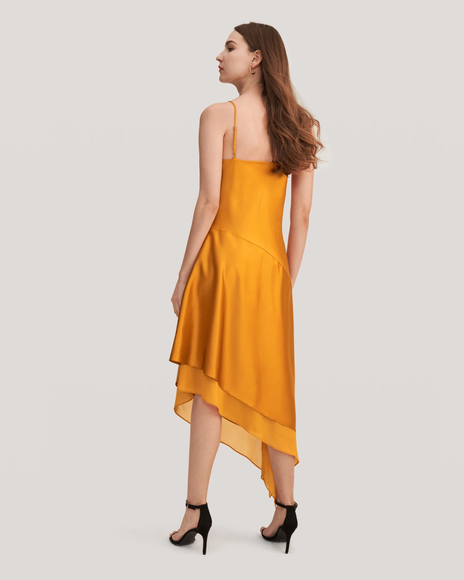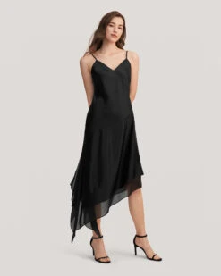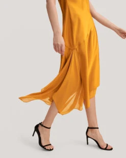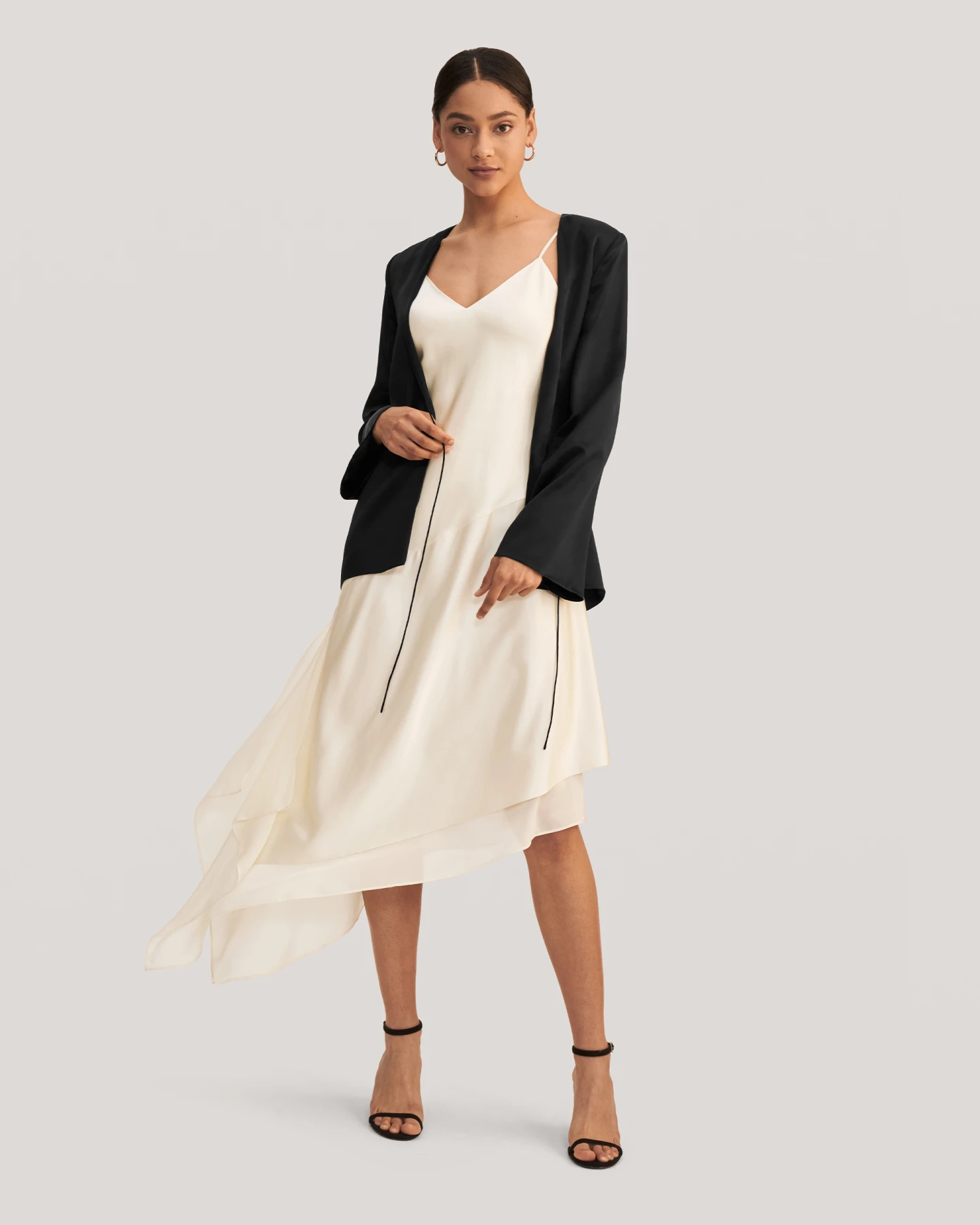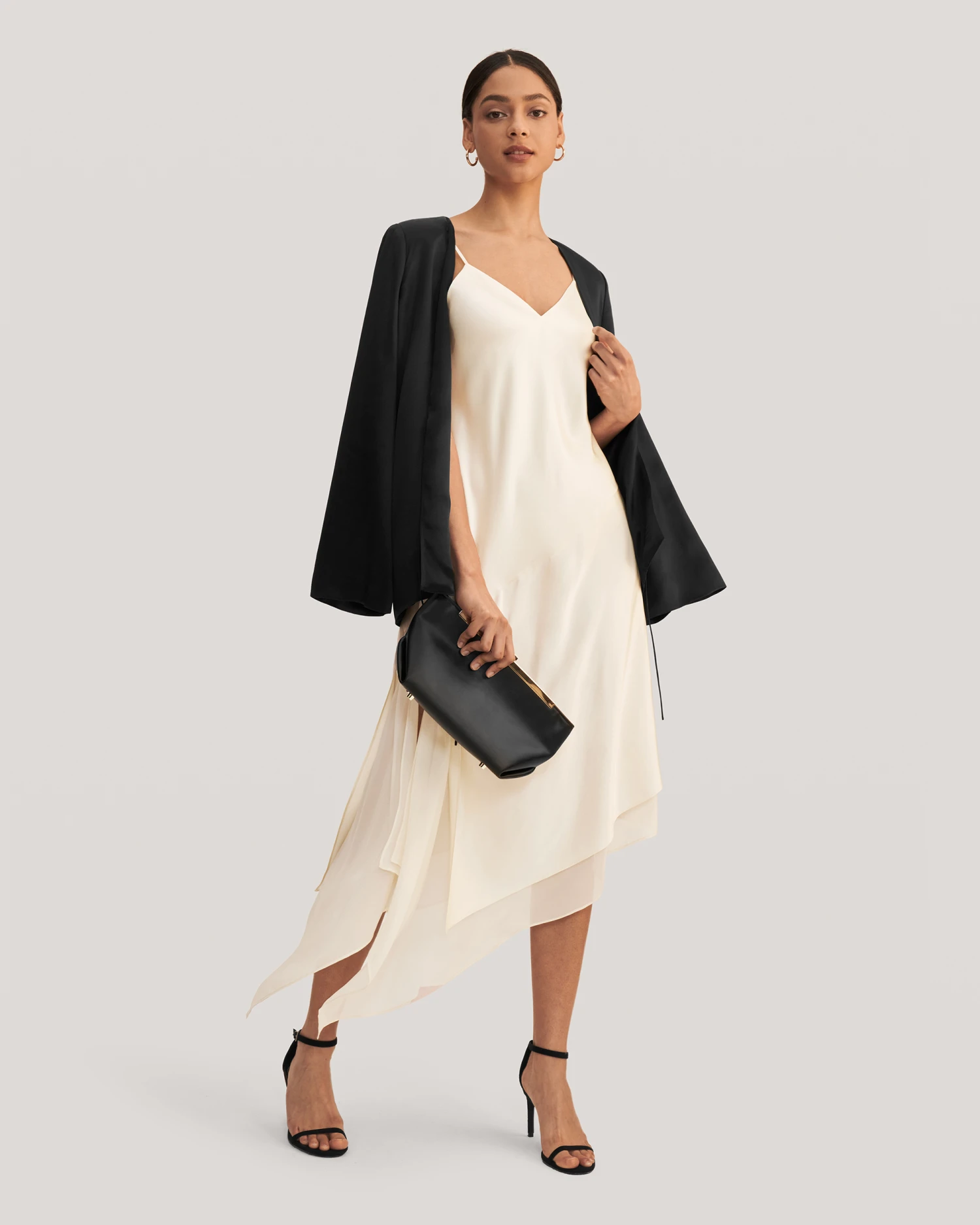 Embody the spirit of summer in our free-flowing Ocimum asymmetric dress. A bias-cut and slit with chiffon underneath adds movement and style, while the combination of silk and chiffon exudes beauty and the perfect amount of sheen.