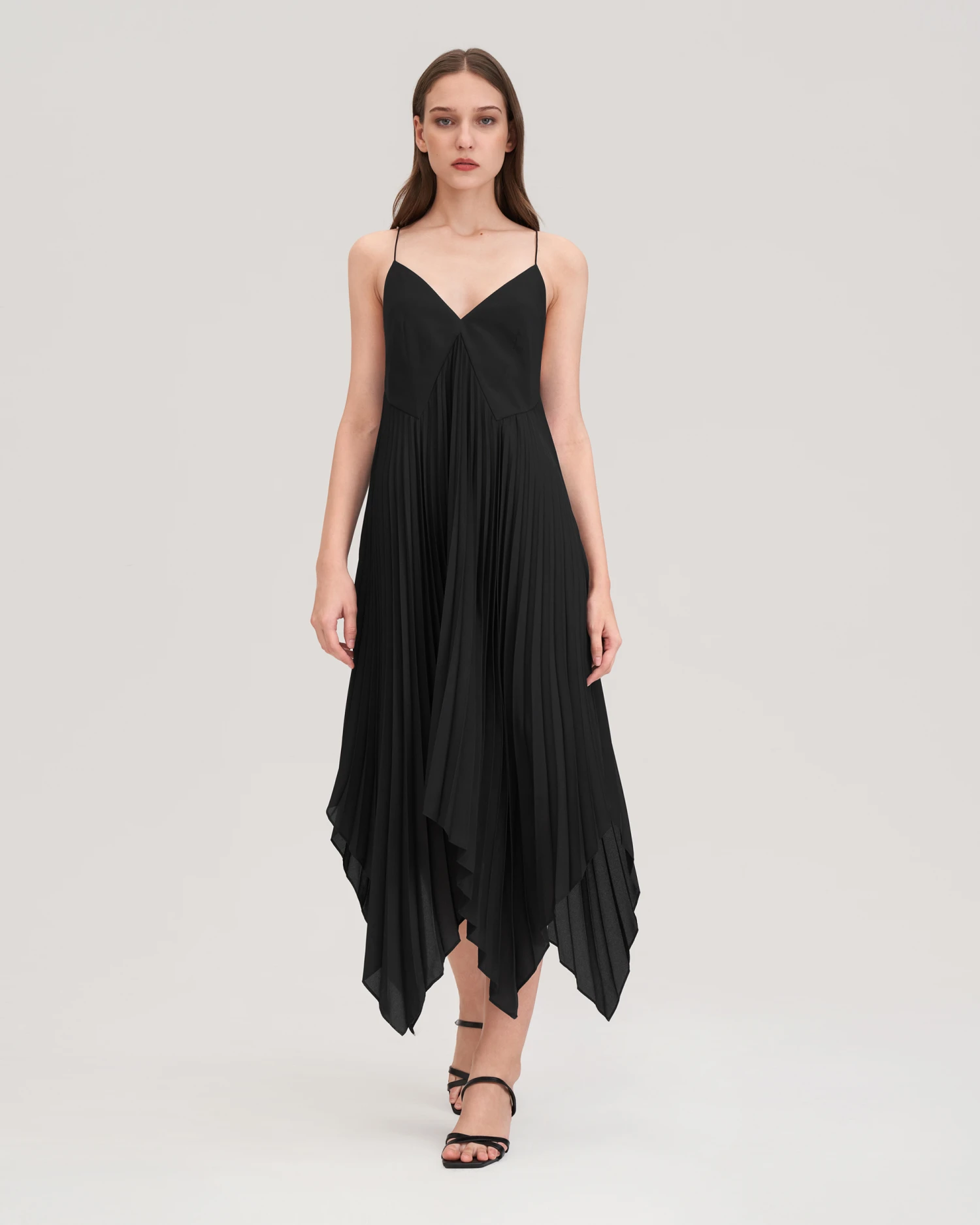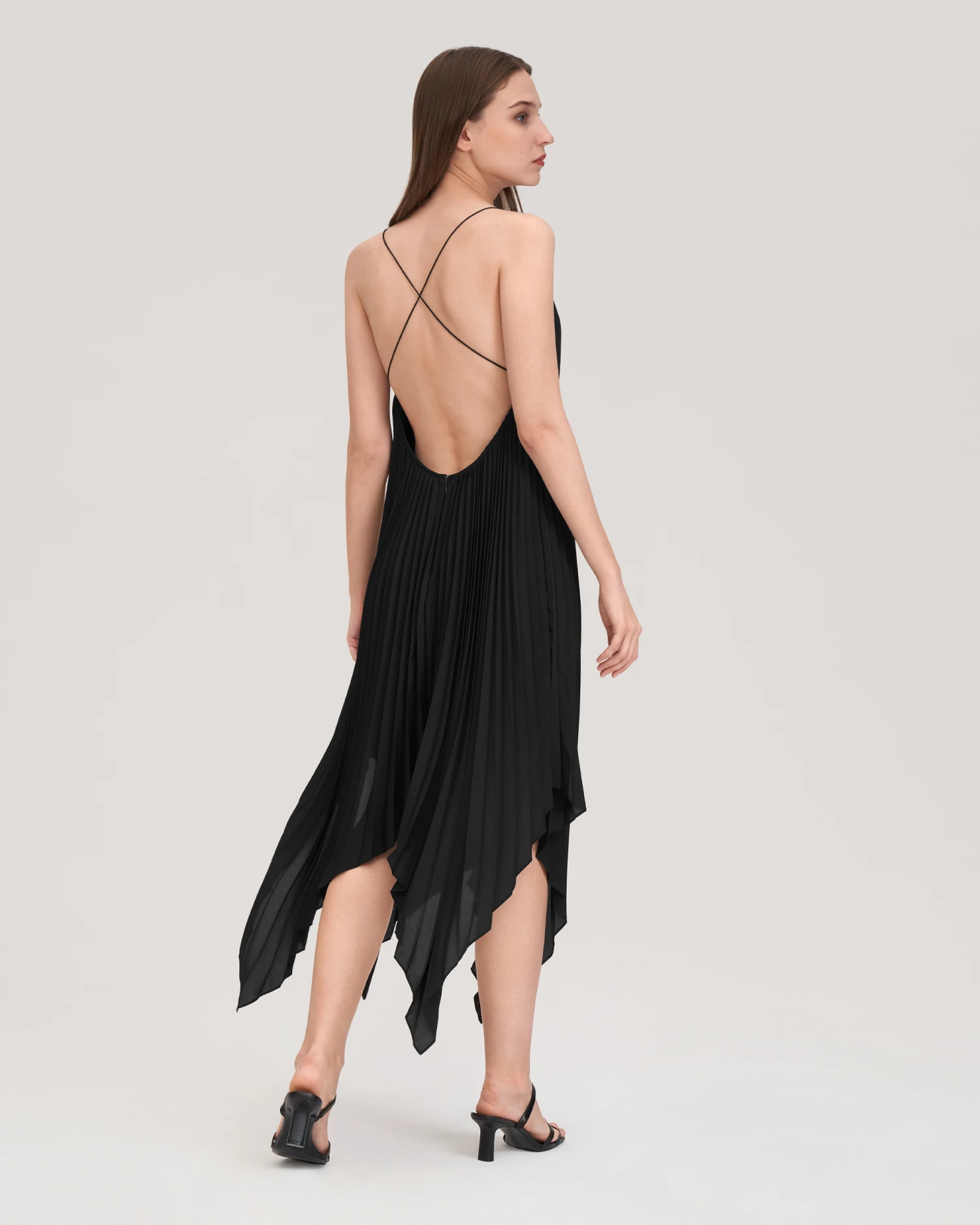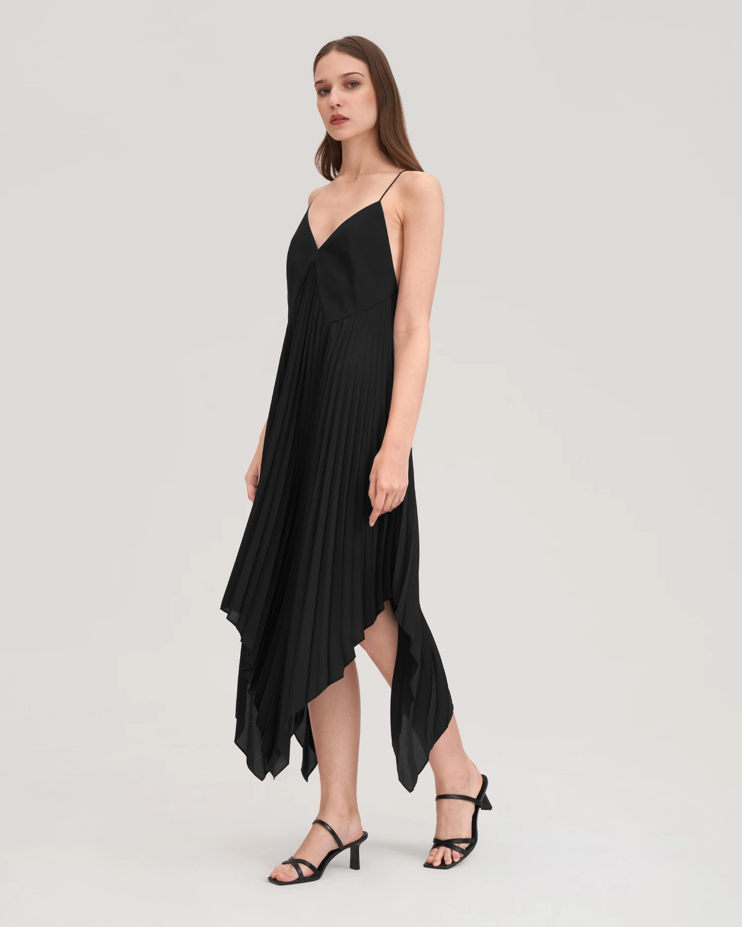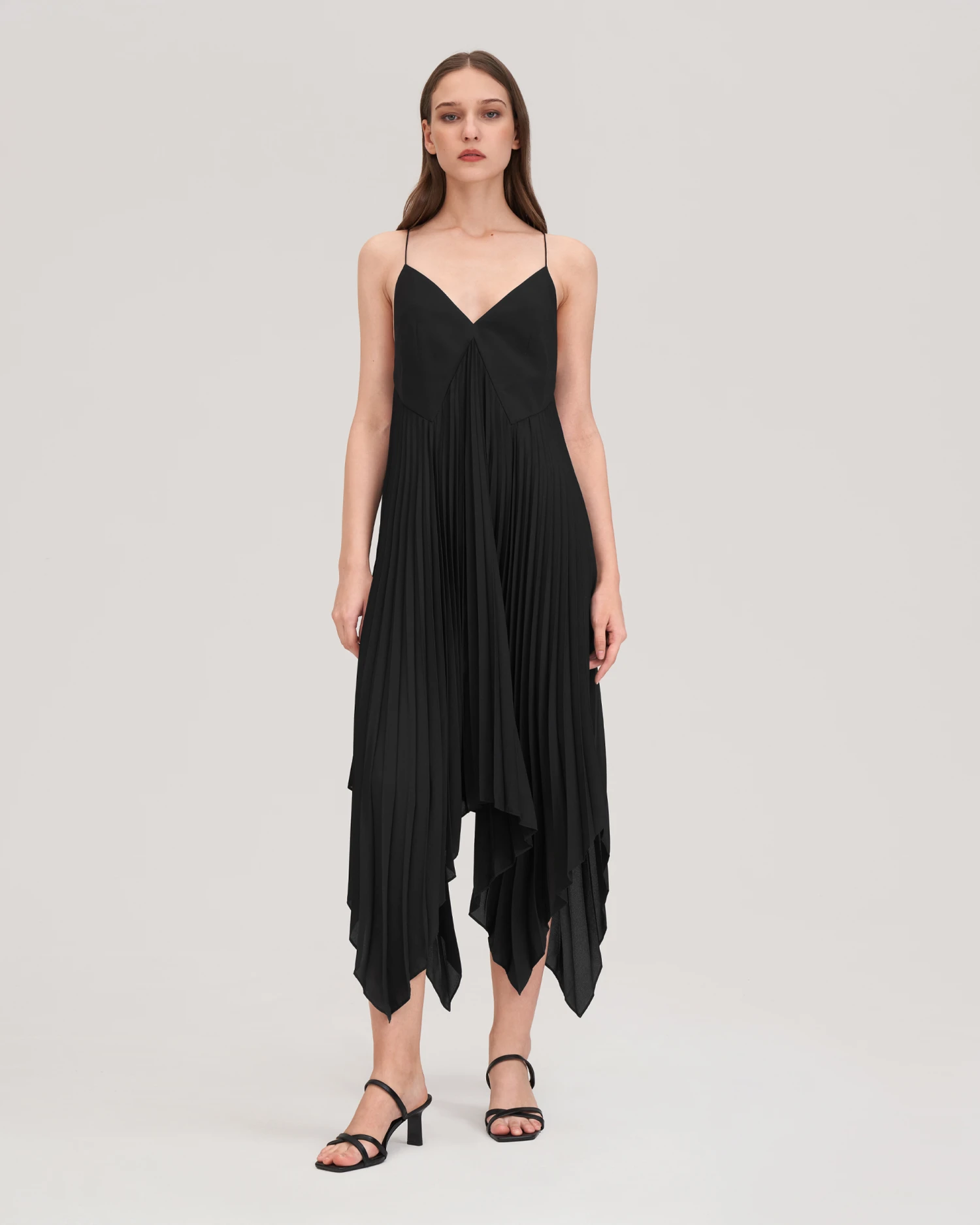 A ready-to-wear spring essential, the flawlessly constructed Daisy dress features free-flowing and feminine pleats, to take you from a spring day to date night with ease (all you need is a light jacket). Delicate spaghetti straps perfectly frame the elegant deep v-neckline and back, with eye-catching irregular hem and sunray pleats that retain shape and detail, even after several washes. Lined in 100% crepe-de-chine silk, this dress feels as good as it looks.
