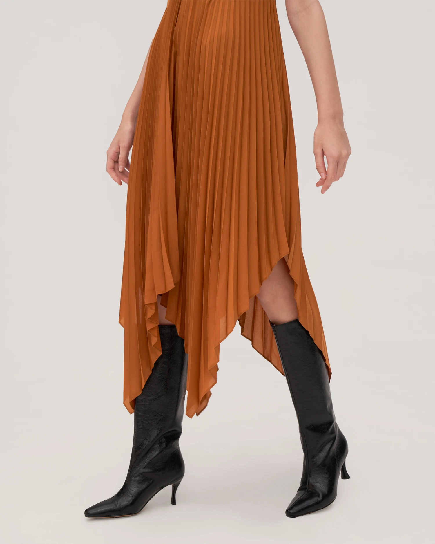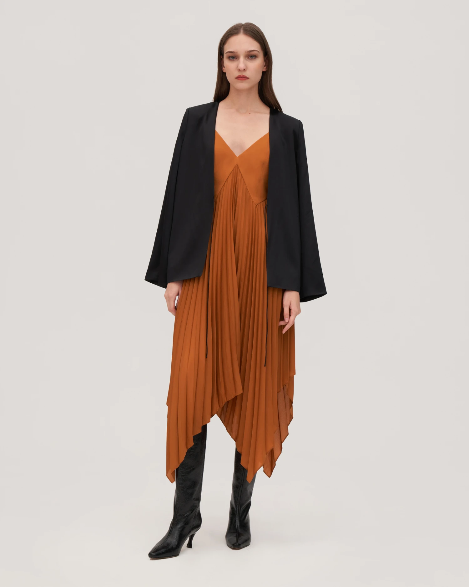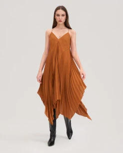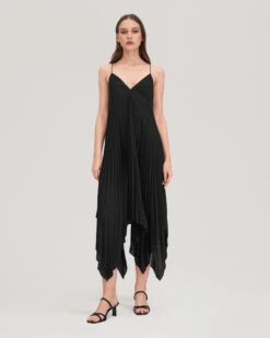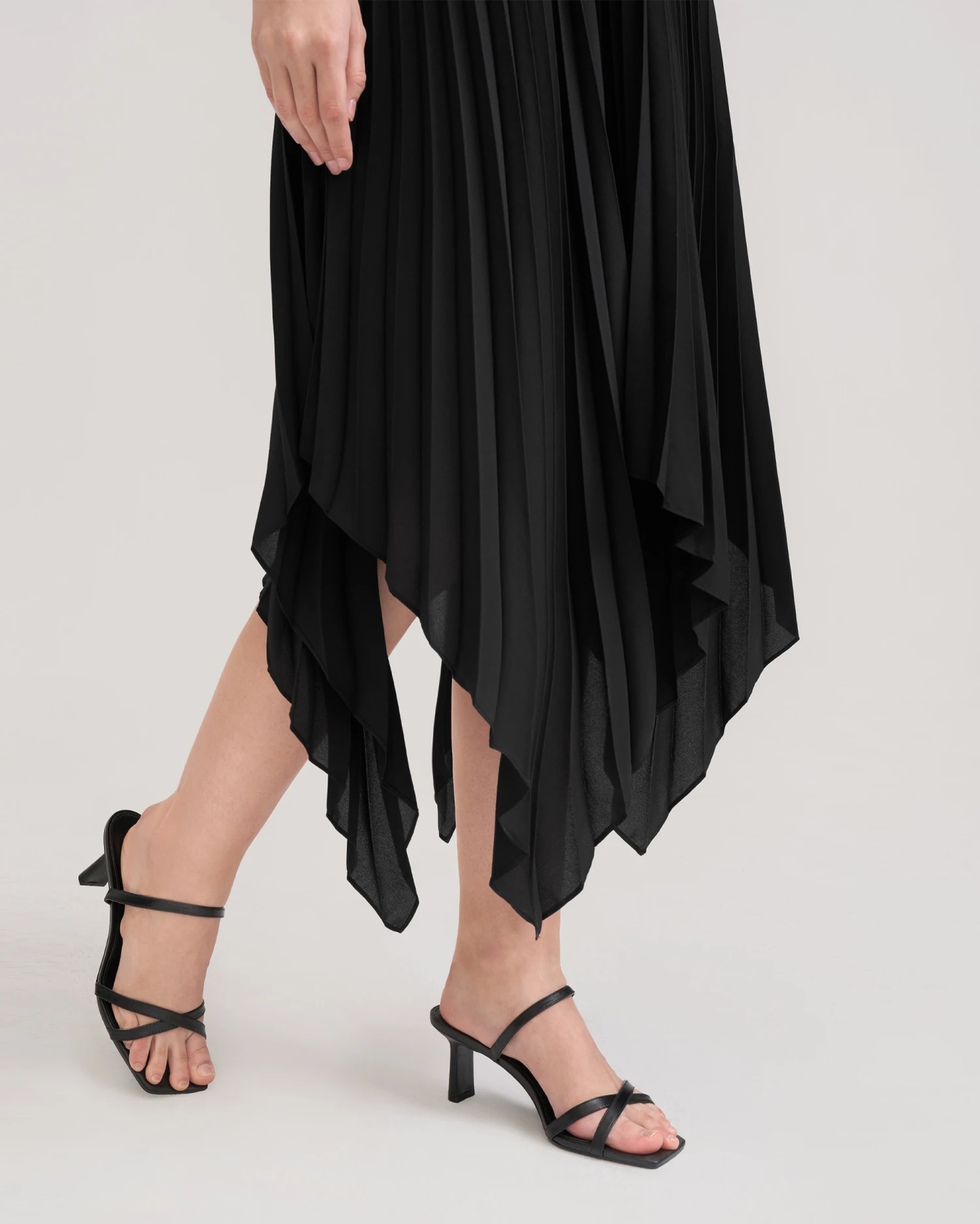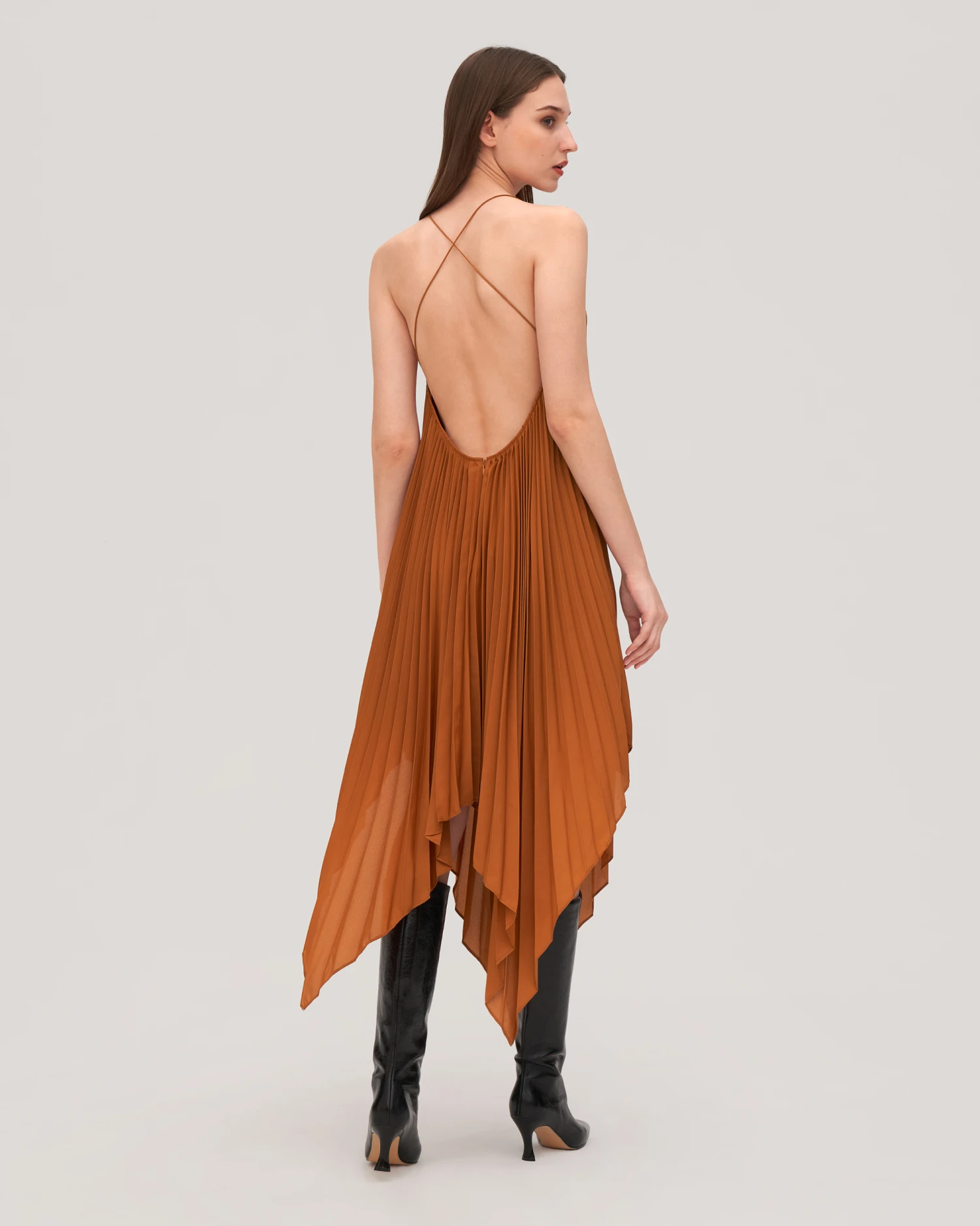 A ready-to-wear spring essential, the flawlessly constructed Daisy dress features free-flowing and feminine pleats, to take you from a spring day to date night with ease (all you need is a light jacket). Delicate spaghetti straps perfectly frame the elegant deep v-neckline and back, with eye-catching irregular hem and sunray pleats that retain shape and detail, even after several washes. Lined in 100% crepe-de-chine silk, this dress feels as good as it looks.