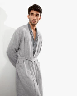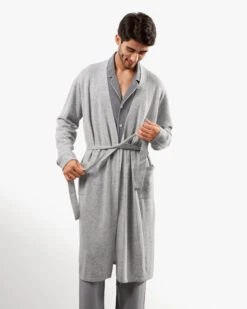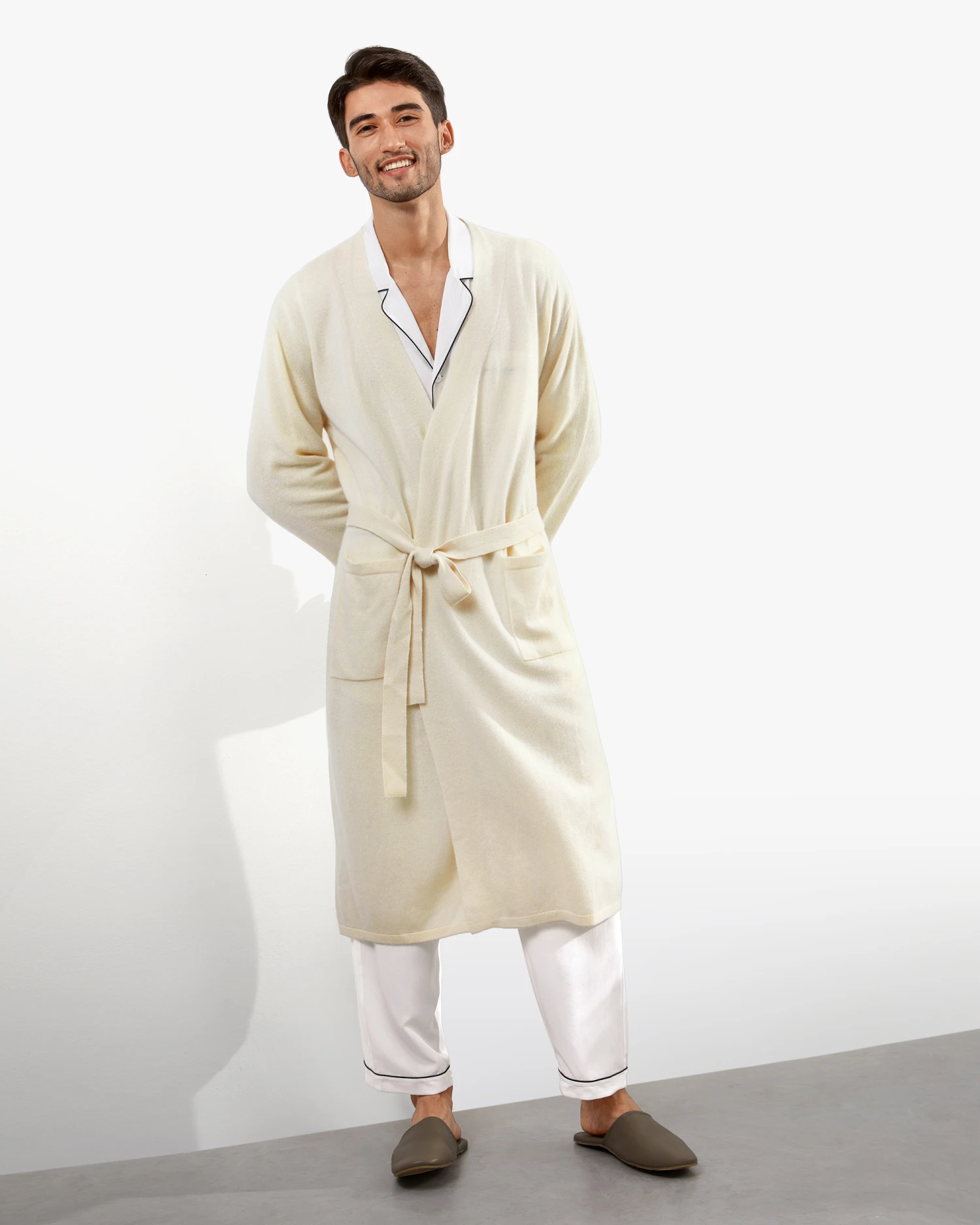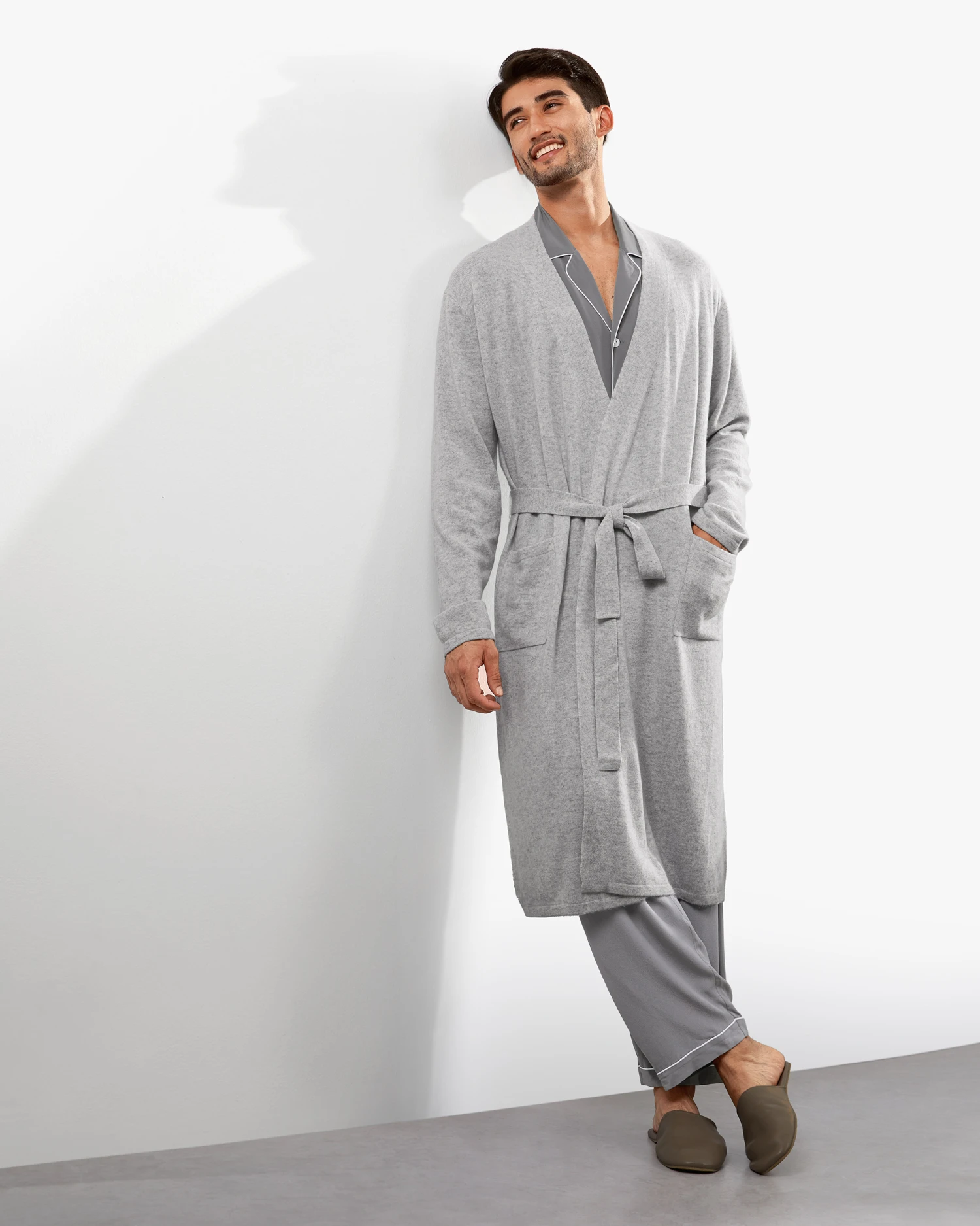 This cashmere robe has been specially woven to give a flat, smooth surface and even luster. It’s soft, warm to the touch, and very comfortable to wear. The minimalist design of this classic robe means that properly styled; it works as nightwear and as a fashionable cardigan.