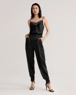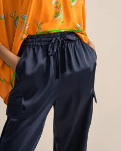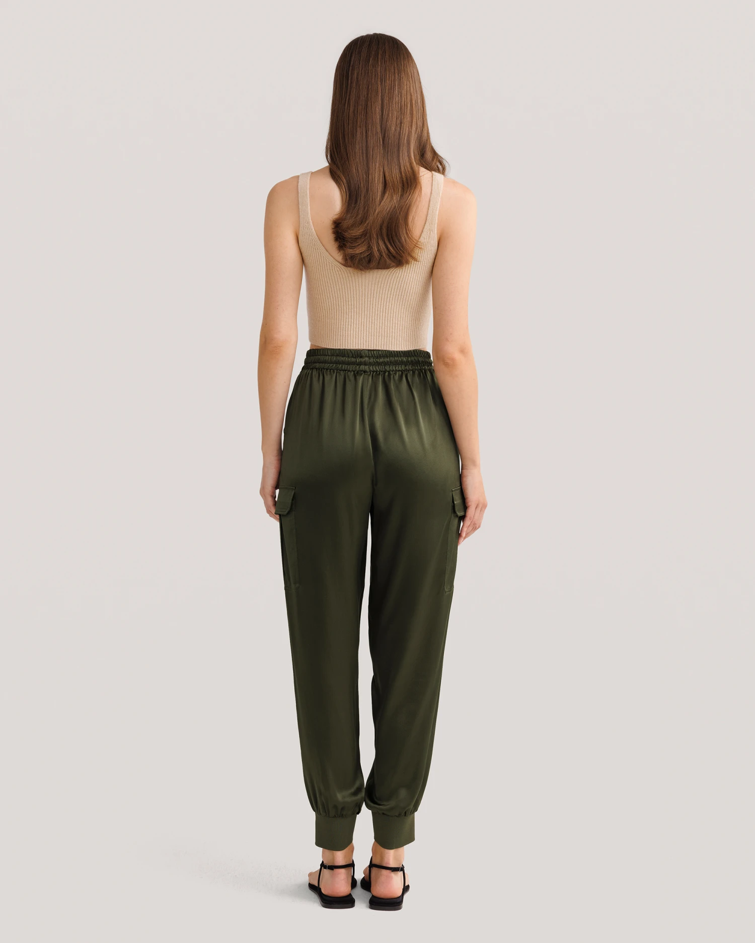 Comfort-meets-style in the Safari Military Silk Pants, a must-have fall update to our popular crepe de chine silk pants in a similar style. These refreshed pants keep the same classic fit you know and love, updated with stretchable trouser legs and waistband for a customized fit. Crafted from charmeuse silk, the safari-inspired design is effortless as laid-back casual wear or smart workleisure.