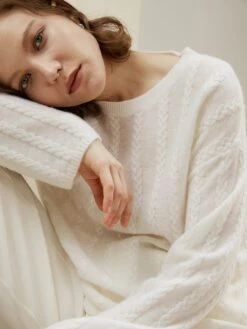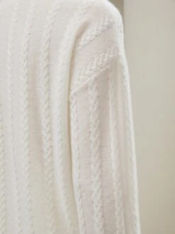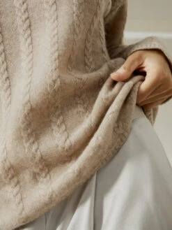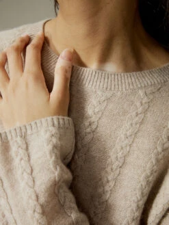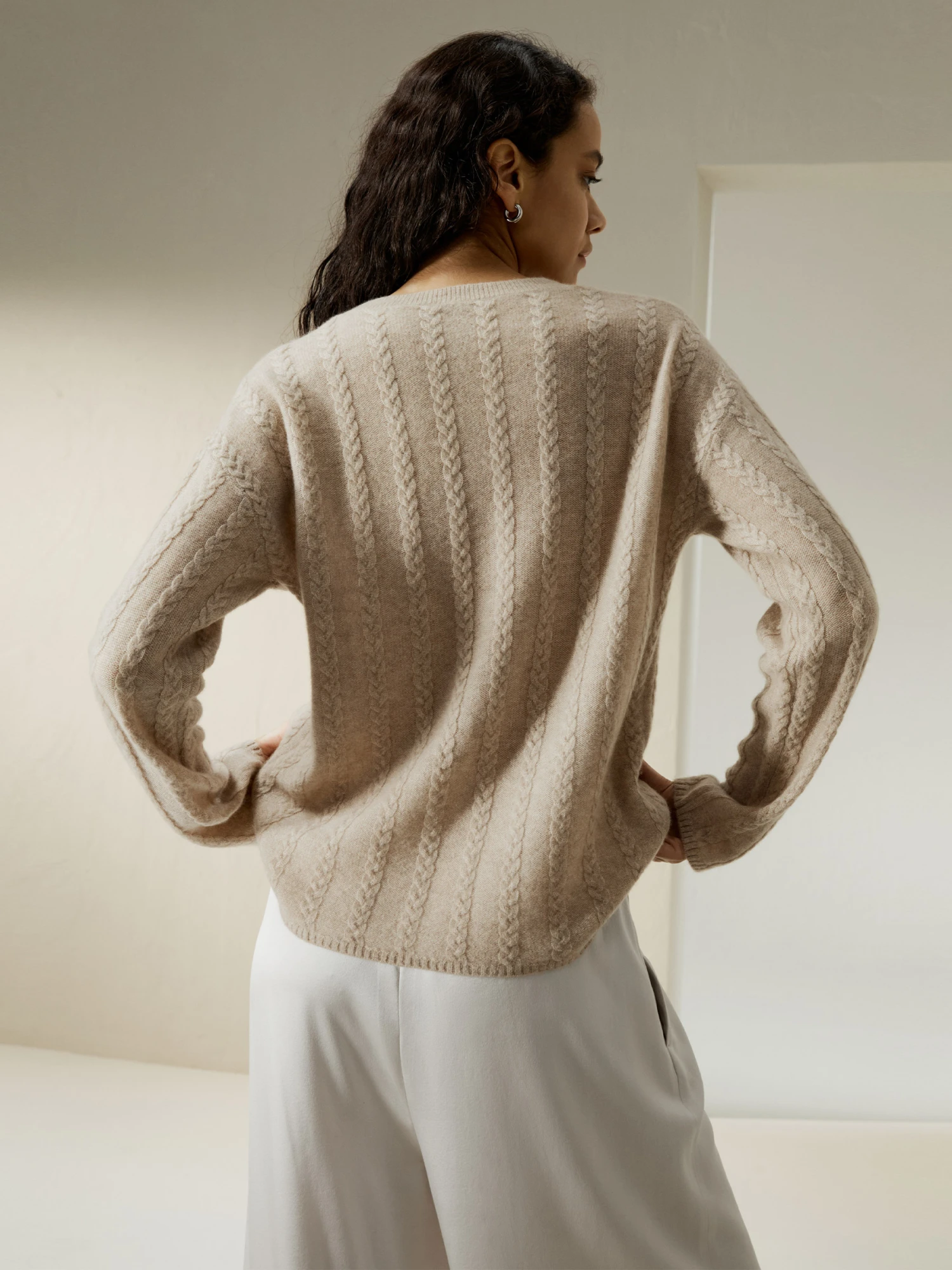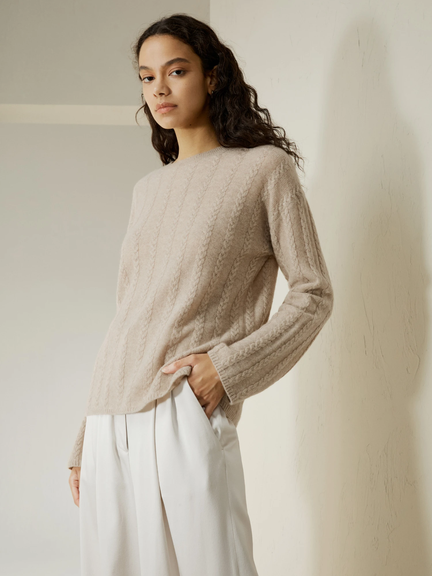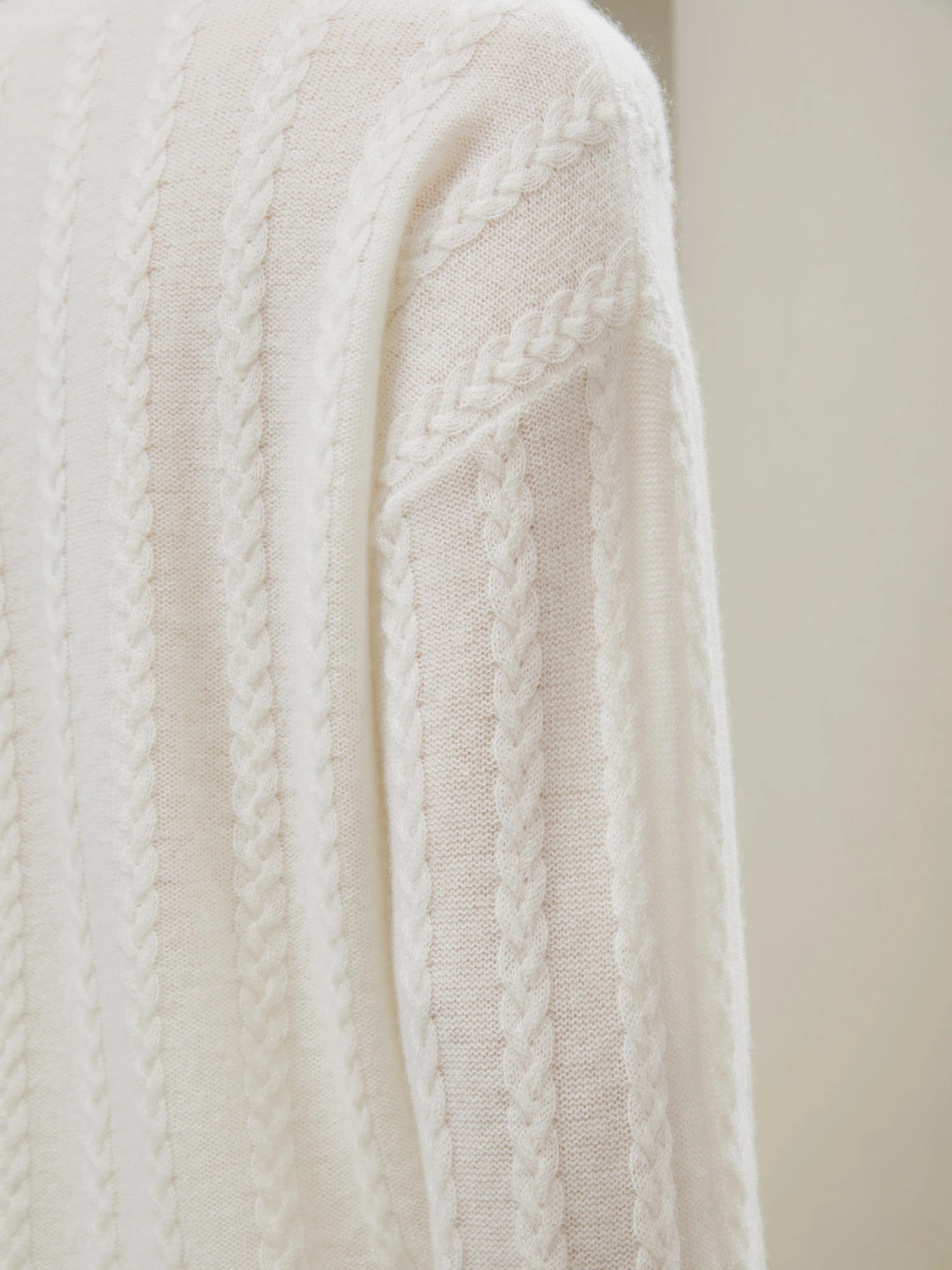 A lightweight semi-sheer crew neck pullover that makes it an easy and versatile piece for all seasons. This classic sweater with twisted cable rib is given an update with 100% baby cashmere that’s softer and warmer. The trendy drop shoulder and relaxed fit make it an ideal piece for most.