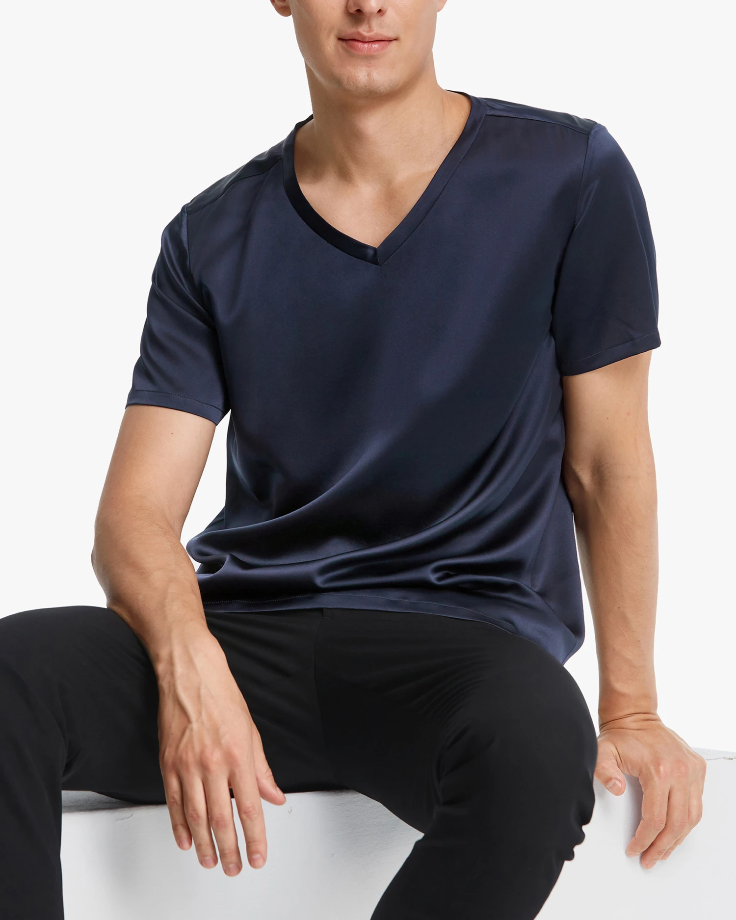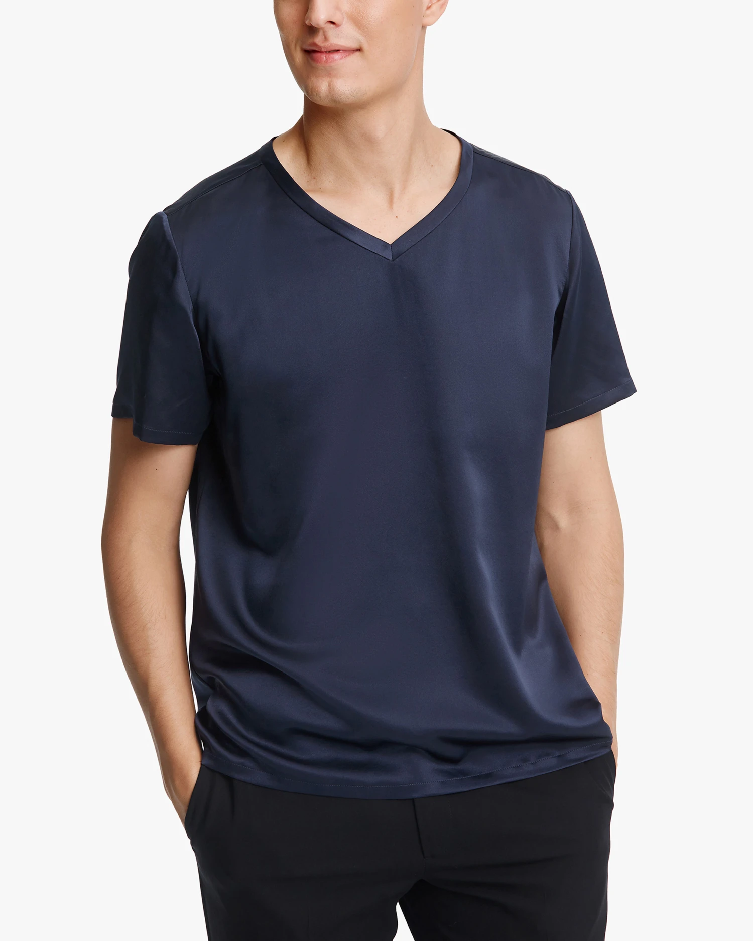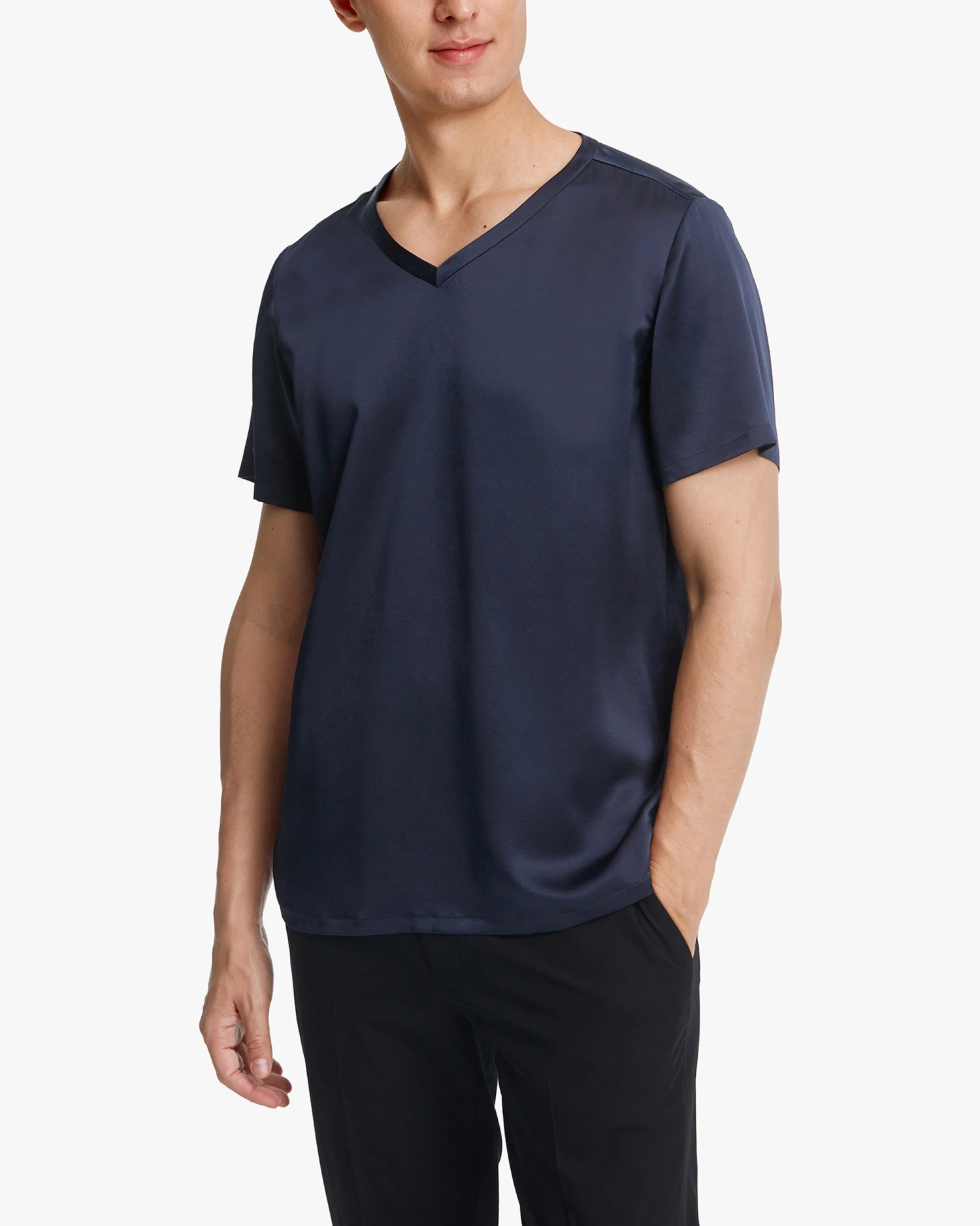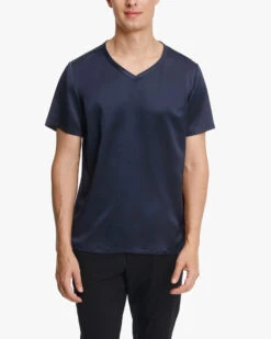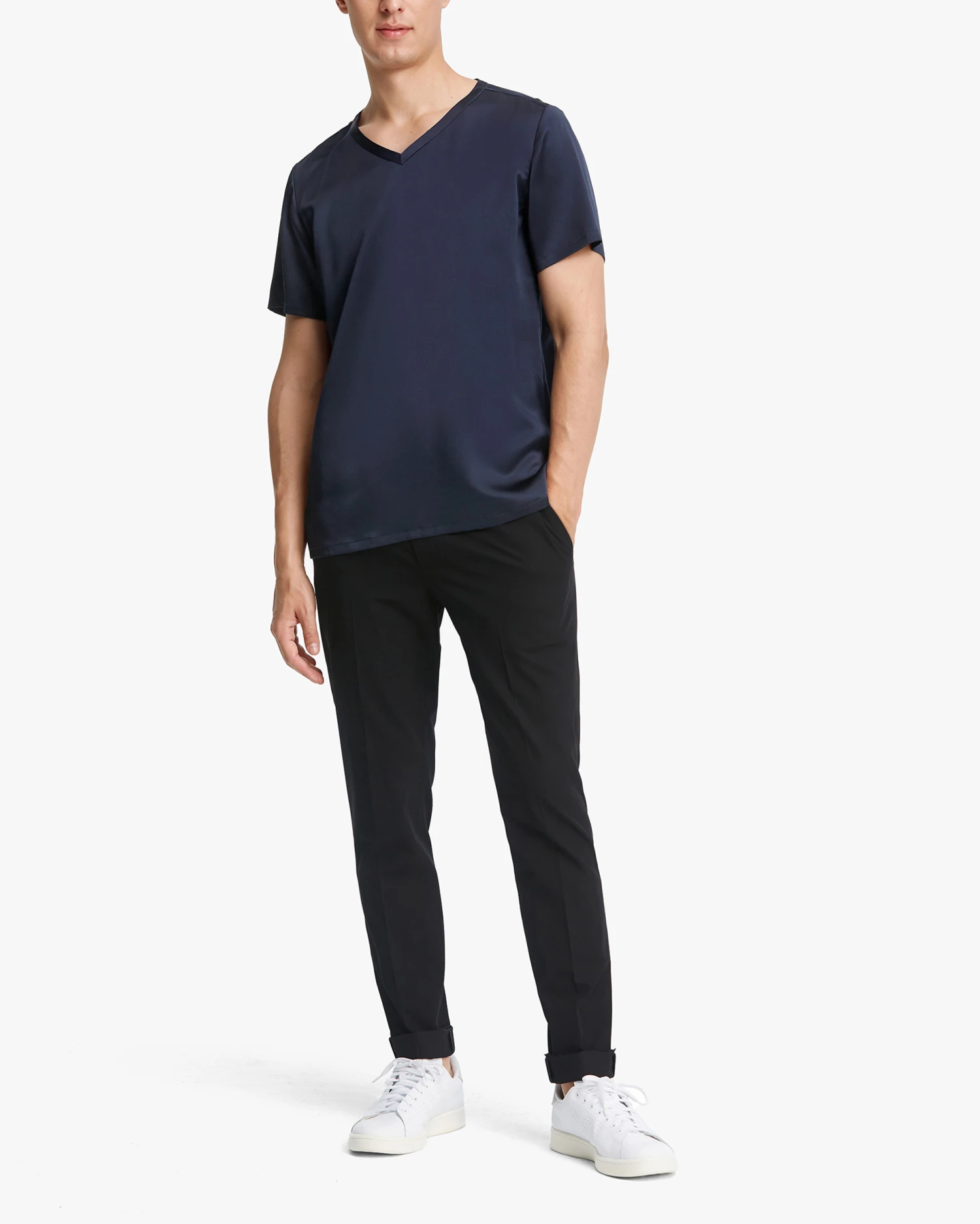 This easy-fitting tee is cut from luxurious silk fabric, which feels super soft against the skin, and ensures optimal breathability and comfort. Featuring V-neckline and short sleeves, this t-shirt is an essential wardrobe staple for every gentleman. Pair it with jeans and sneakers for a casual look.
