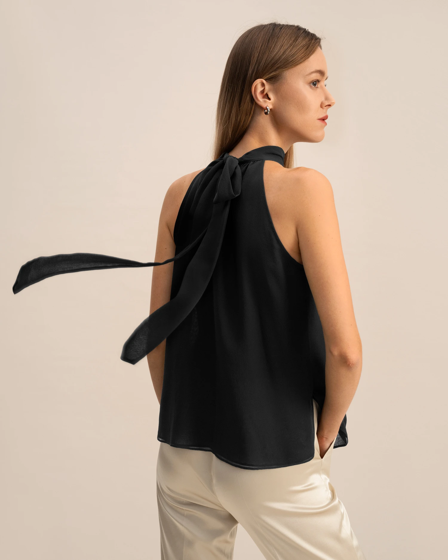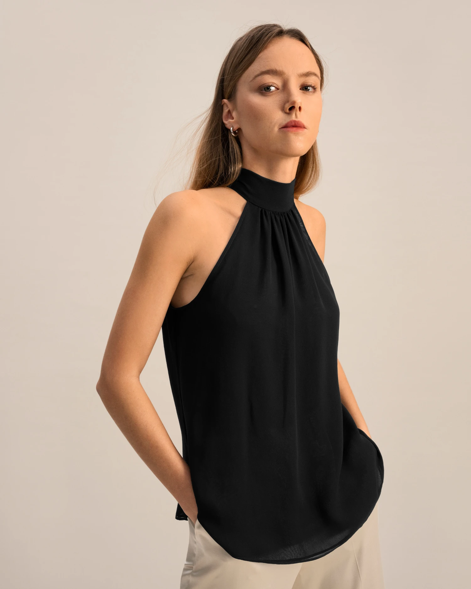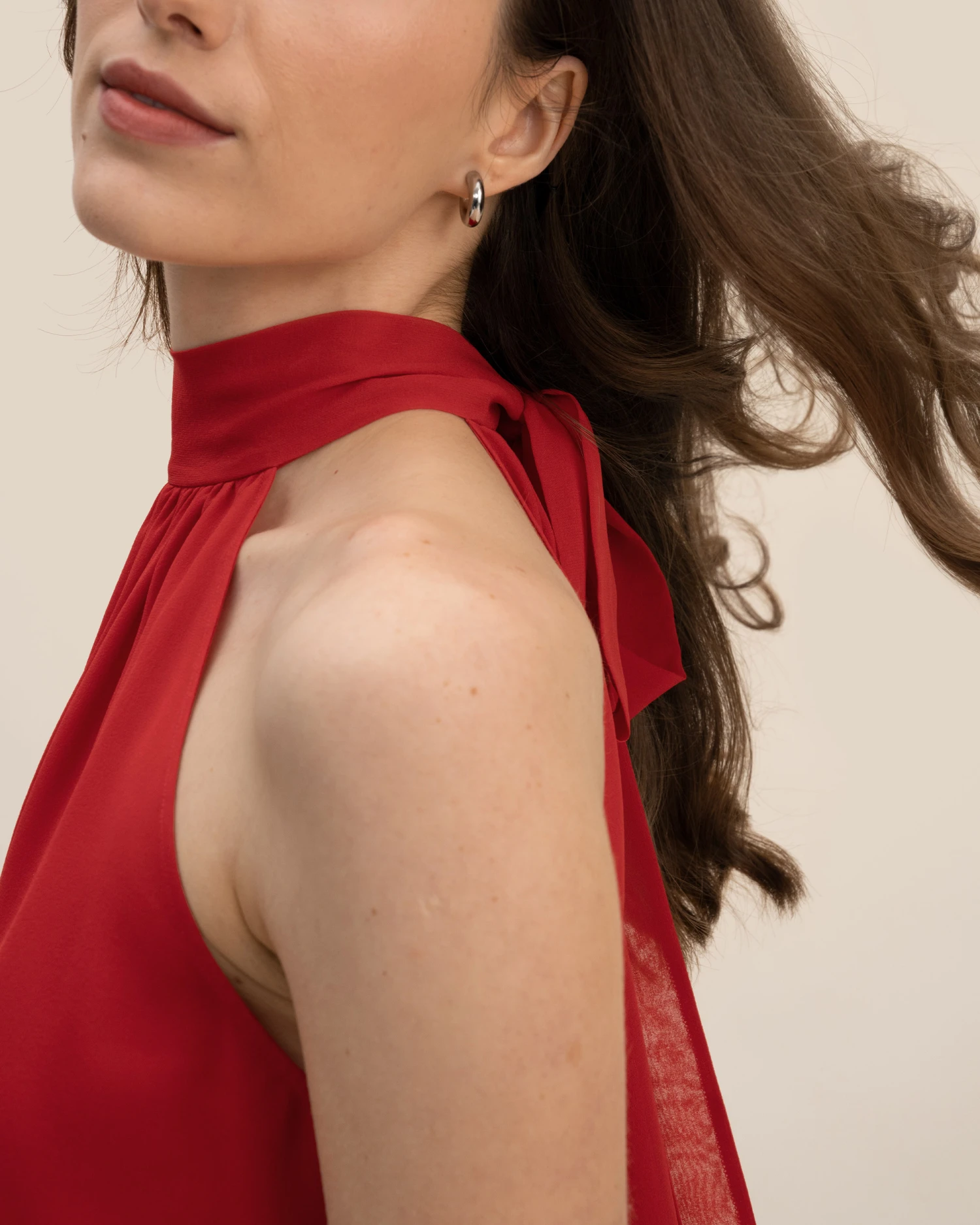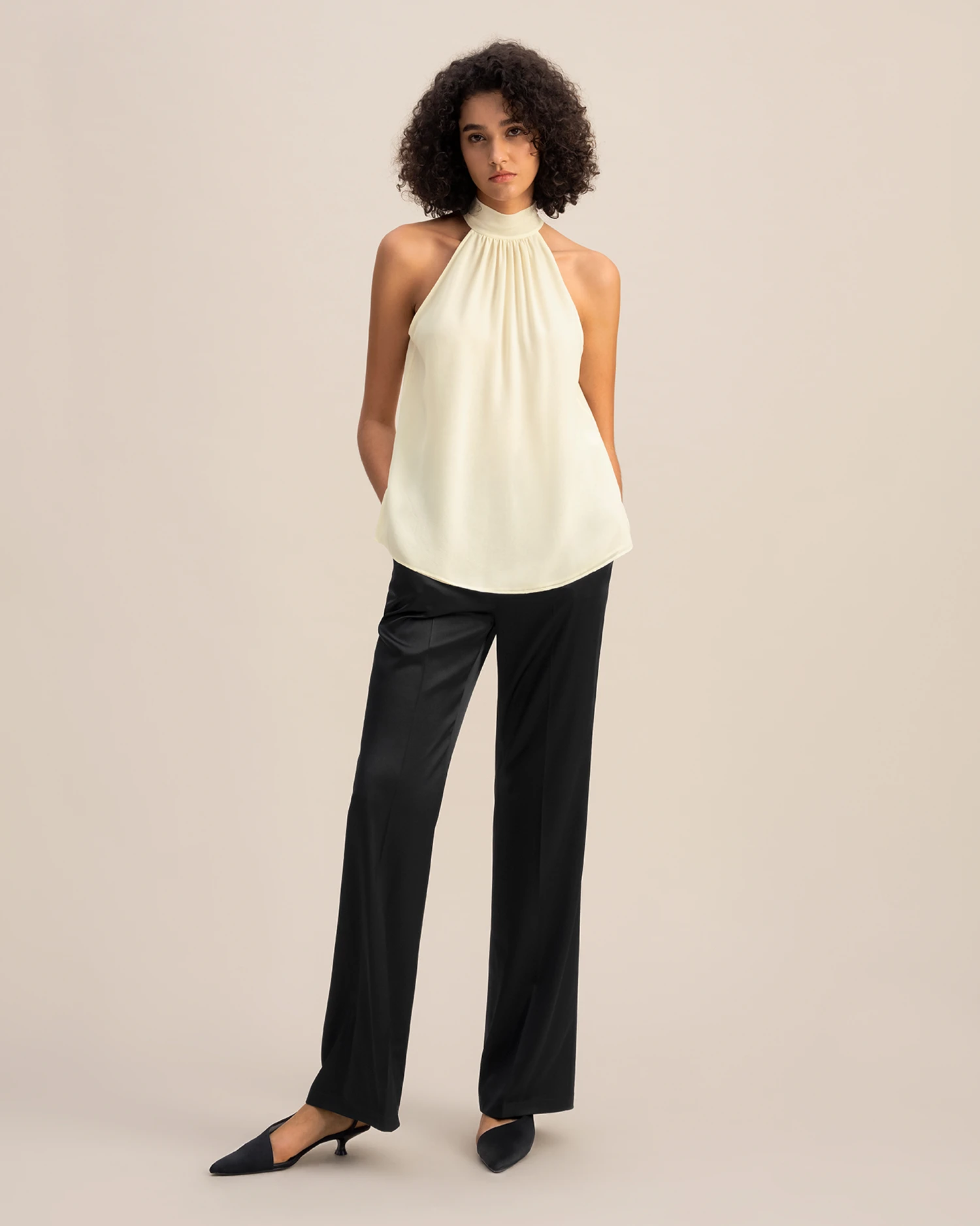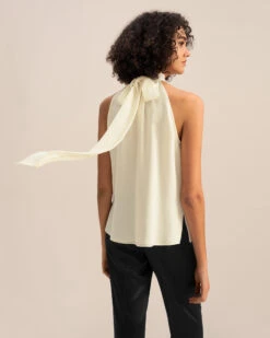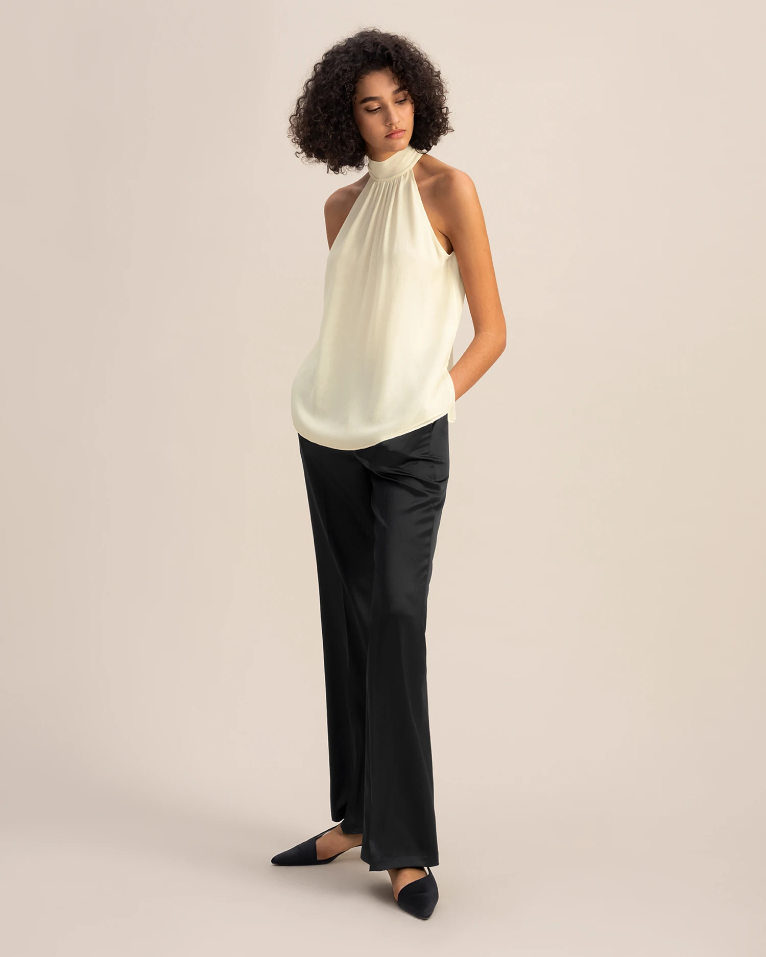 Silk is the perfect material for this classic translucent and smooth halter top, a combination of beauty and grace.