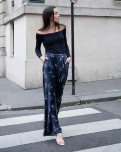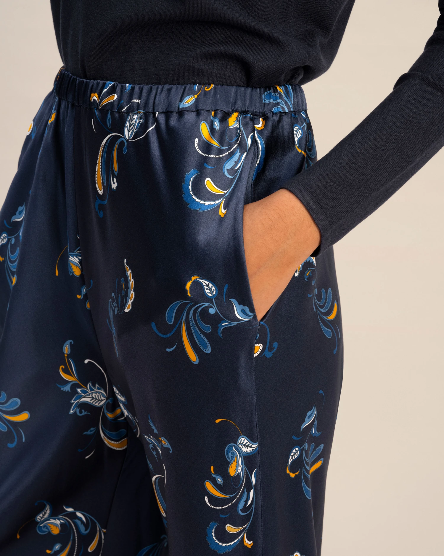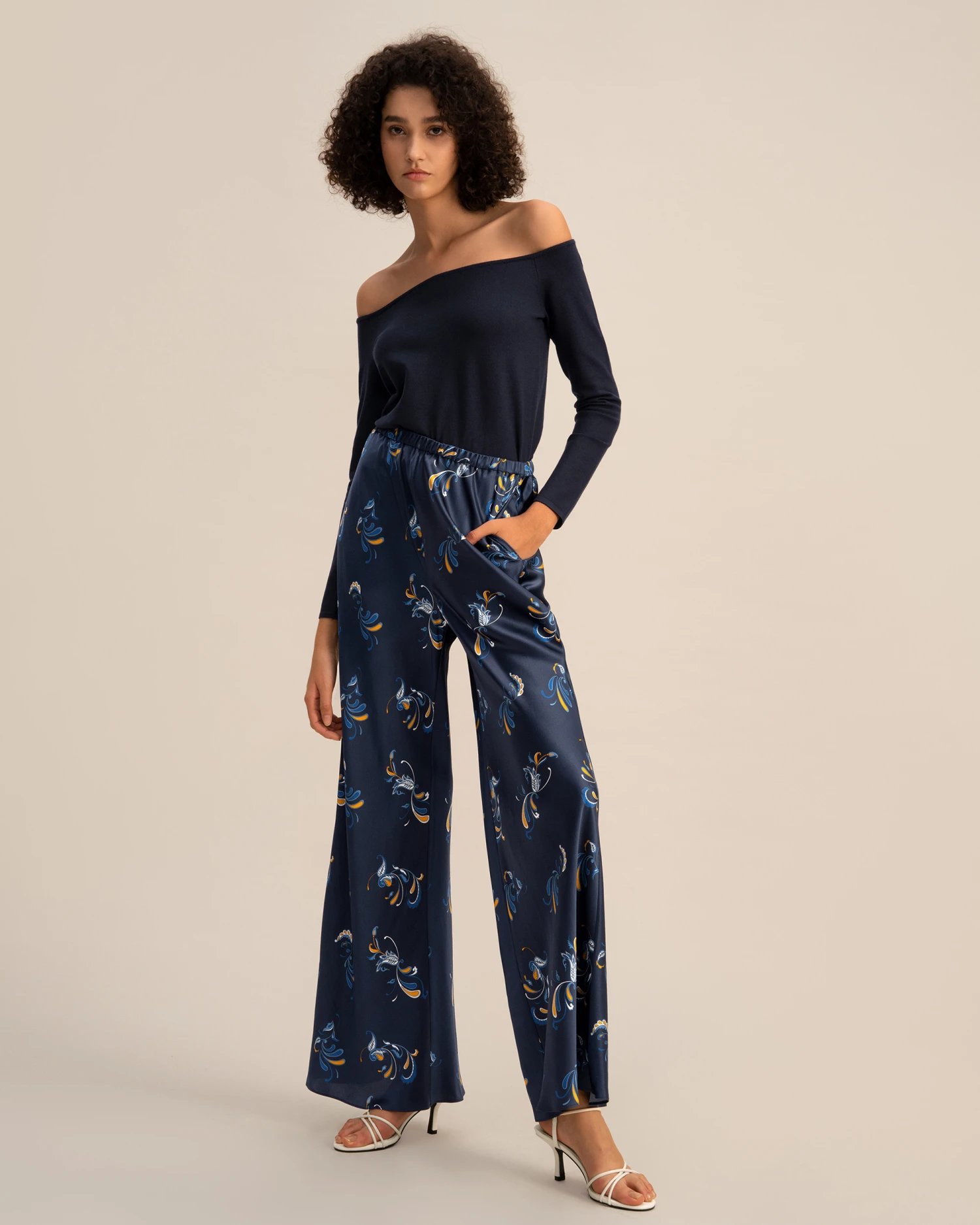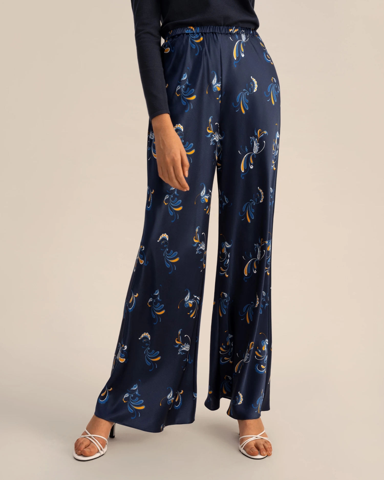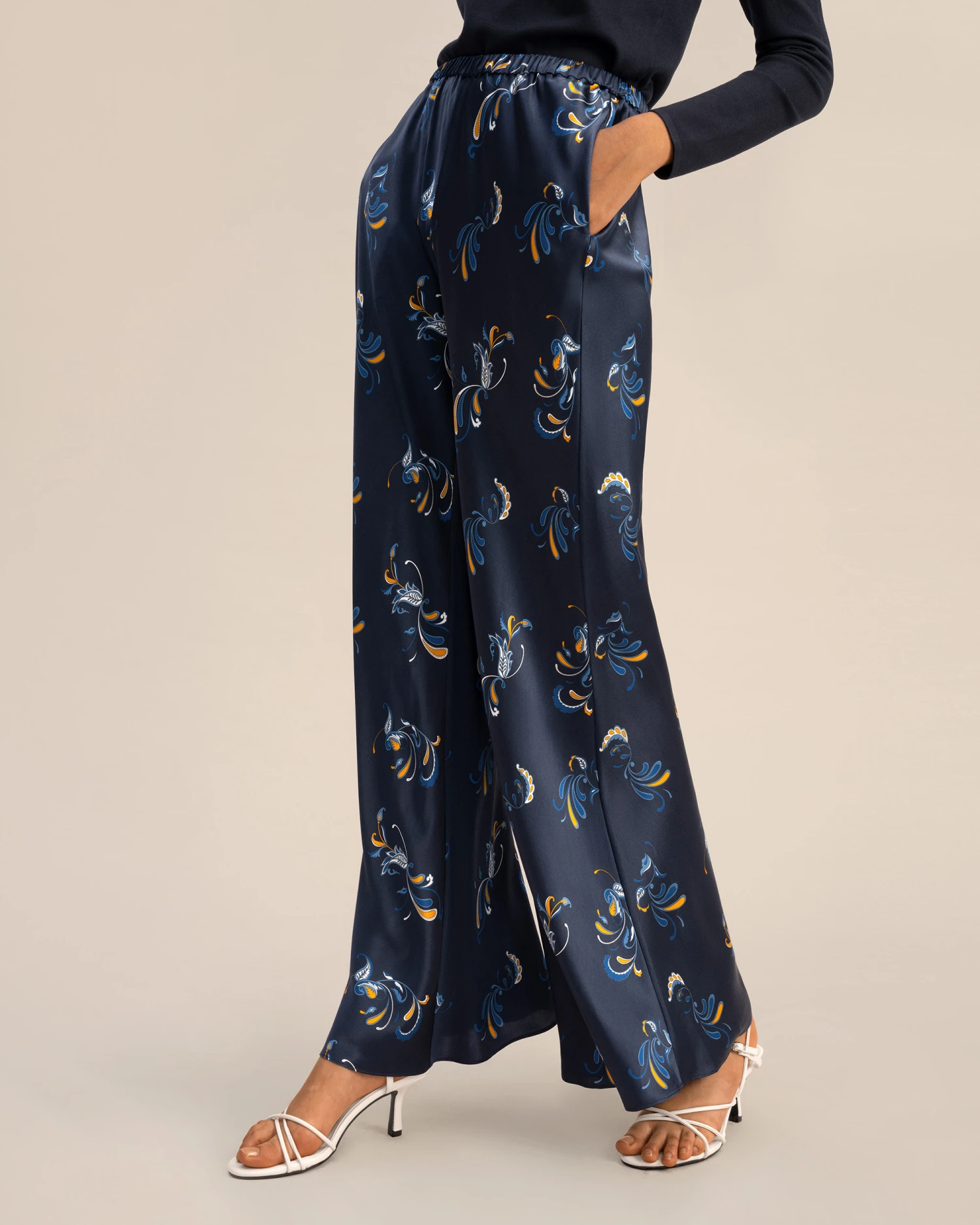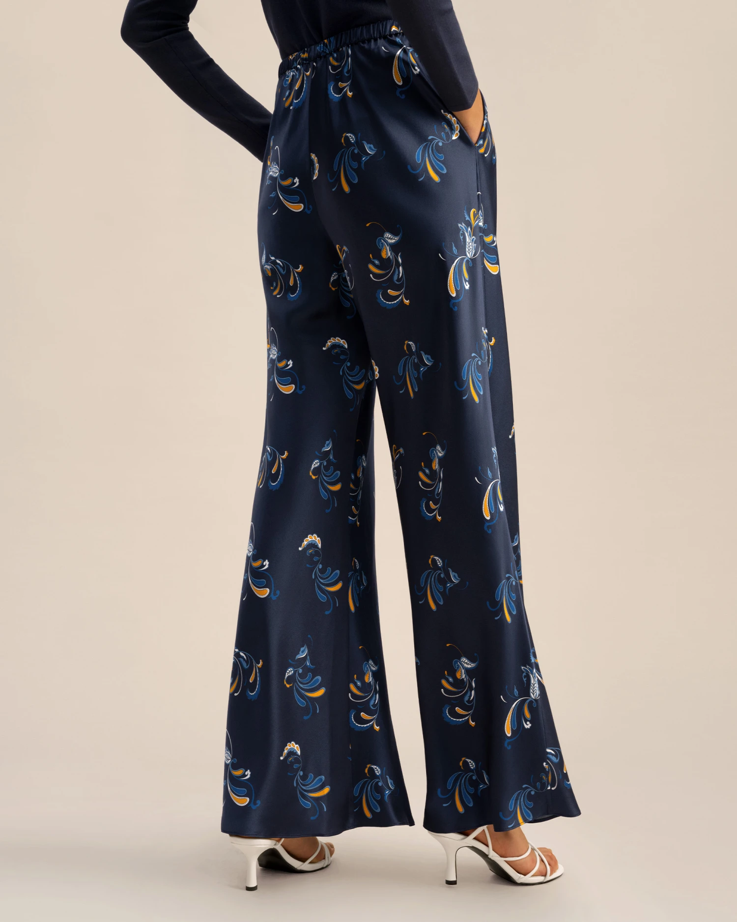 Fully digitally printed with classic paisley flowers, these bias-cut pants are the perfect complement to any basic piece. The wide-leg design and silk fabric are lighter and more comfortable, and swing more lightly when walking. It is the first choice for spring and summer casual wear.