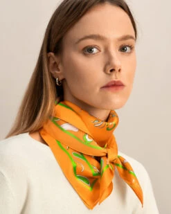 Bring Spring with you anywhere with our Spring Waltz scarf. The patterns and color of this scarf represents green sprouts coming out of mother earth and dancing on dirty-orange land.