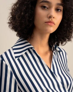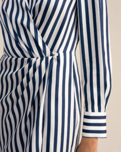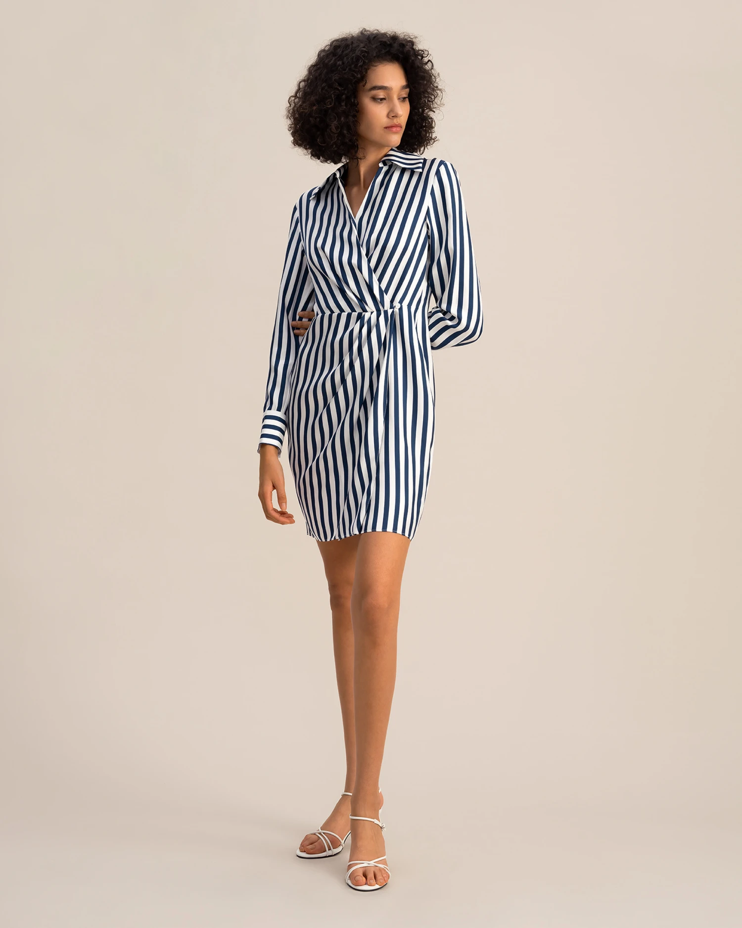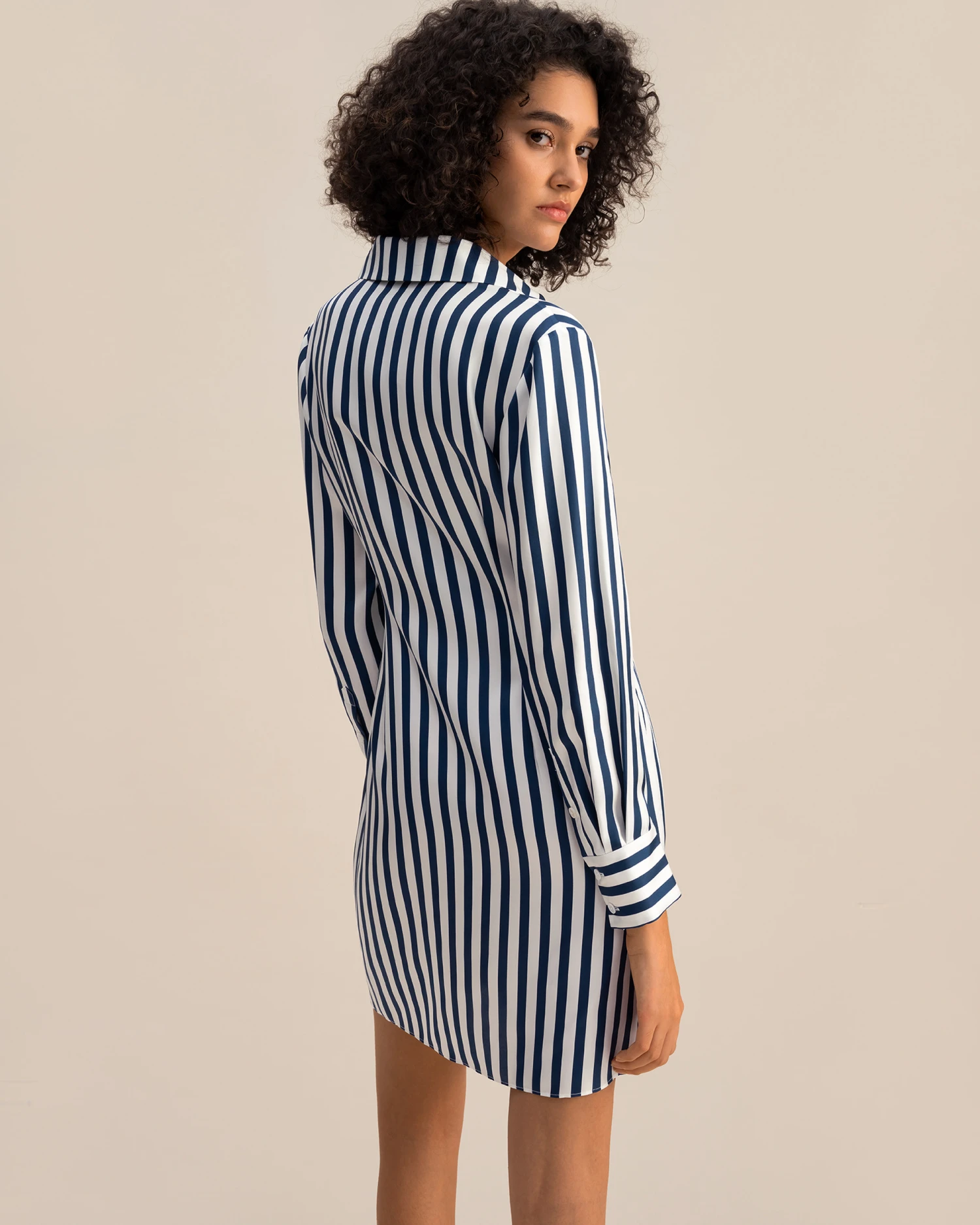Vertical strips emphasizes relaxtion, while shirt-dress is an evolution to the classic shirt and dress combination. This dress makes you look great whether you slip on a pair of sneakers for a casual look or wear heels for a more feminine confident look.