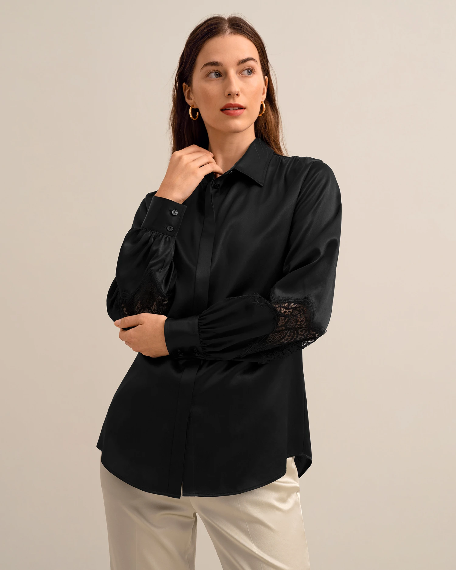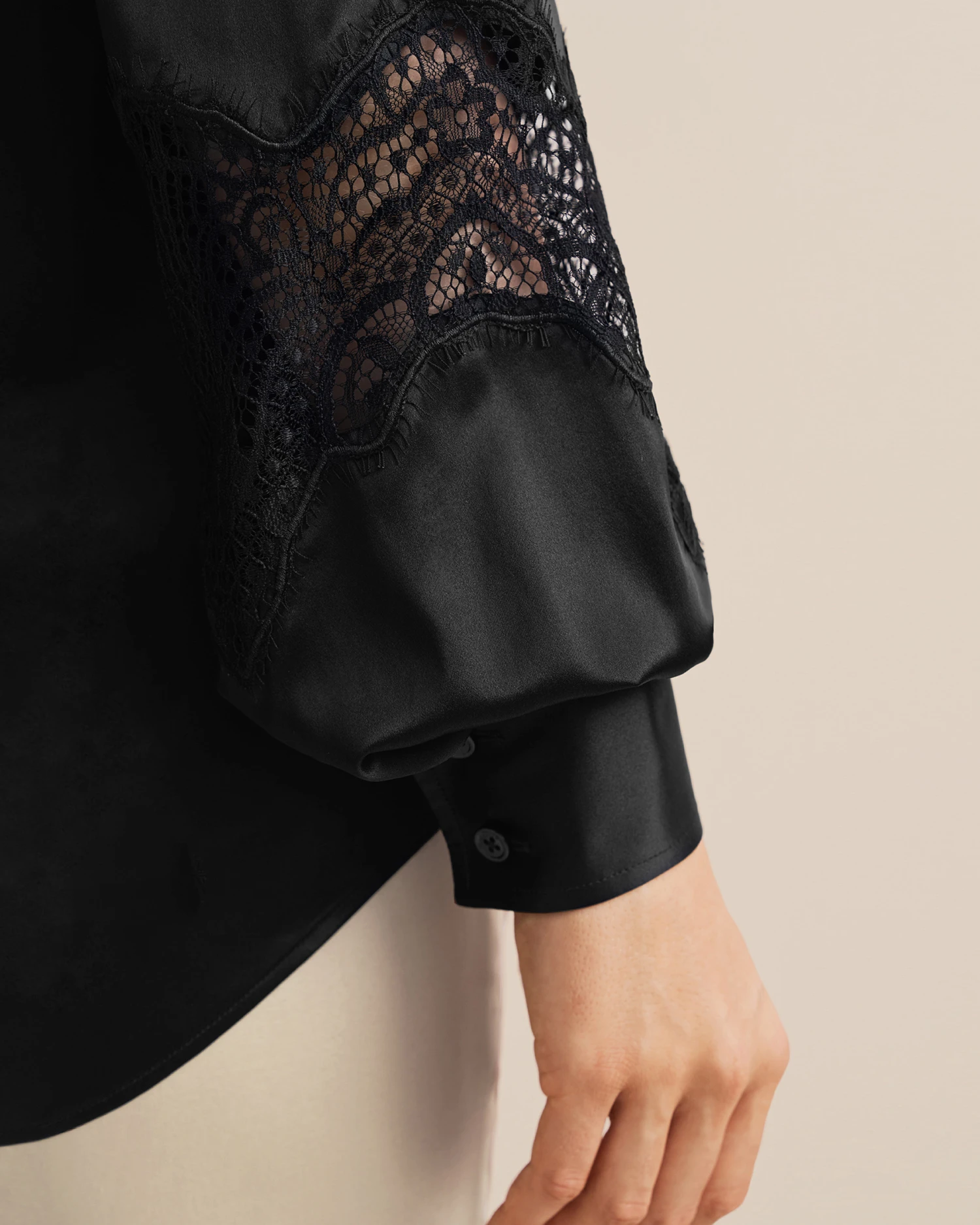 Graceful and feminine, the Armeria Lace Blouse features delicate lace detailing on the sleeves and a concealed placket for a touch of luxurious, vintage flair. Crafted in a timeless and tailored silhouette, this elegant blouse is the an artful combination of whimsical and classical style.