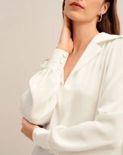 An elegant classic ideal for day or night, this luxe pullover blouse is crafted from stretch silk double-georgette for simple sophistication. Effortlessly flattering, the flowing sleeves and fitted cuff highlight the drape of silk white providing a touch of vintage style. More to love? Enjoy the fabric’s high wrinkle resistance, lightness and breathability.