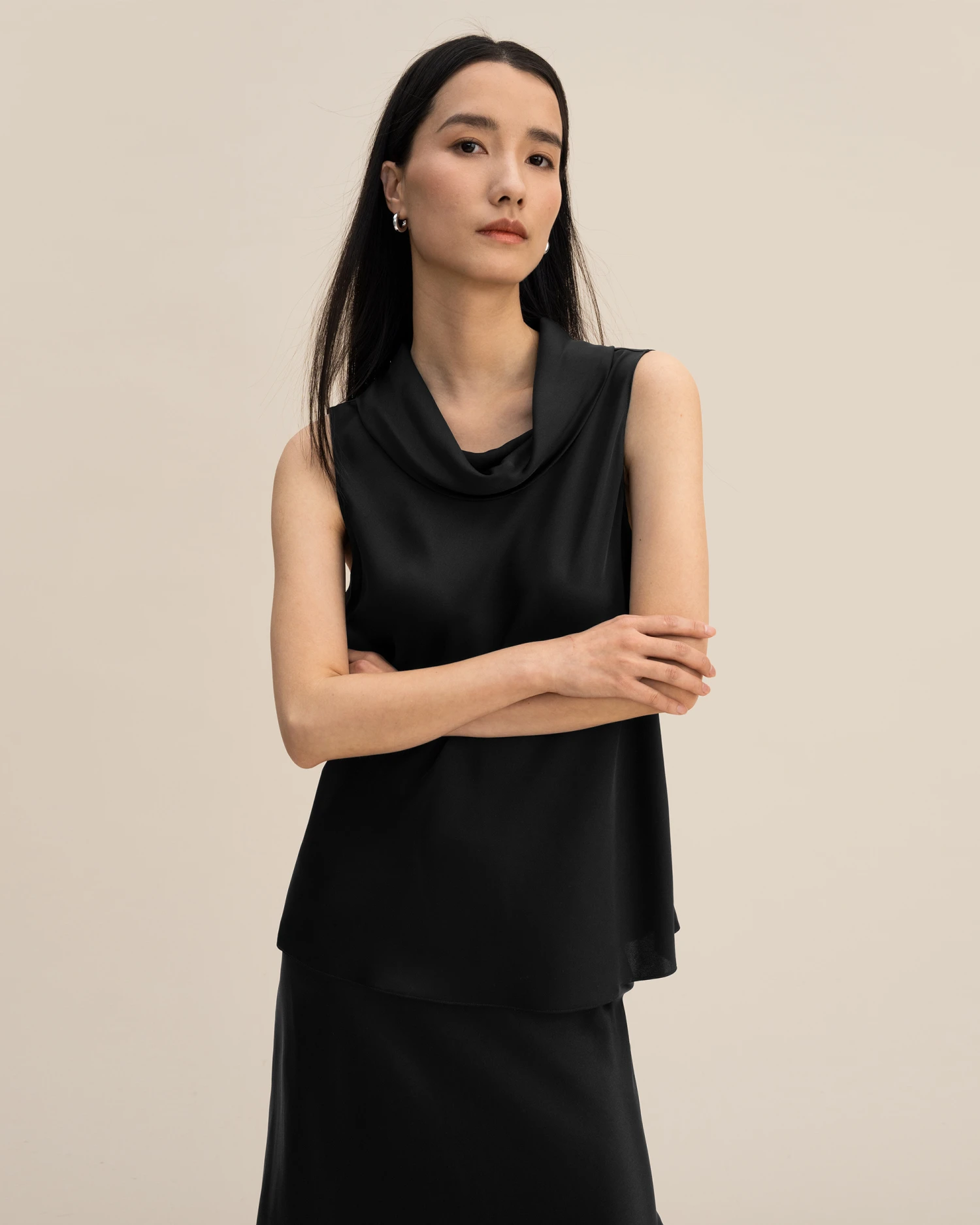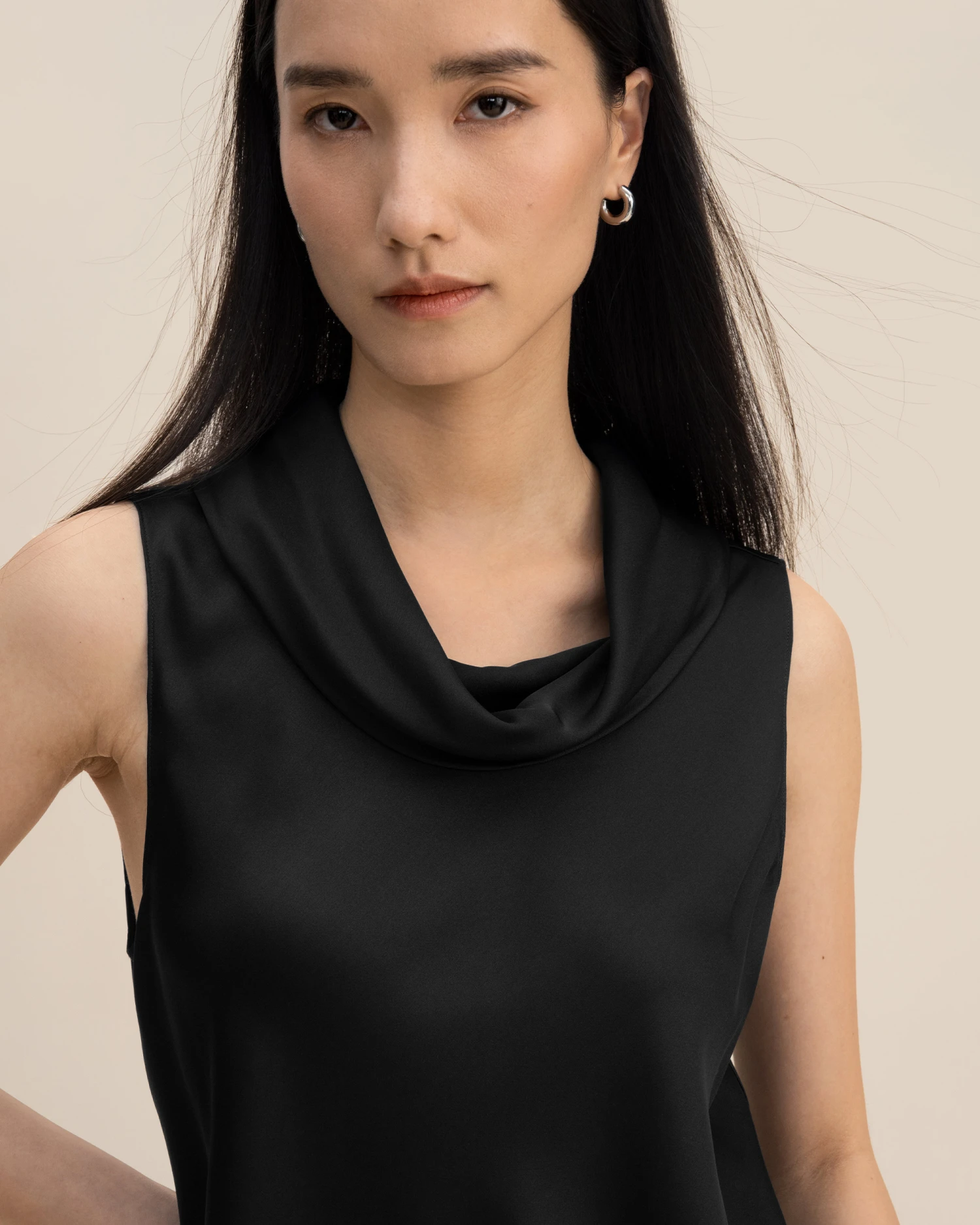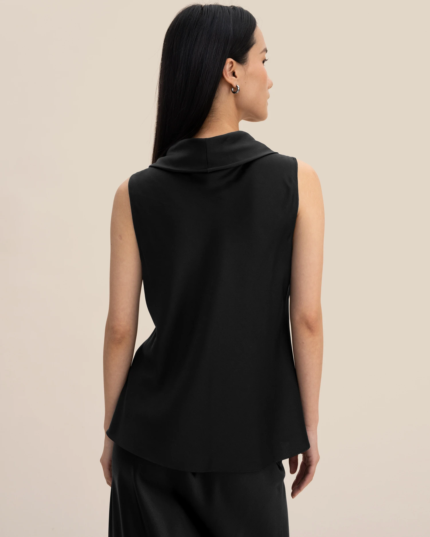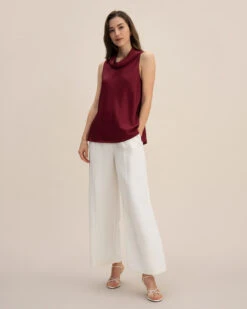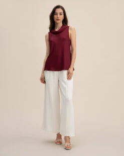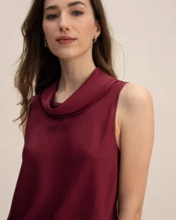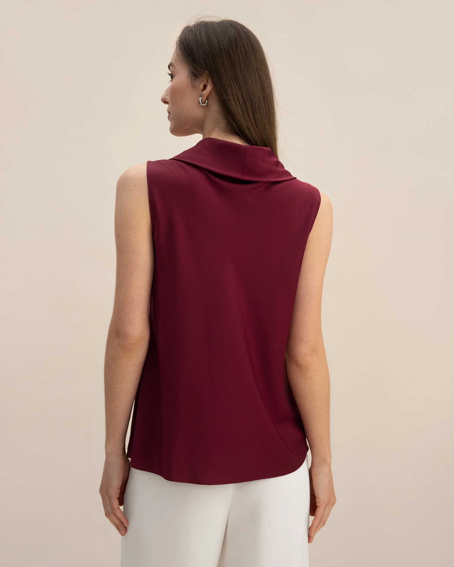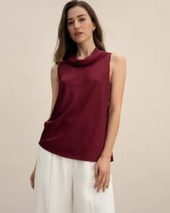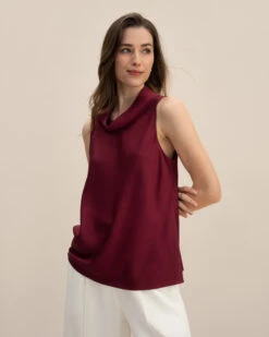 This elastic elegant cowl neck shirt offers you softness and comfort. The sleeveless design is perfect for the summertime. It is a comfortable and versatile top that can be perfectly matched with trousers or skirts. You can wear it whether you are on vacation or at work.