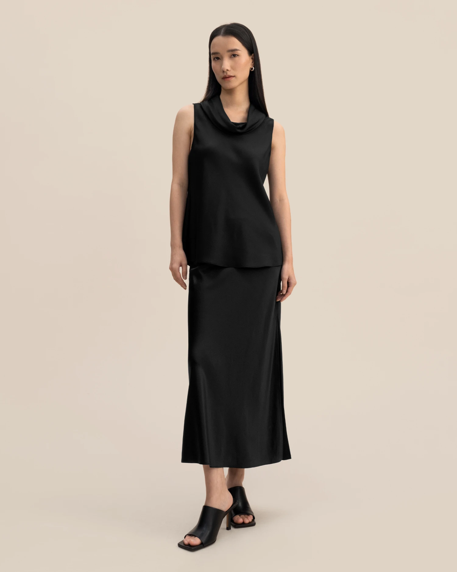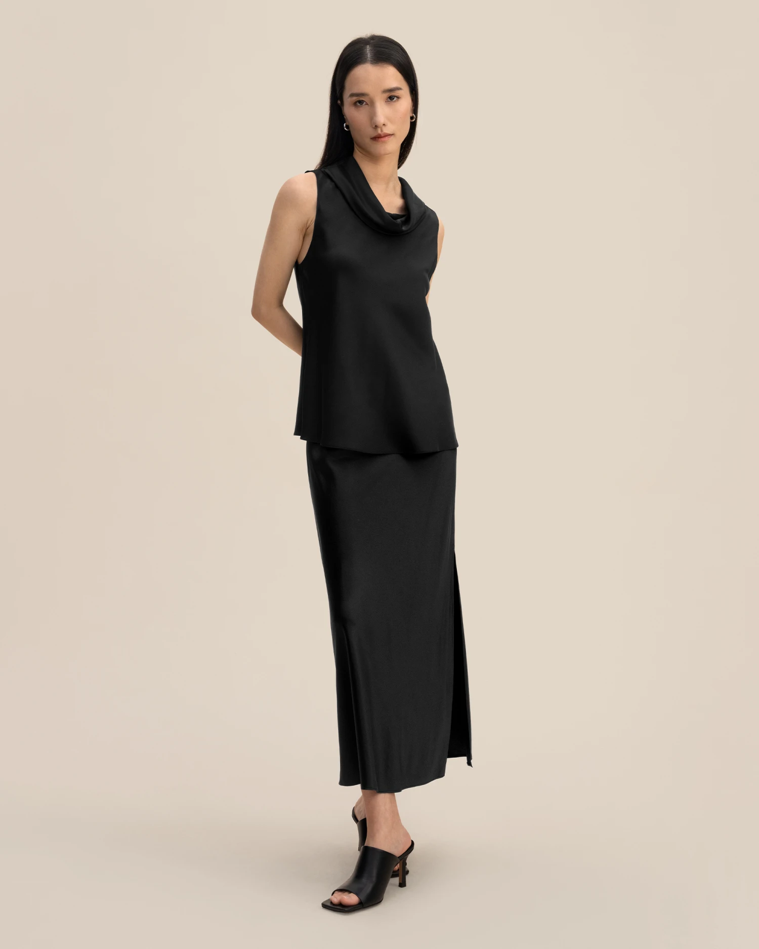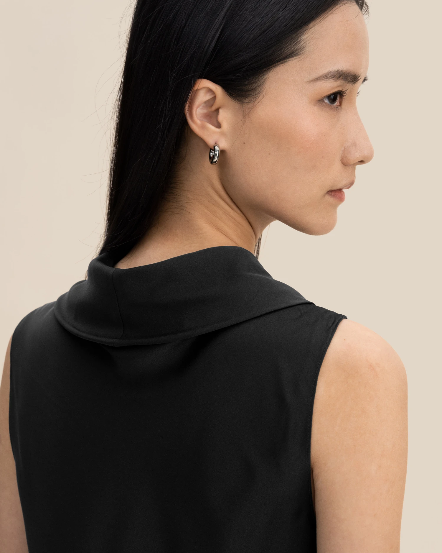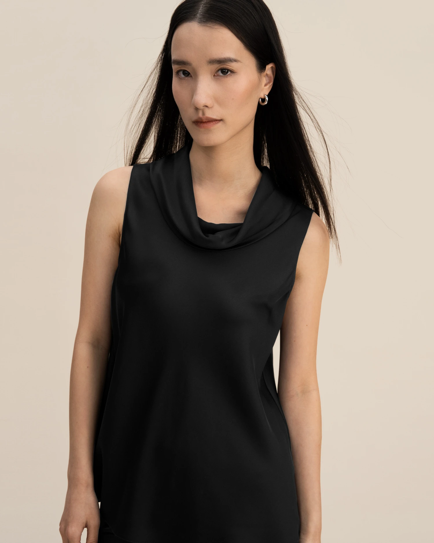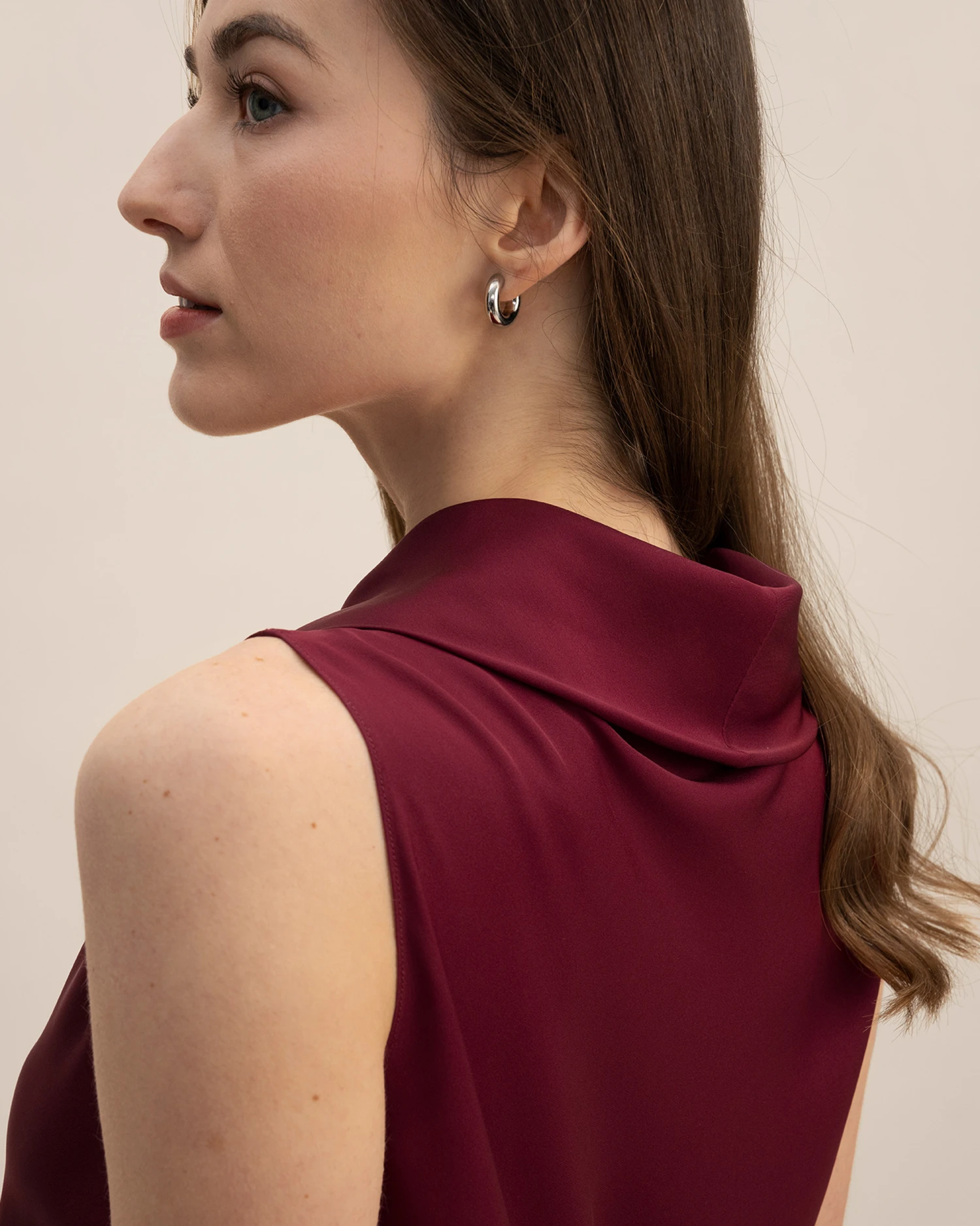 This elastic elegant cowl neck shirt offers you softness and comfort. The sleeveless design is perfect for the summertime. It is a comfortable and versatile top that can be perfectly matched with trousers or skirts. You can wear it whether you are on vacation or at work.