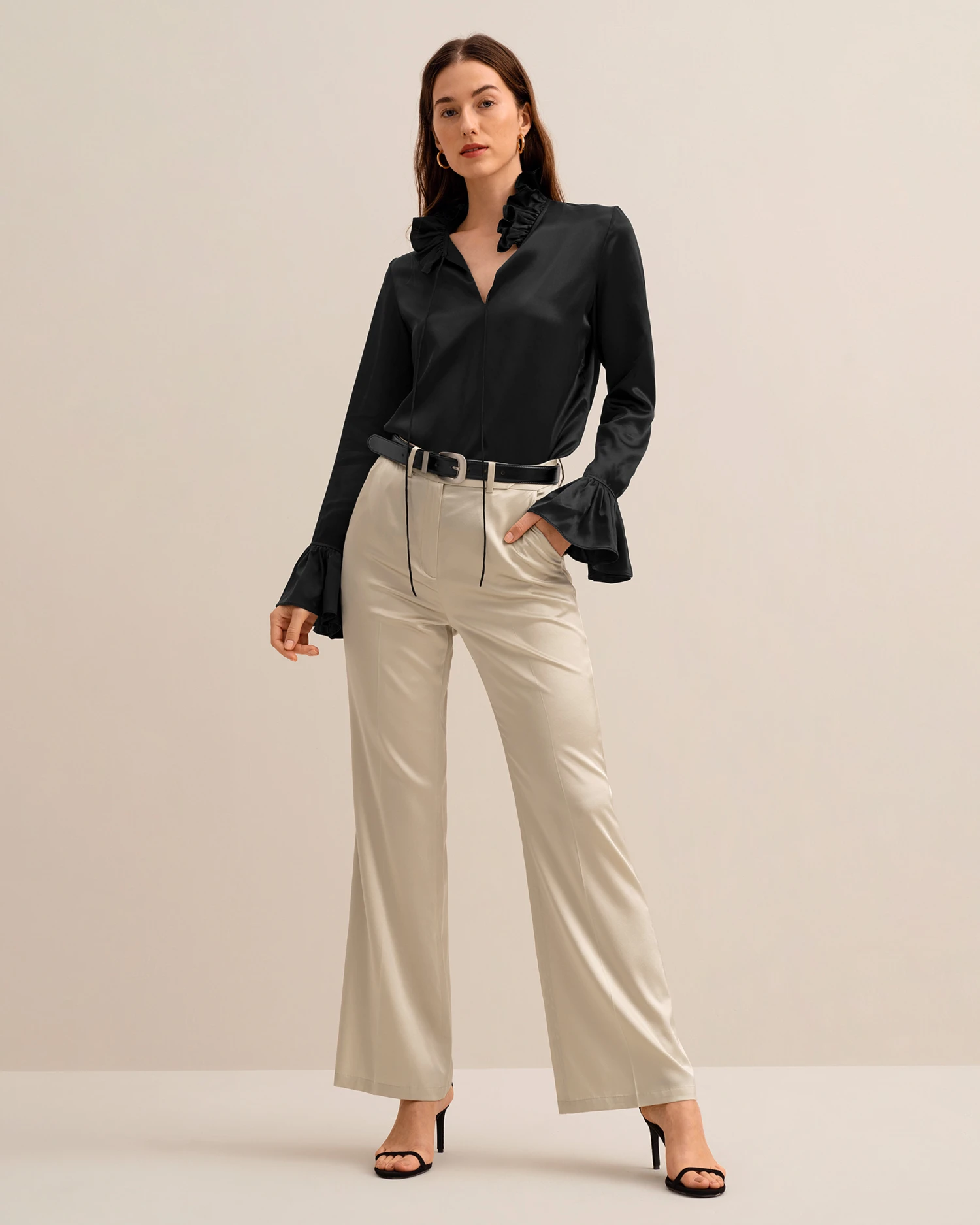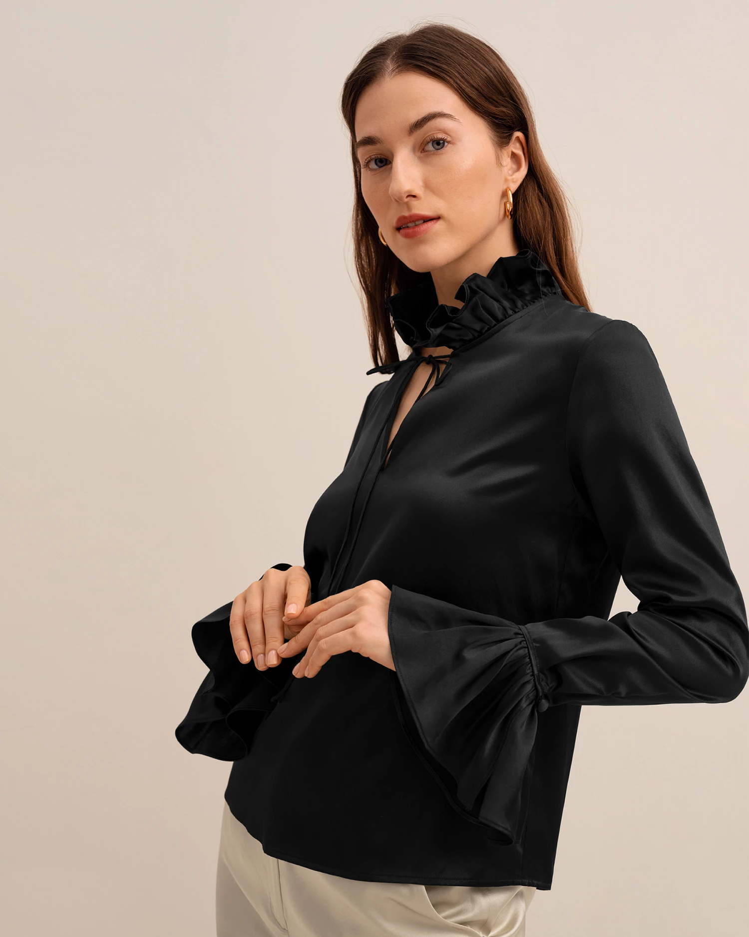 - Ruffled flare sleeves