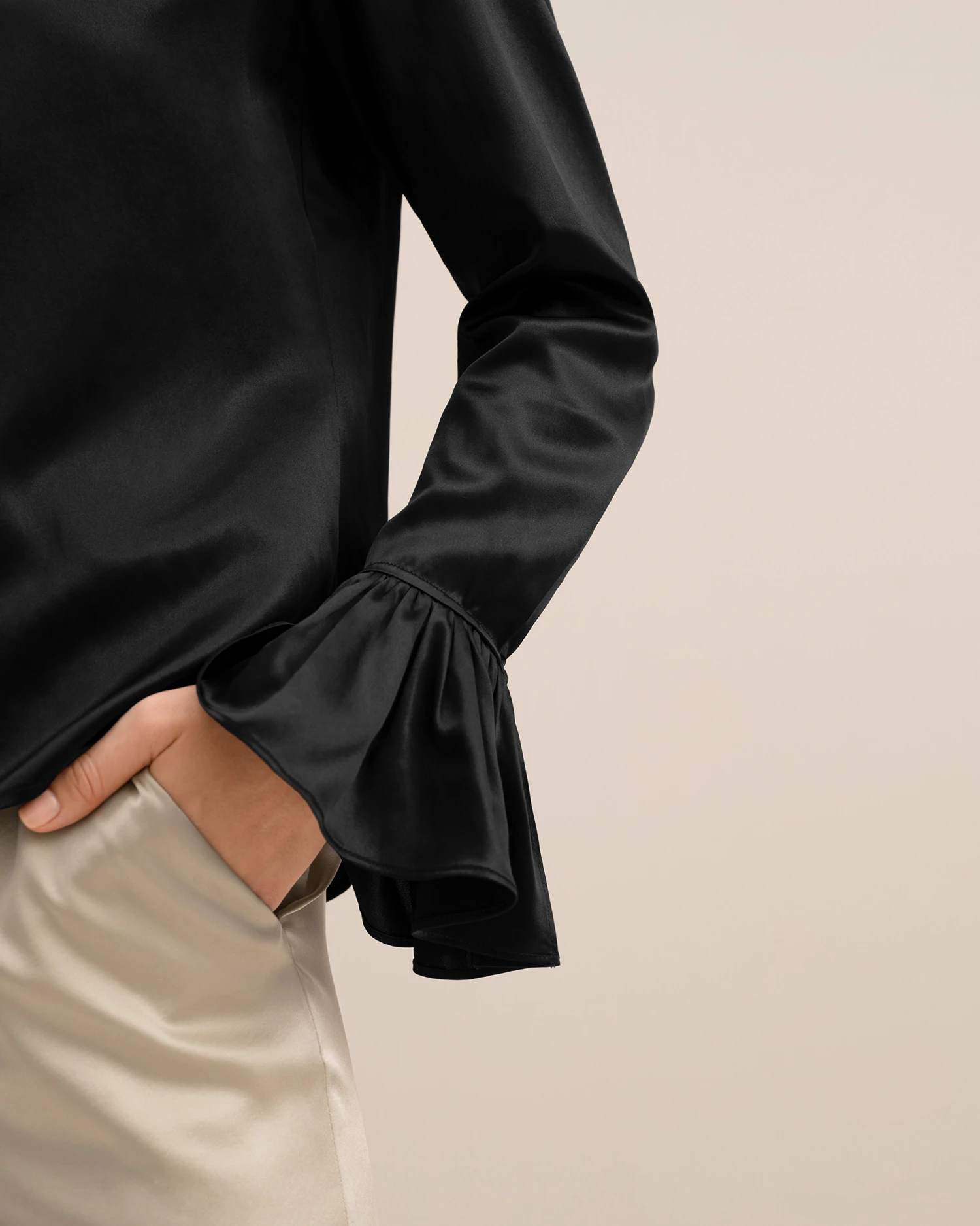 - 22 momme charmeuse silk, glossy, smooth, soft