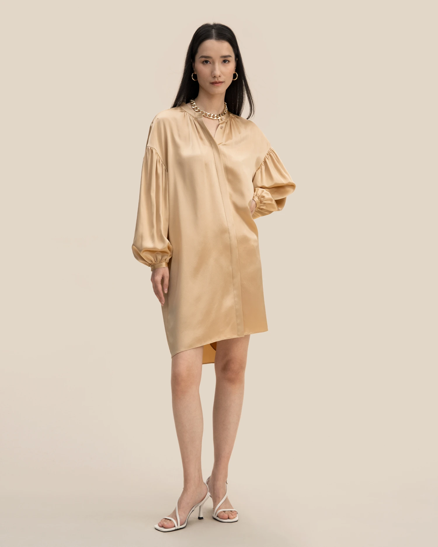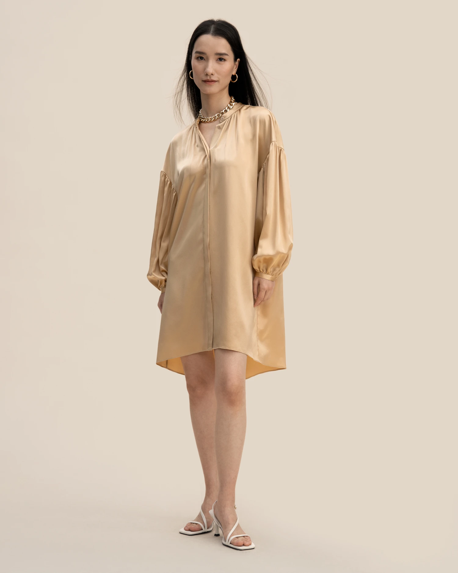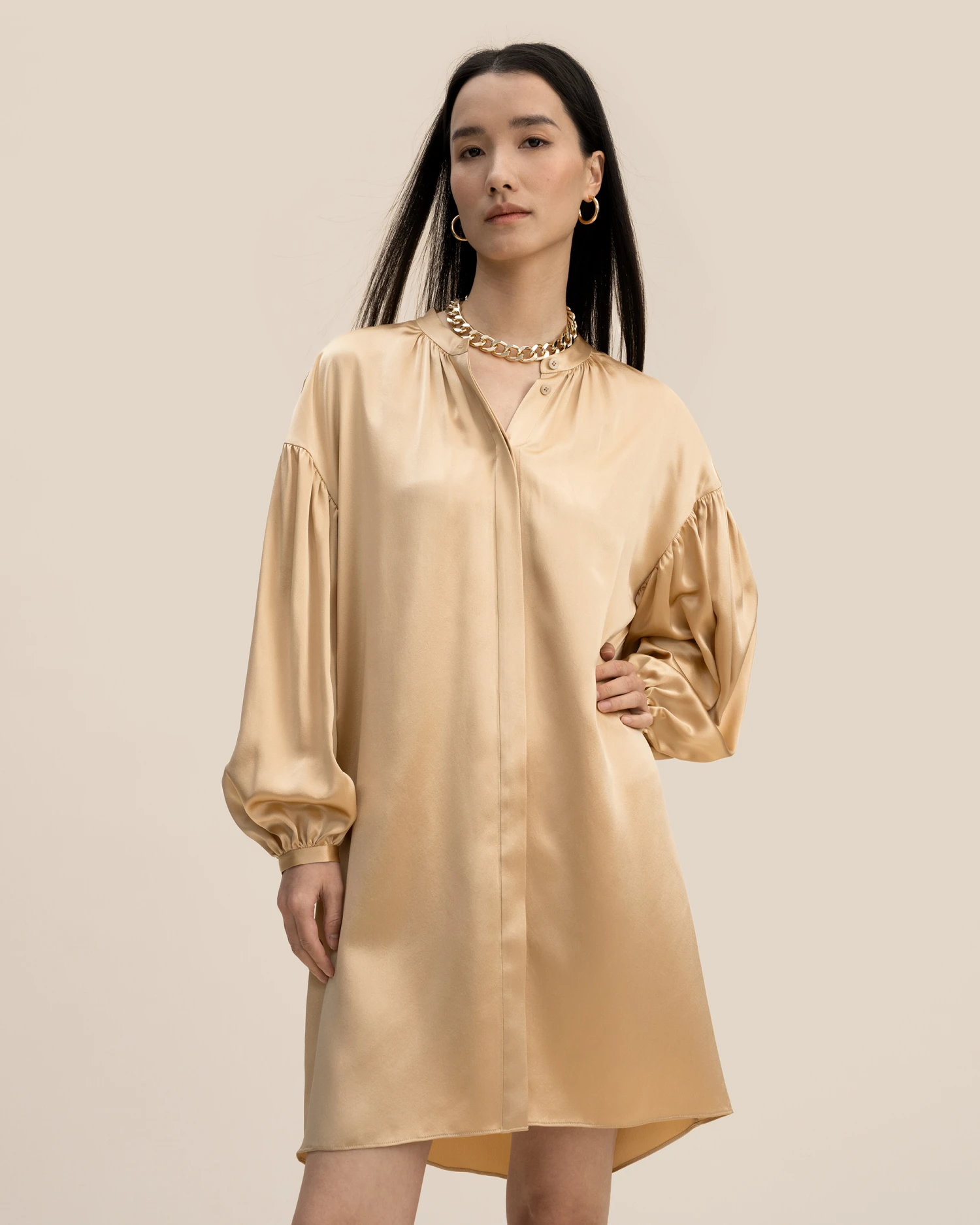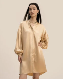 This long-sleeve loose fit night gown in almond color screams high-class and royalty with the unique vintage design of the sleeves and neck area. The unique design makes this dress a great choice to be worn outside as well, a very practical choice indeed.