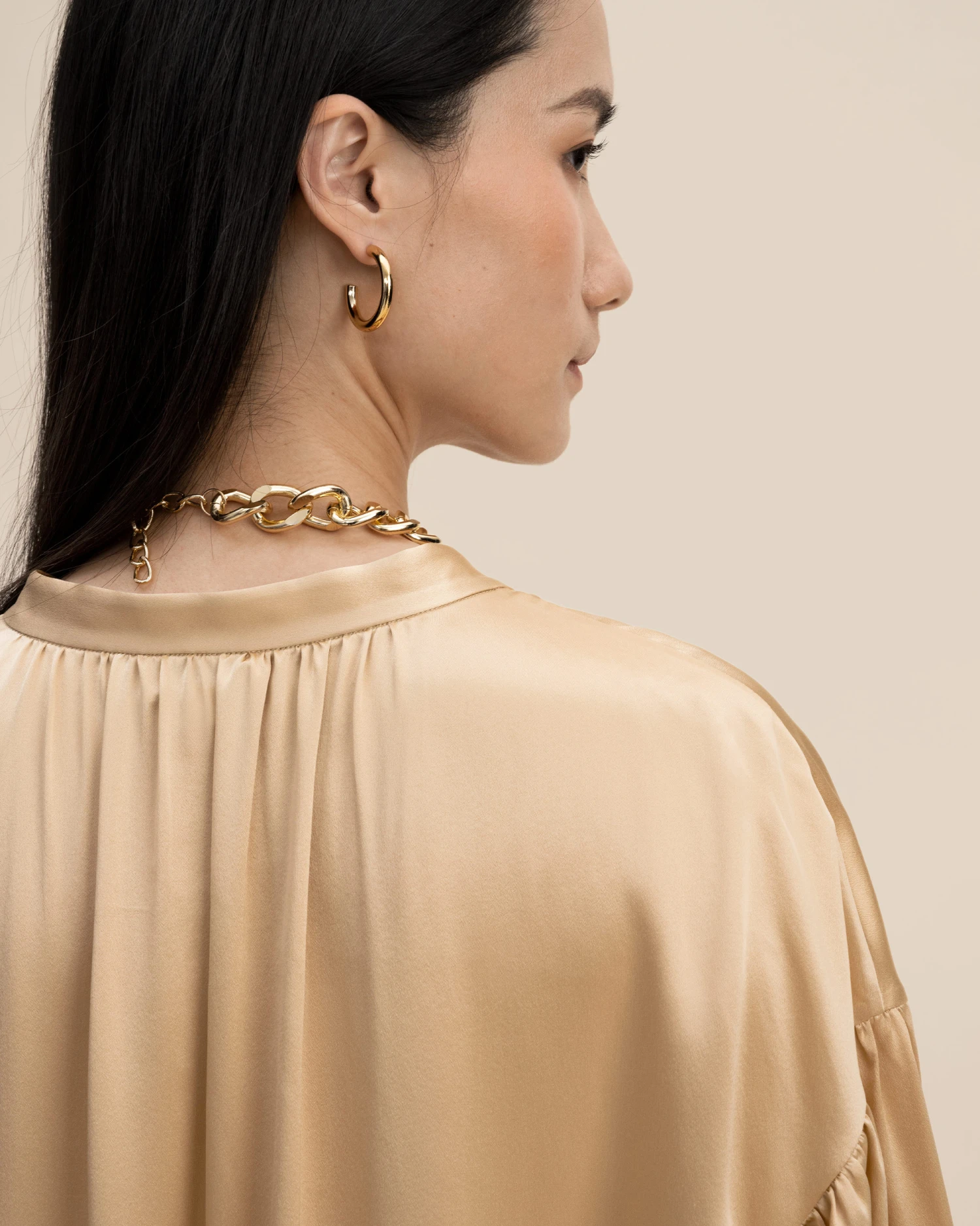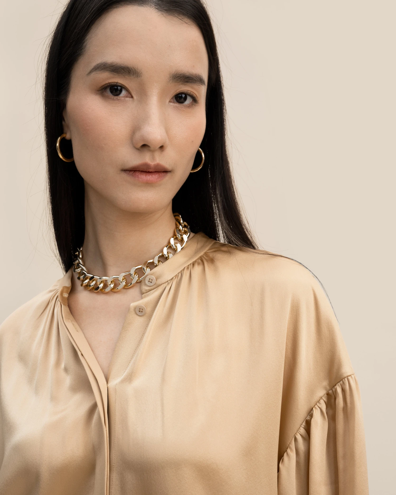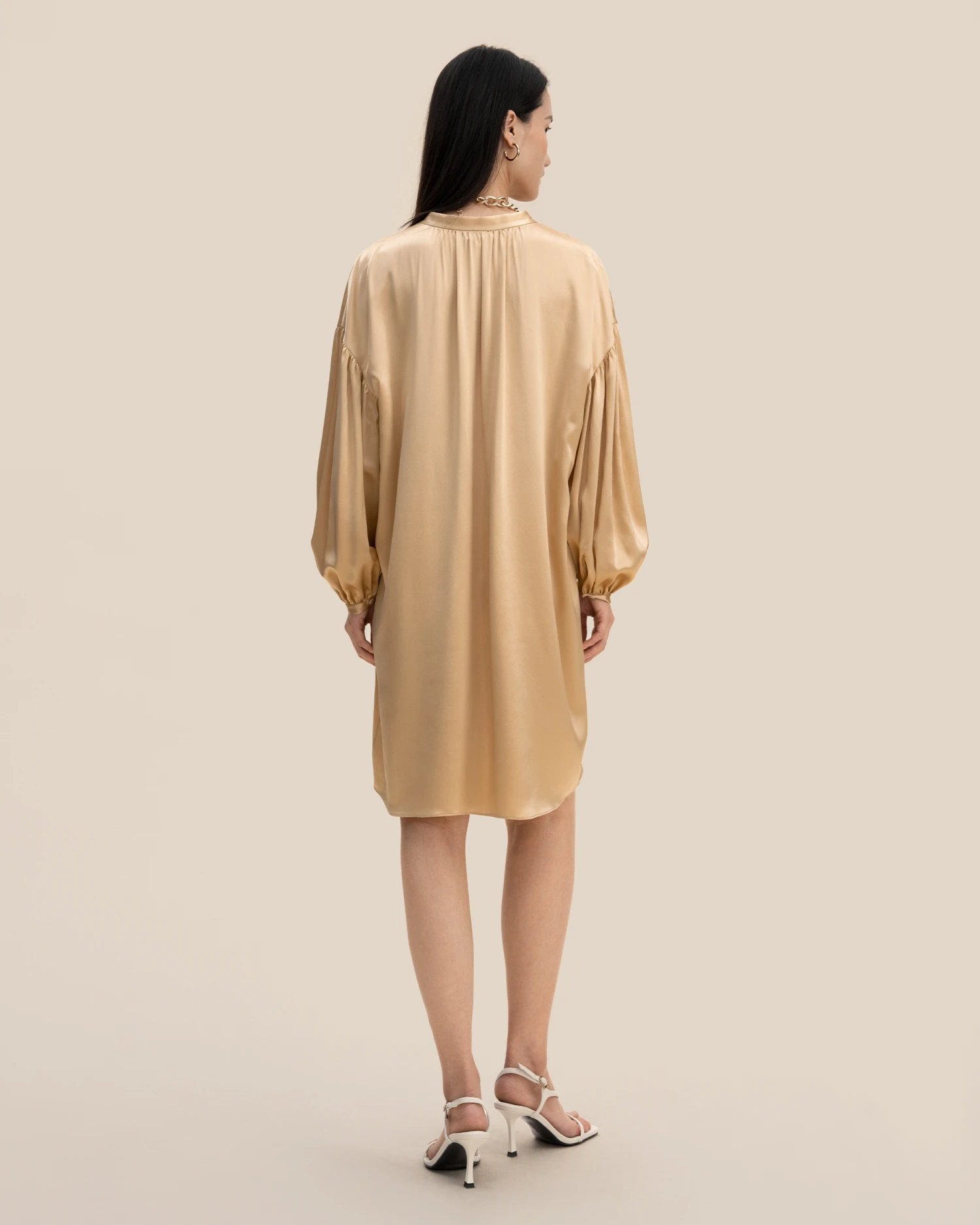 This long-sleeve loose fit night gown in almond color screams high-class and royalty with the unique vintage design of the sleeves and neck area. The unique design makes this dress a great choice to be worn outside as well, a very practical choice indeed.