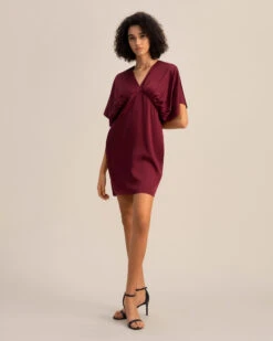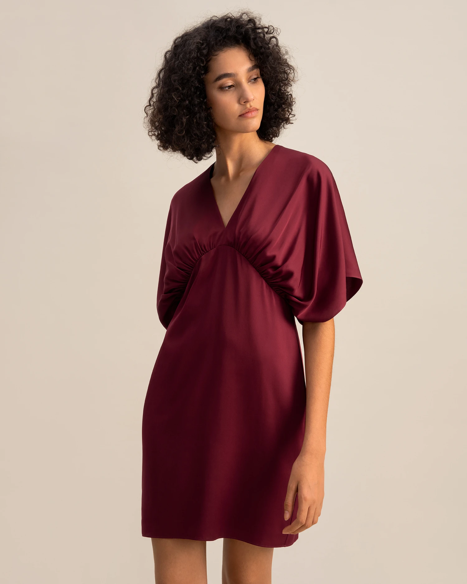 Party outfit made easy with this Montana dress.Made with 100% silk and featuring deep V neckline and fitted sheath silhouette, this piece is perfectly understated and elegant. Pair it with your favorite heels and you’re ready to walk out the door.